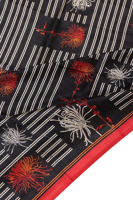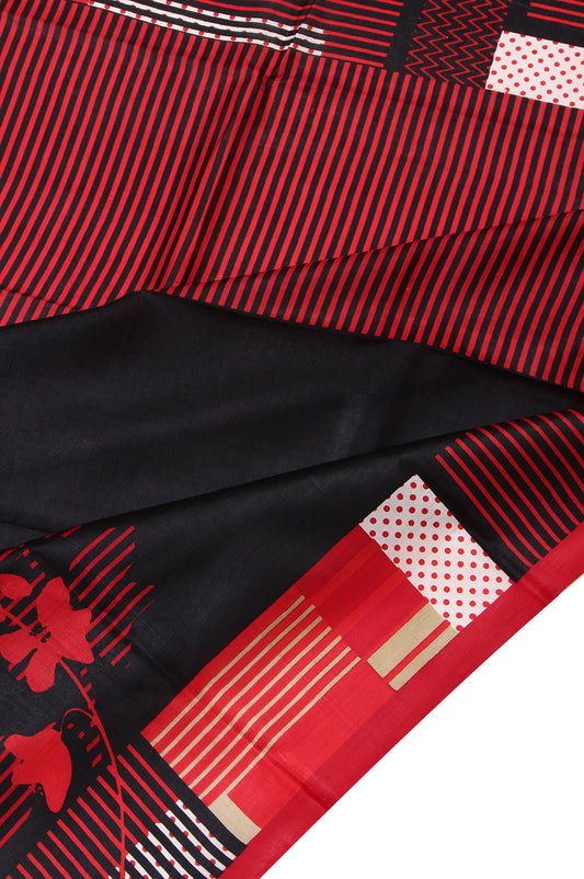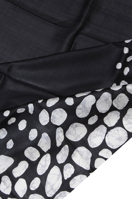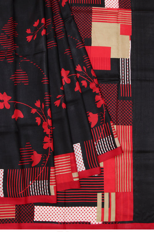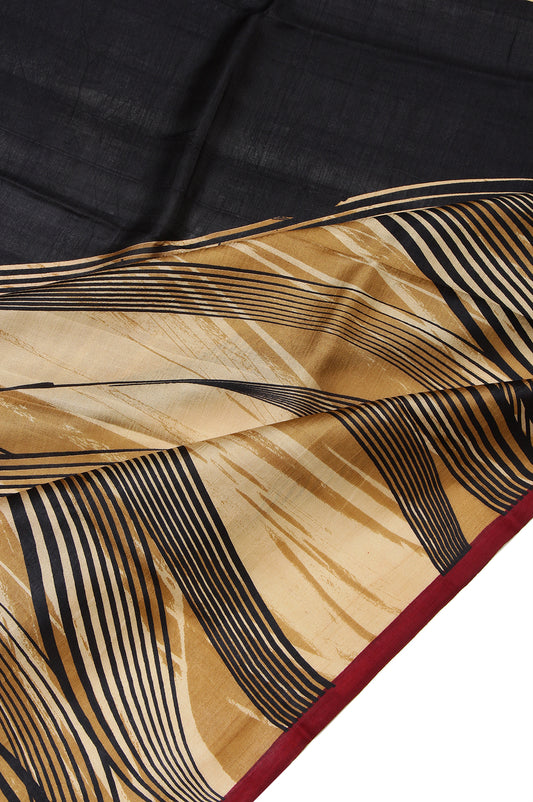 Bold and contemporary, this Black Tussar Silk Saree features striking abstract prints in vibrant hues...