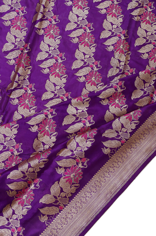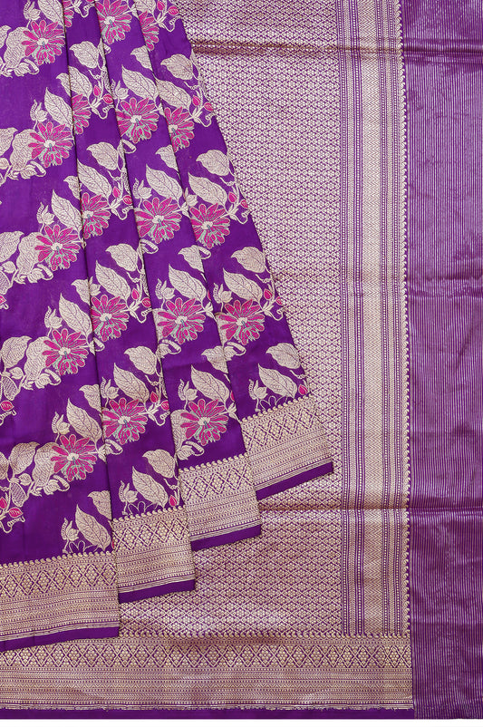 Color - PurpleFabric - Banaras KatanDimensions - 5.5 metersDisclaimer - The actual color of the...