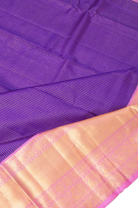 Description - Experience the deep allure of this Indigo Blue Chequered Kanchipuram Silk Saree with...