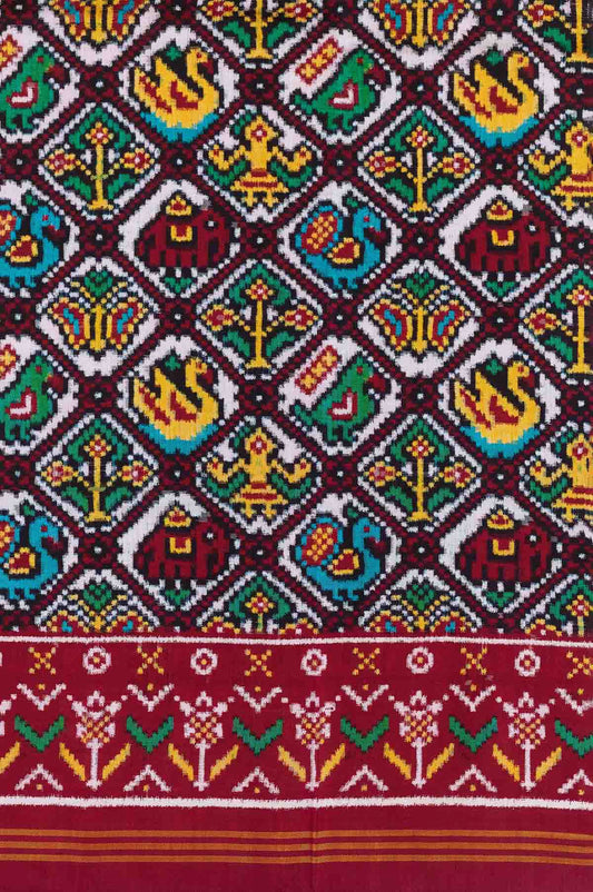 Give your wardrobe a sophisticated boost with this intricately patterned Patan Patola sari. In shades...