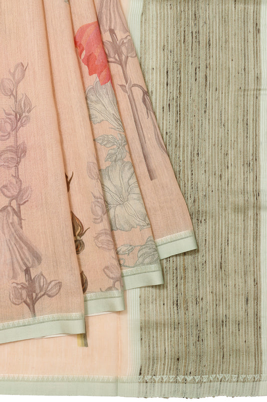 Description- In the realm of Green Mashru Silk Saree with Elephant and Floral Motifs, the...