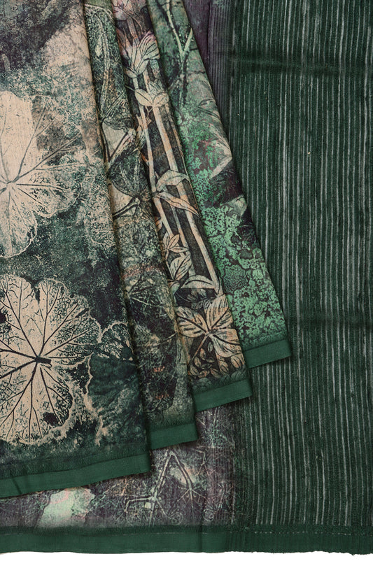 Description: Tussar Green Silk Saree glows with vintage beauty, its beige waves design border reflecting...