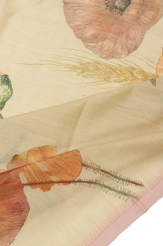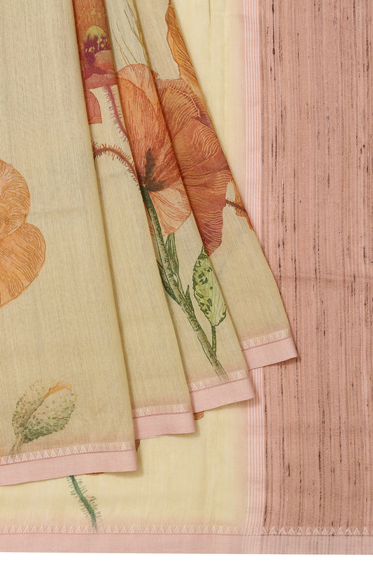 This off-white Bomkai silk saree is from the house of Mavuri. The fabric in this...
