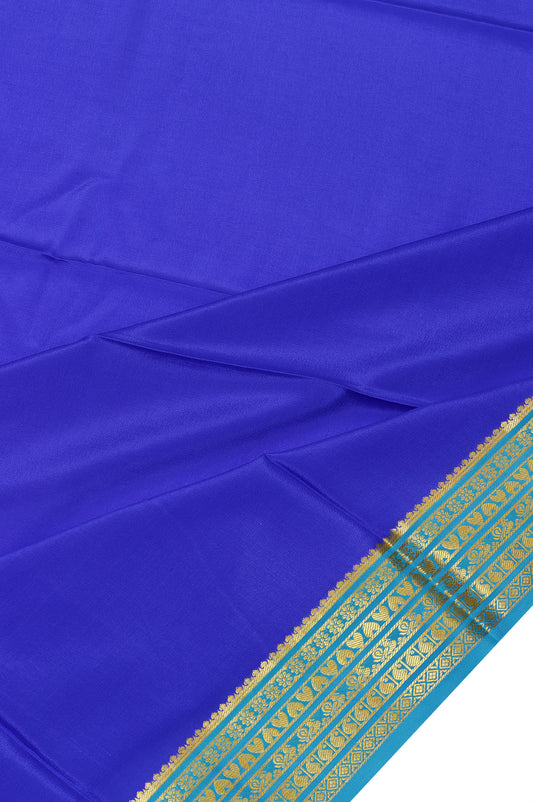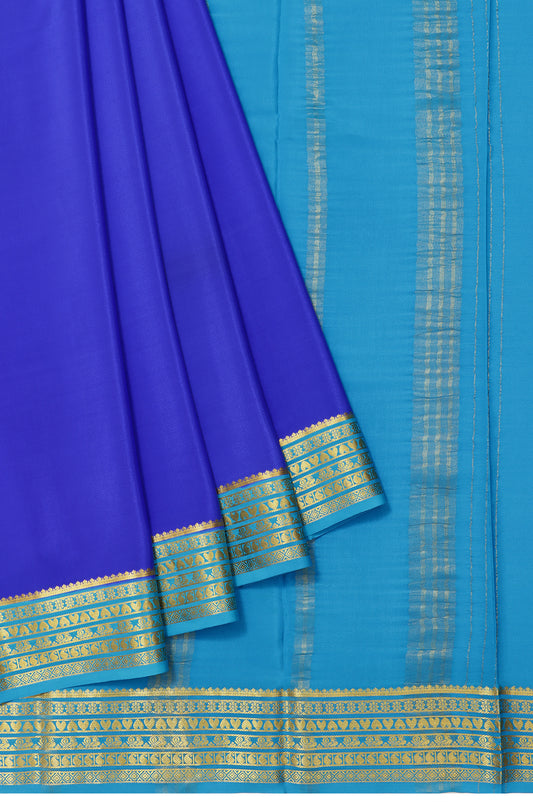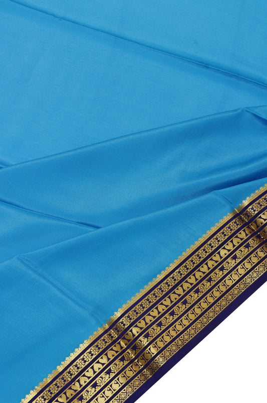 Description- A stunning Blue Pure Silk Saree with a dark blue plain border, complemented by...
