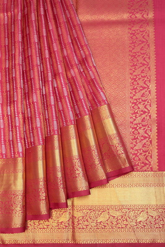 Make a statement with this Dark Pink Kanchipuram Tissue Silk Saree, crafted from pure tissue...