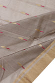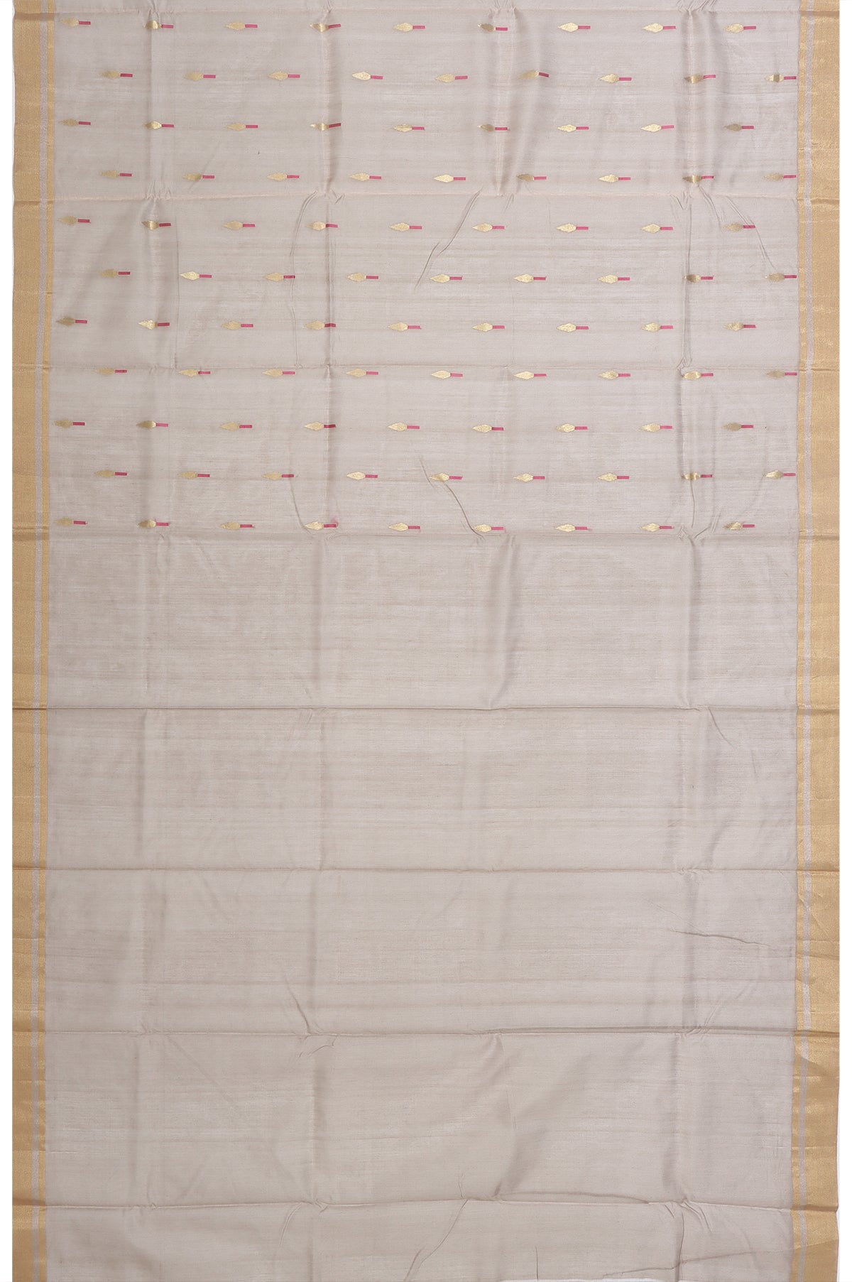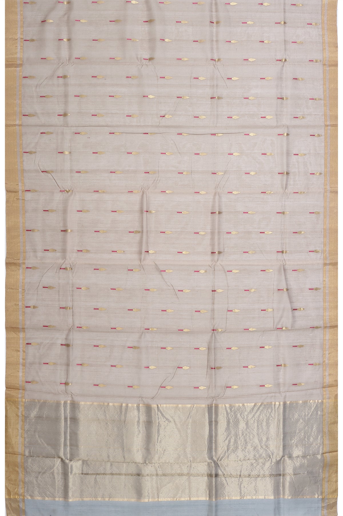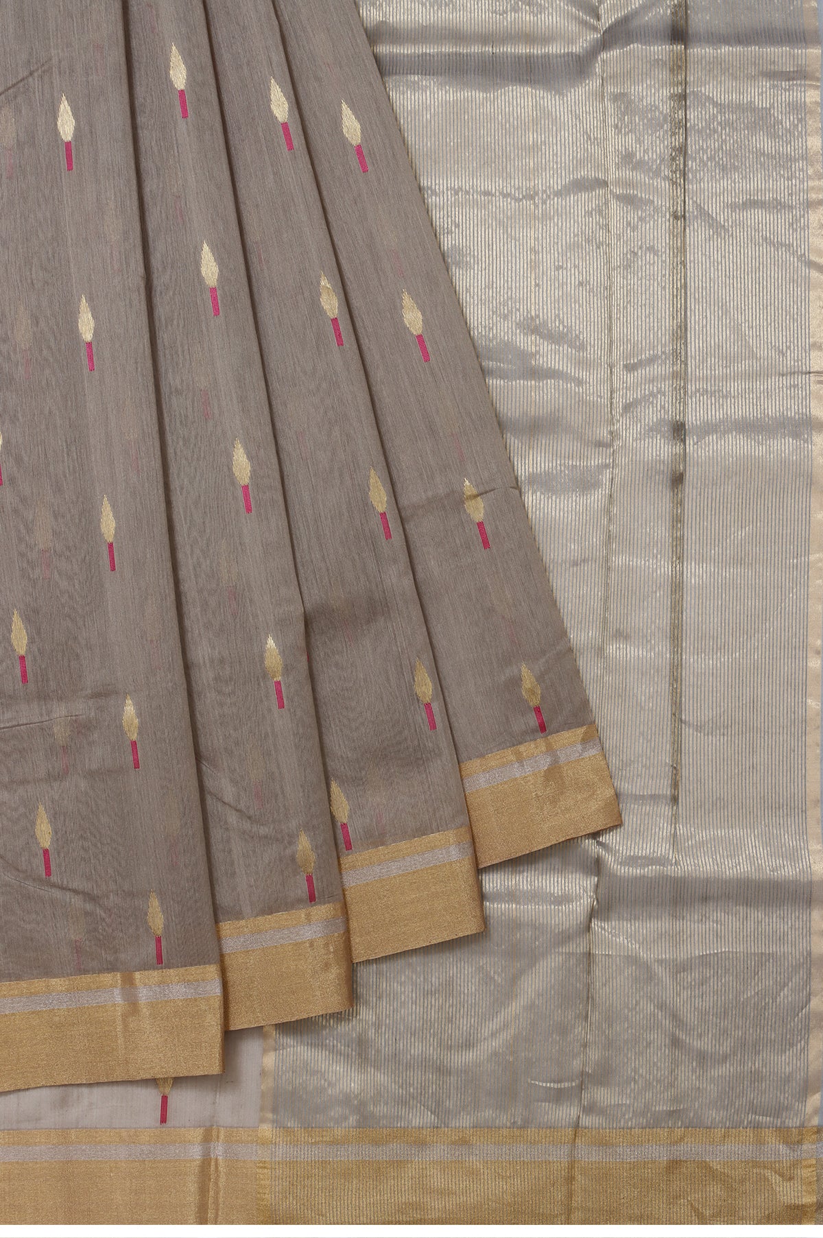 Ash Chanderi Silk Cotton Saree with Leaf Design and Silver Zari