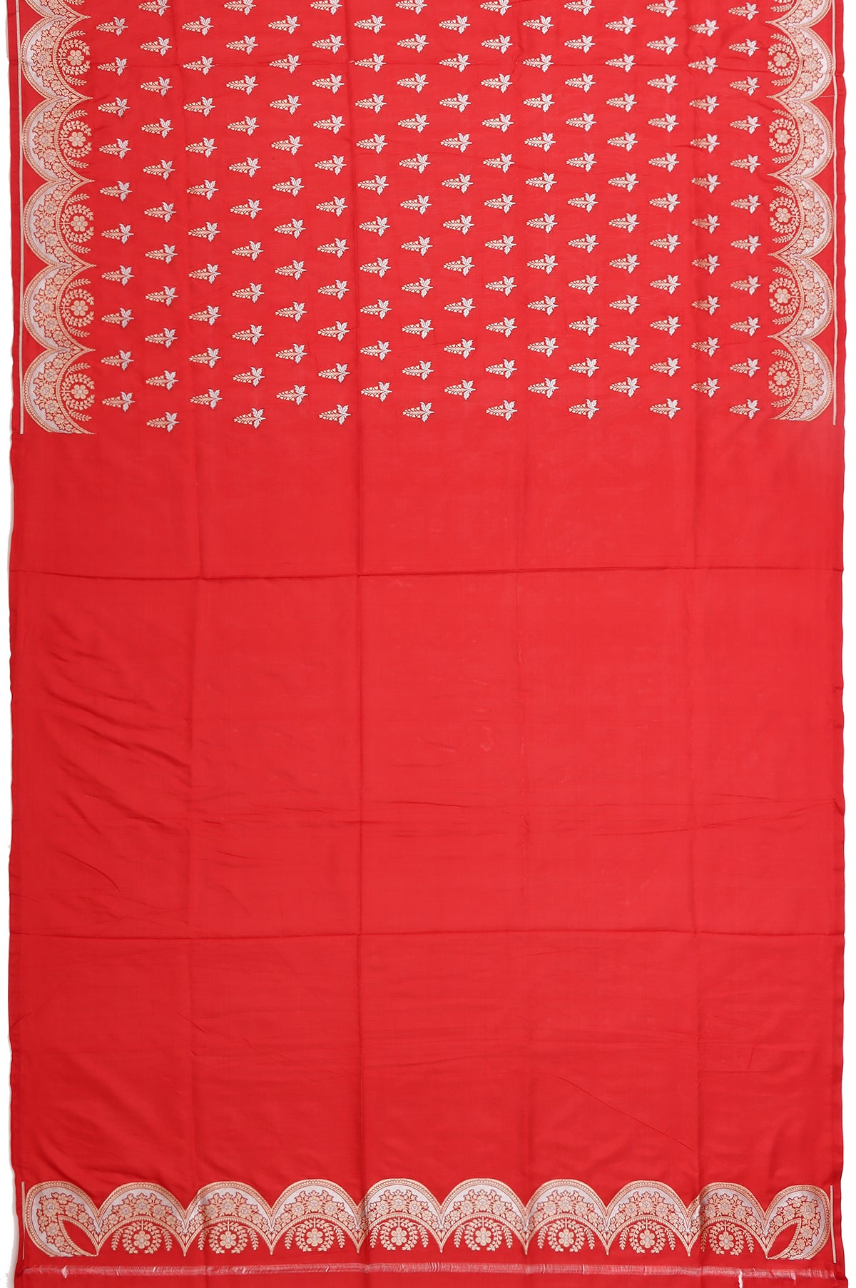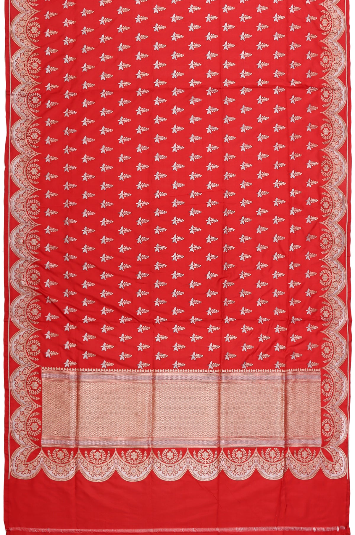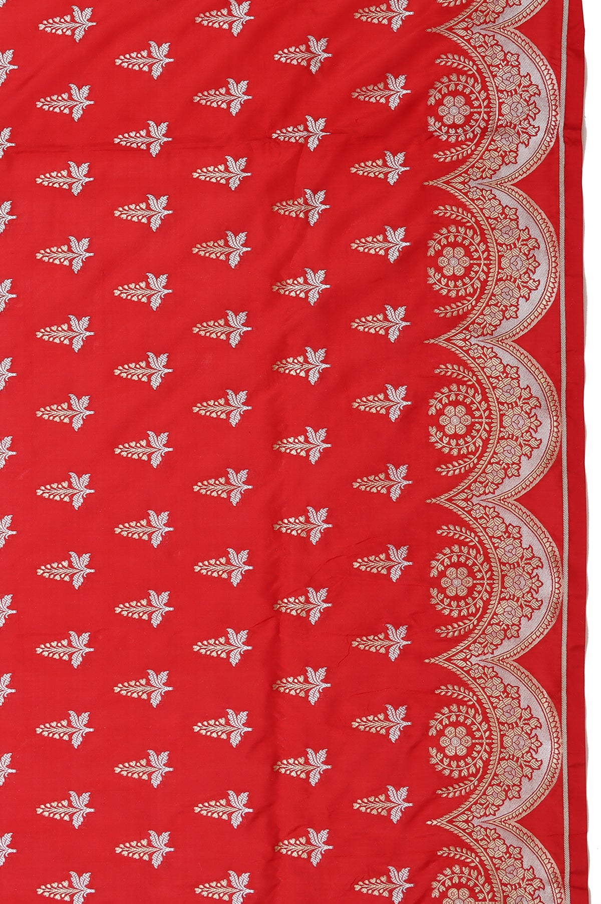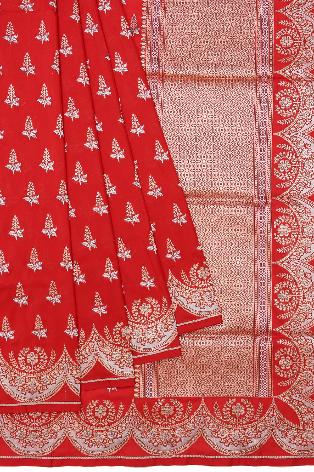 Red Banaras Katan Saree with Scallop Border and Tree Motifs