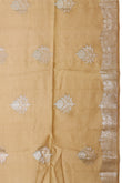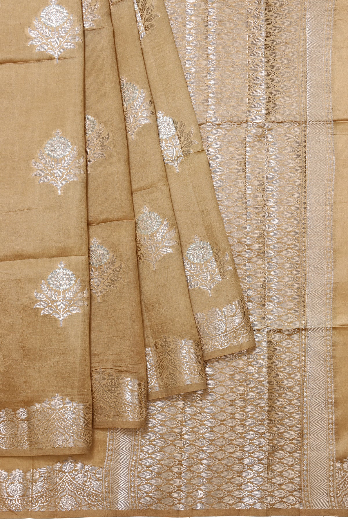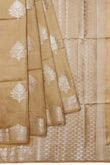 Beige Chiniya Silk Saree with Gold Zari, Silver Zari, and Tree Motifs