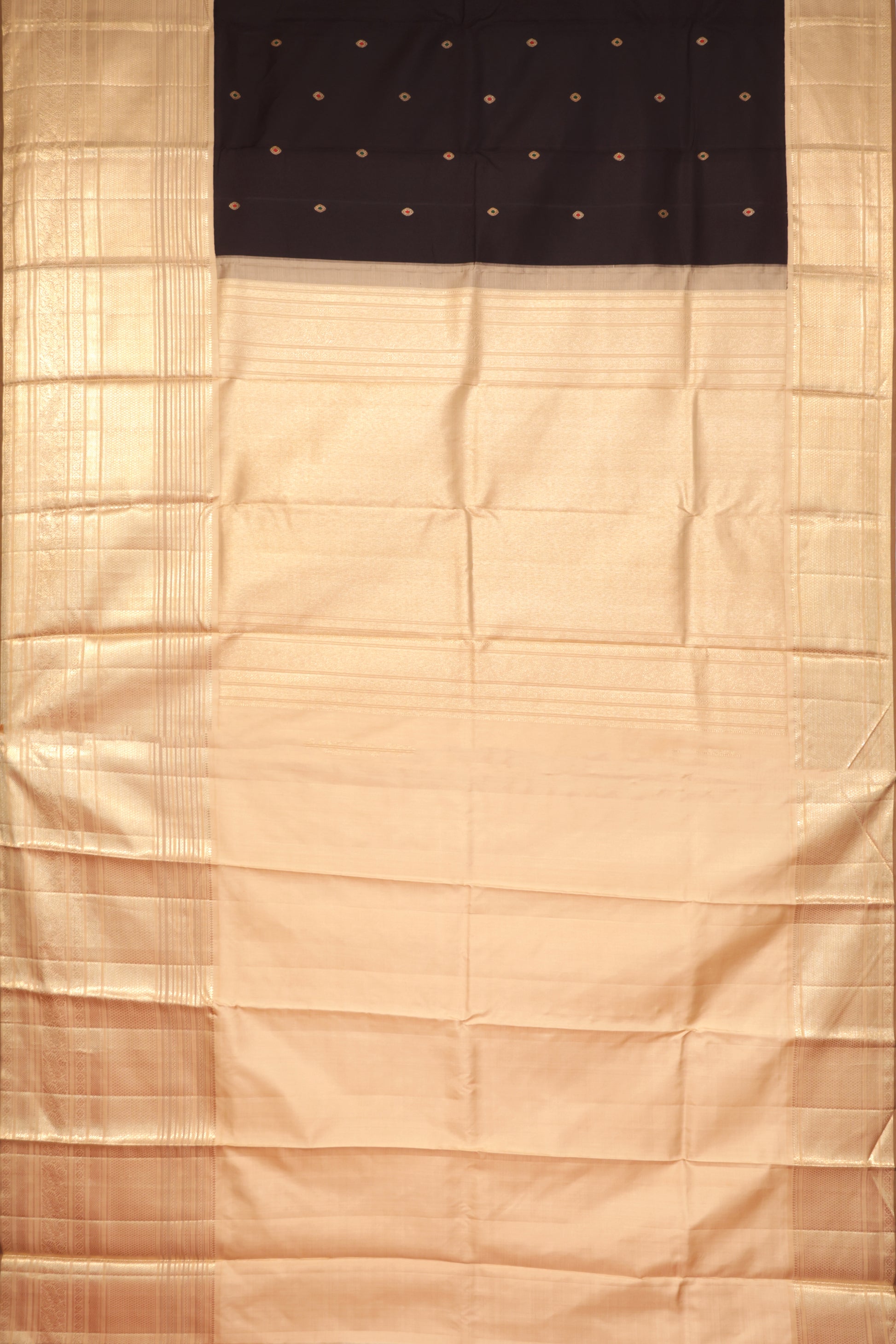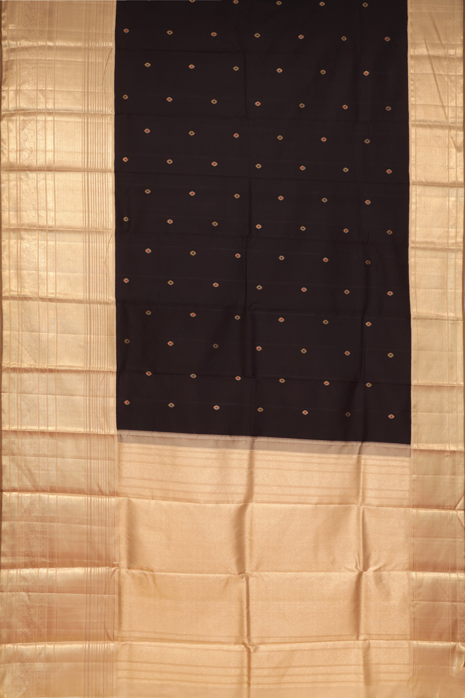 Black Kanchipuram Silk Saree with Sandal Border and Dot Butta