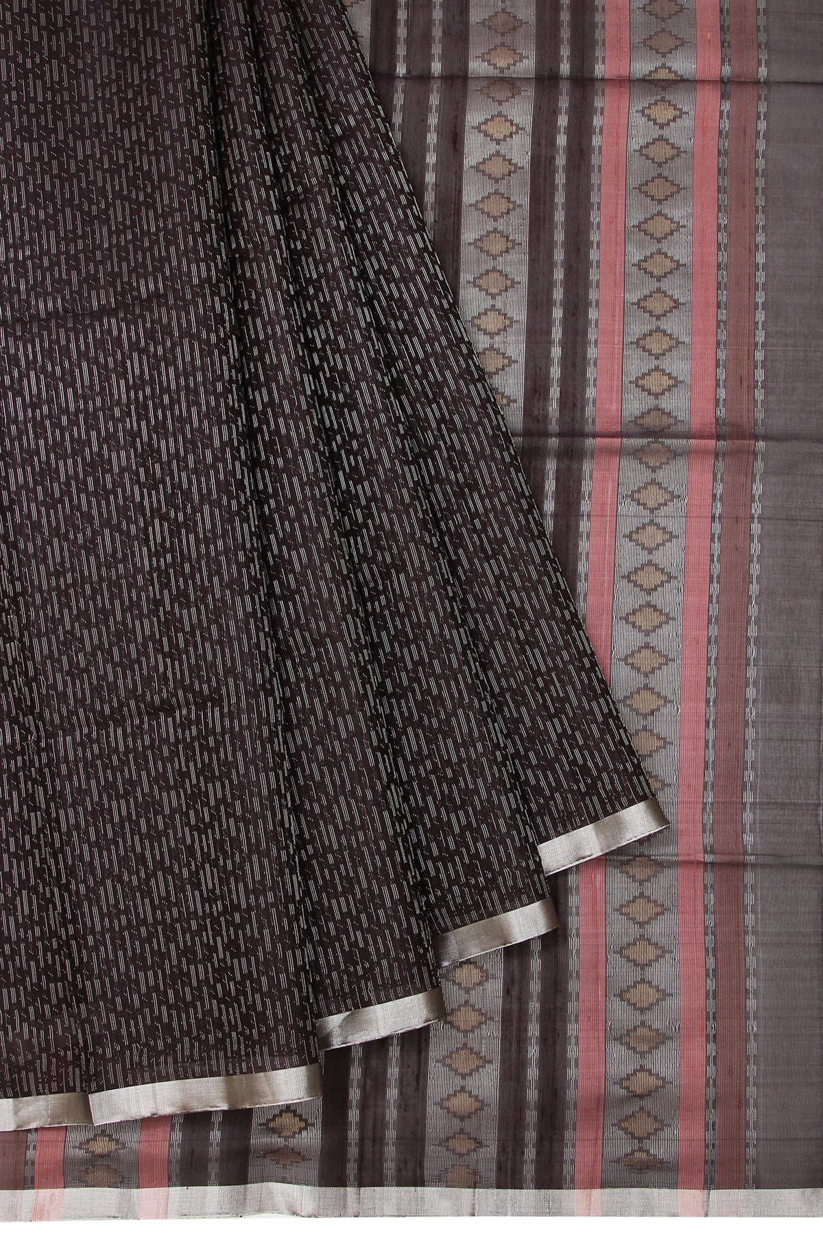 Black Kanchi Kora Silk Saree with Silver & Gold Stripes