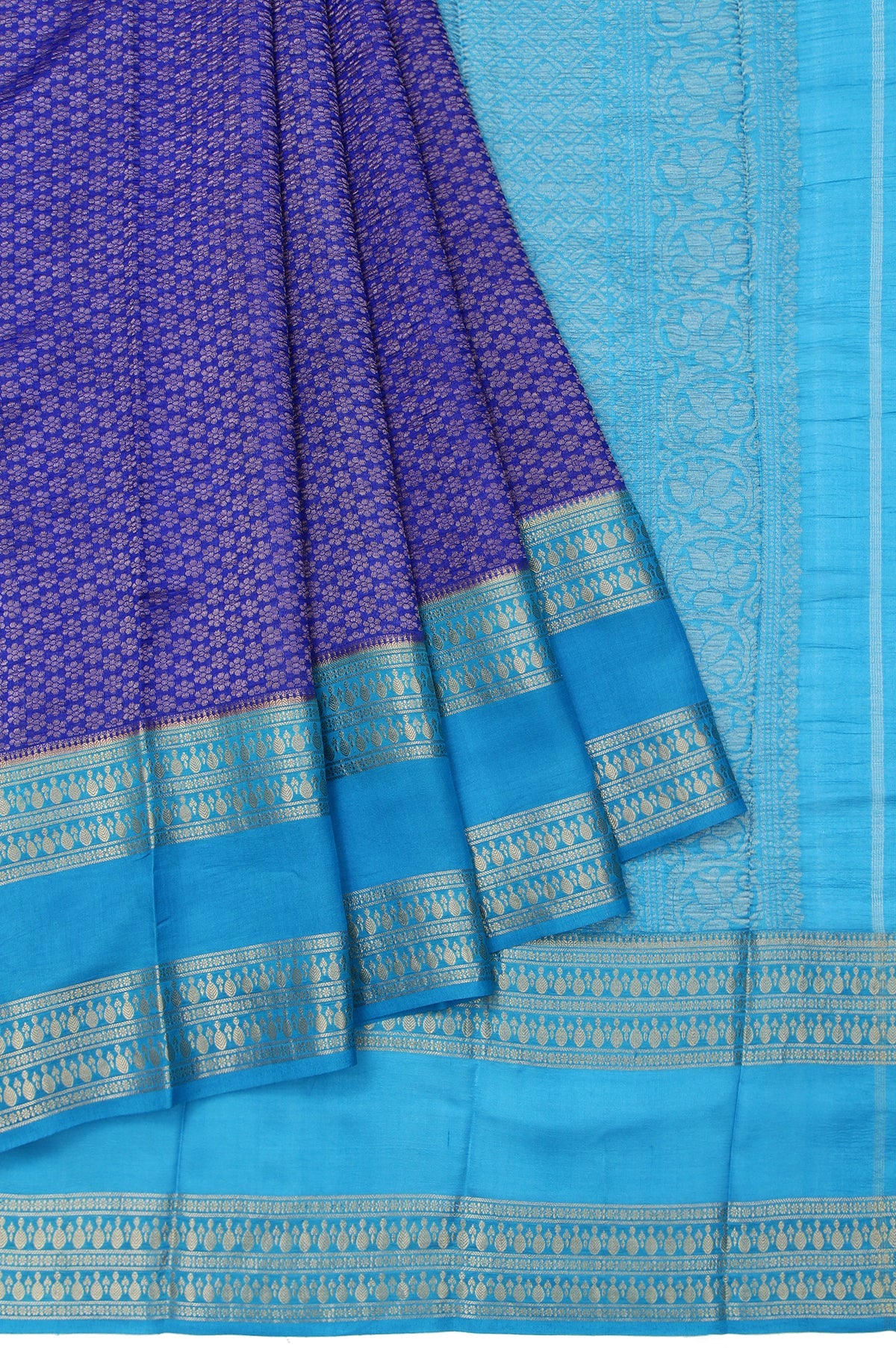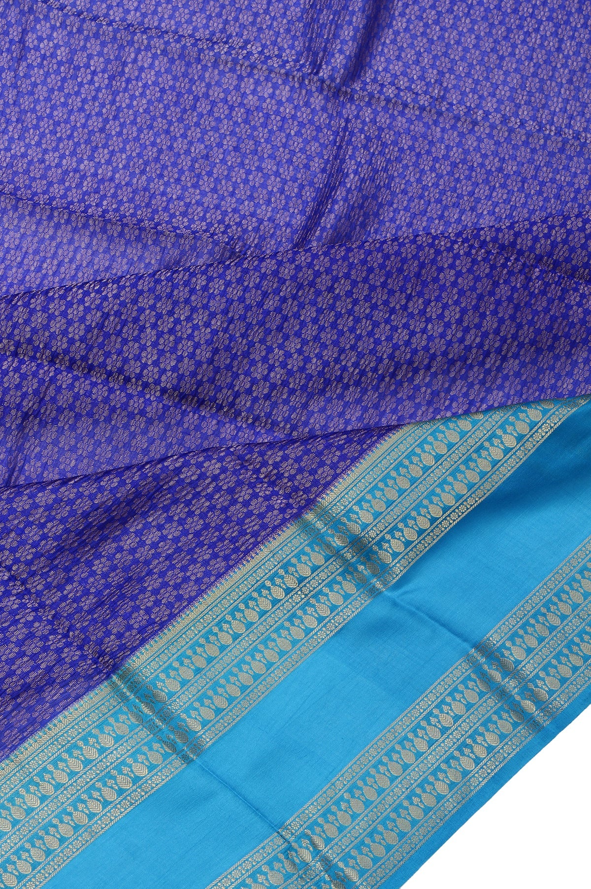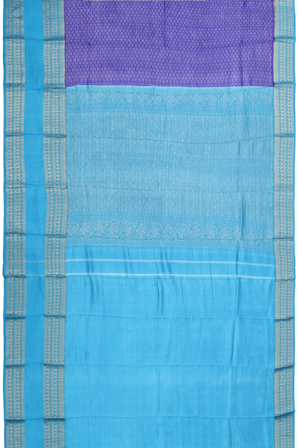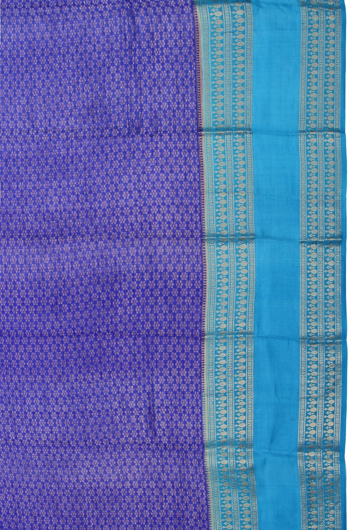 Blue Kanchi Kora Silk Saree with Plain Bordered Blouse