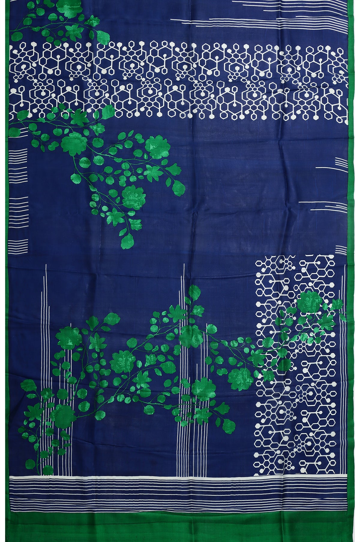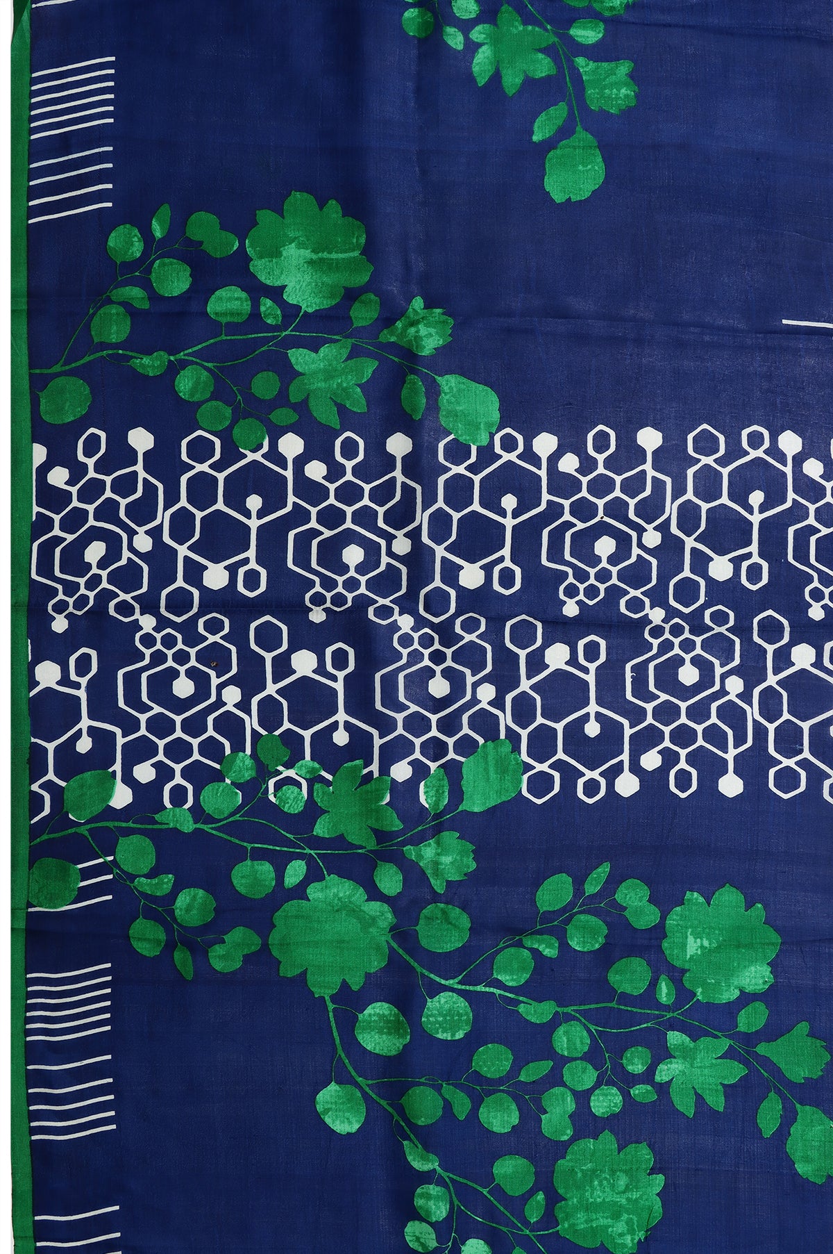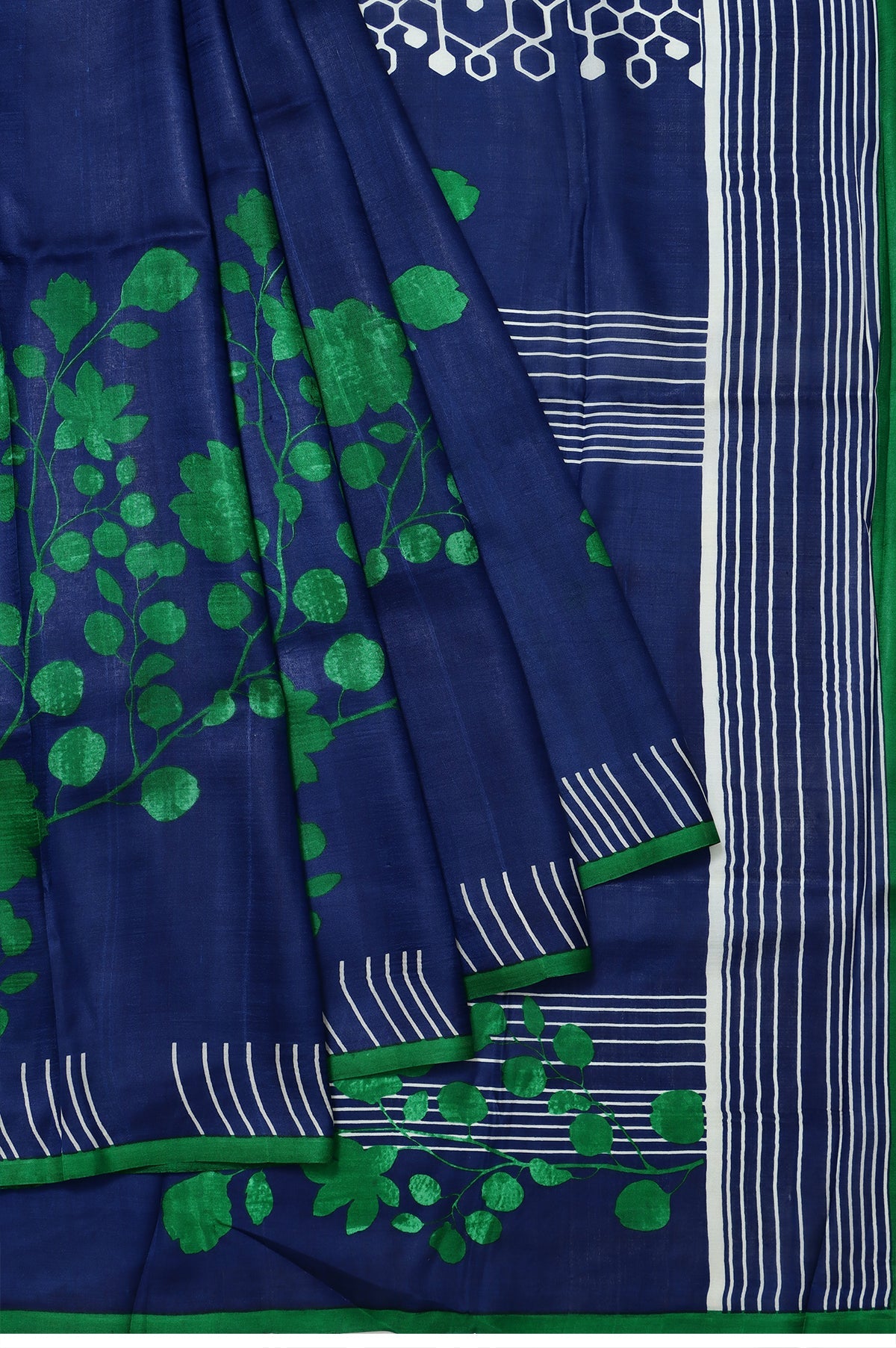Blue Silk Saree Stripes and Tree Motifs