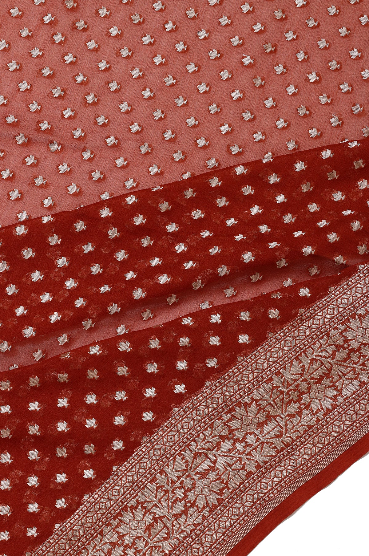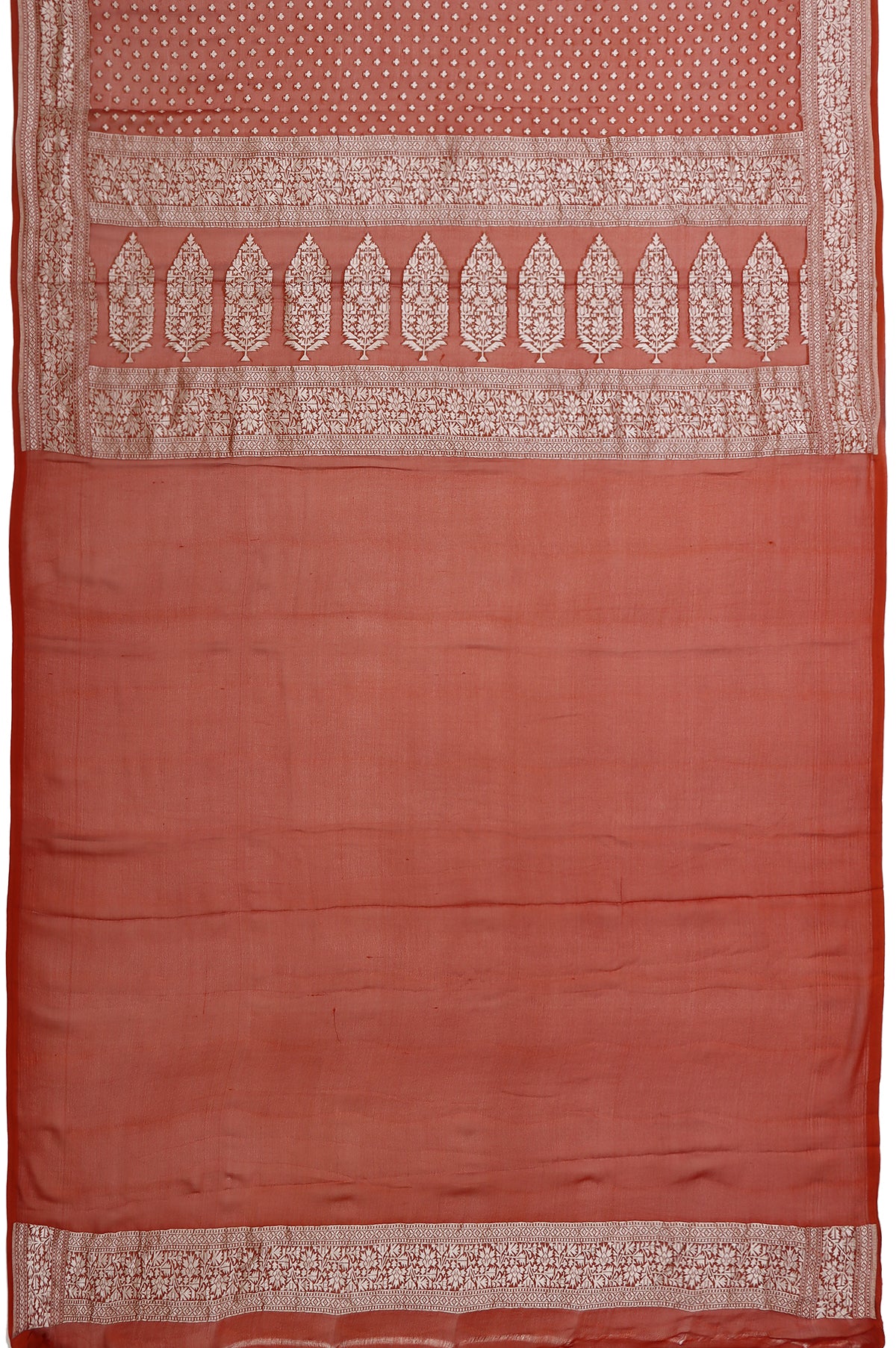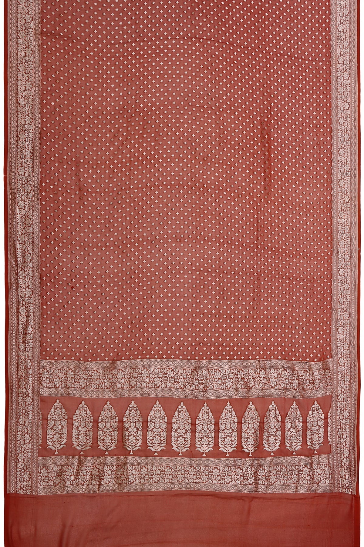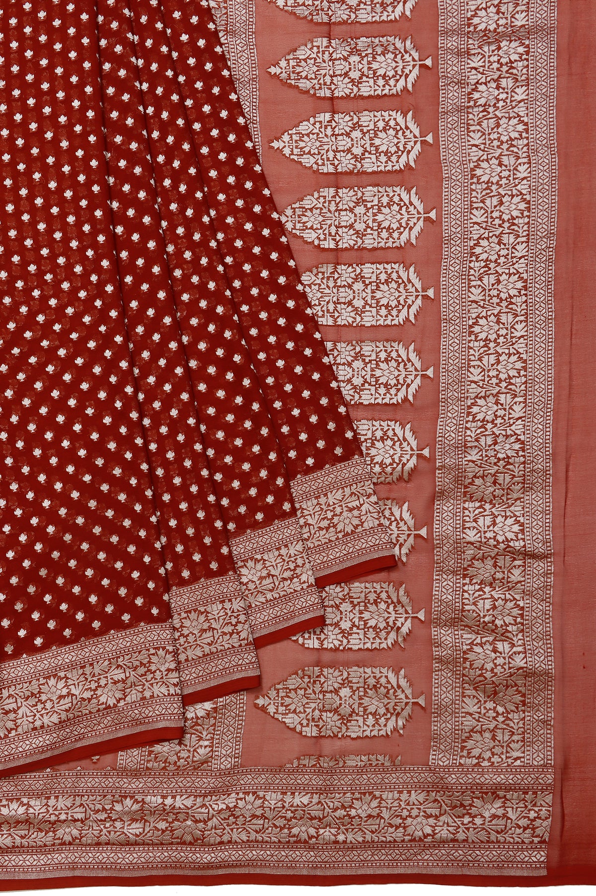 Brown Banaras Georgette Saree with Silver Zari and Flower Butta