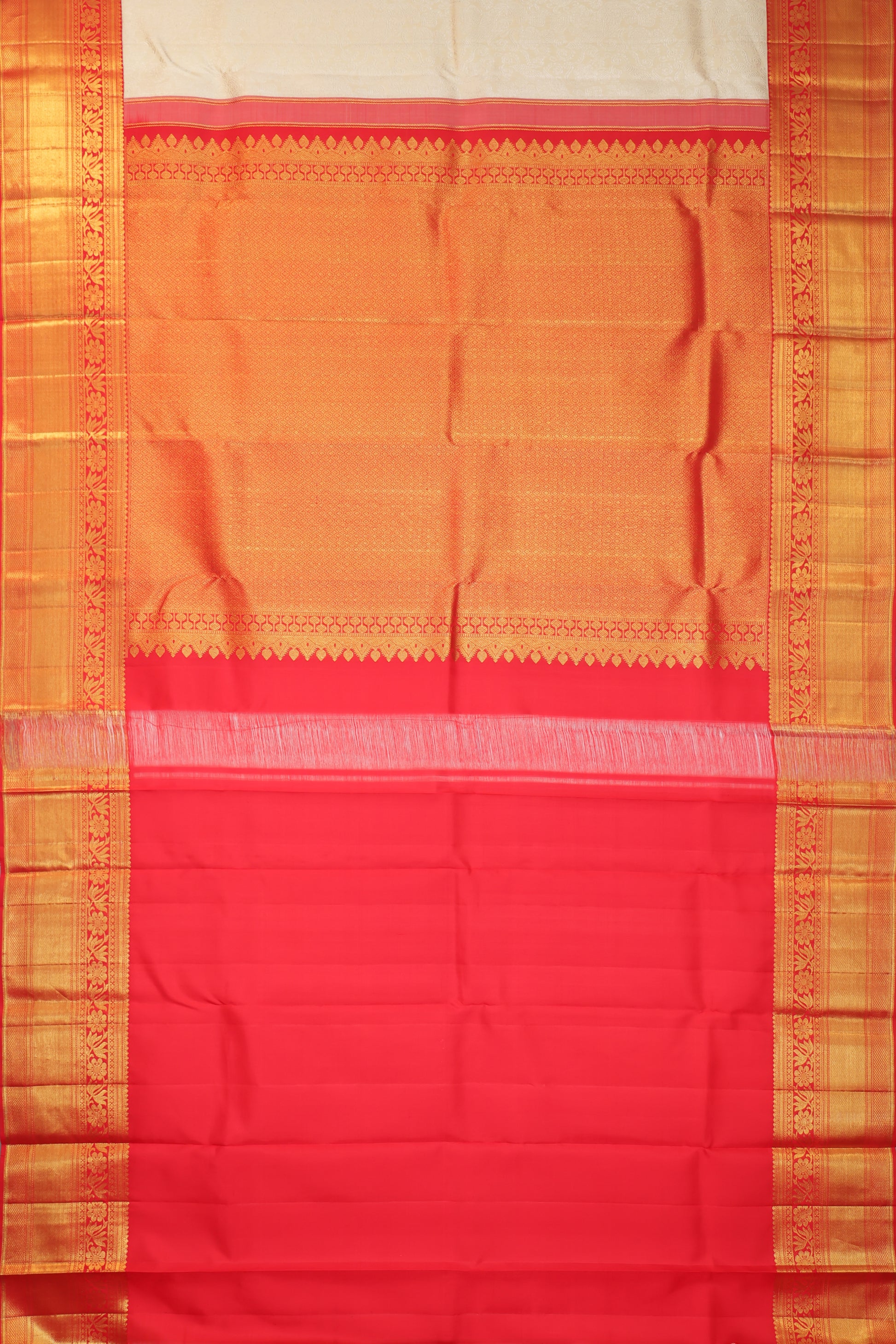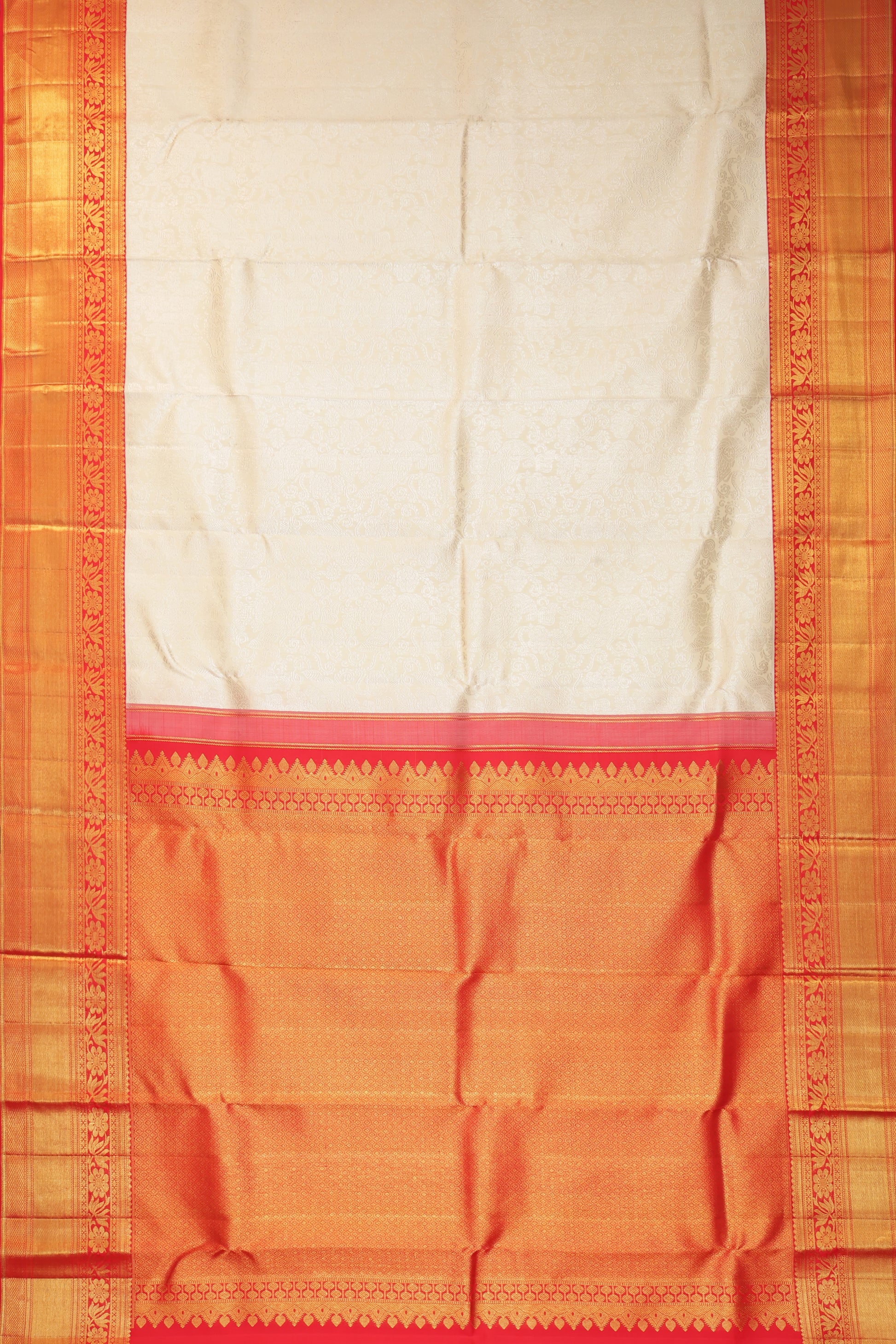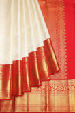 This elegant cream Kanchipuram pure silk saree from Mavuris exudes timeless charm. Featuring an all-over zari weave and a medium contrast border, it blends traditional craftsmanship with modern grace. Perfect for festive occasions and weddings, its luxurious silk drape and subtle sheen make it a stunning statement of refined sophistication.