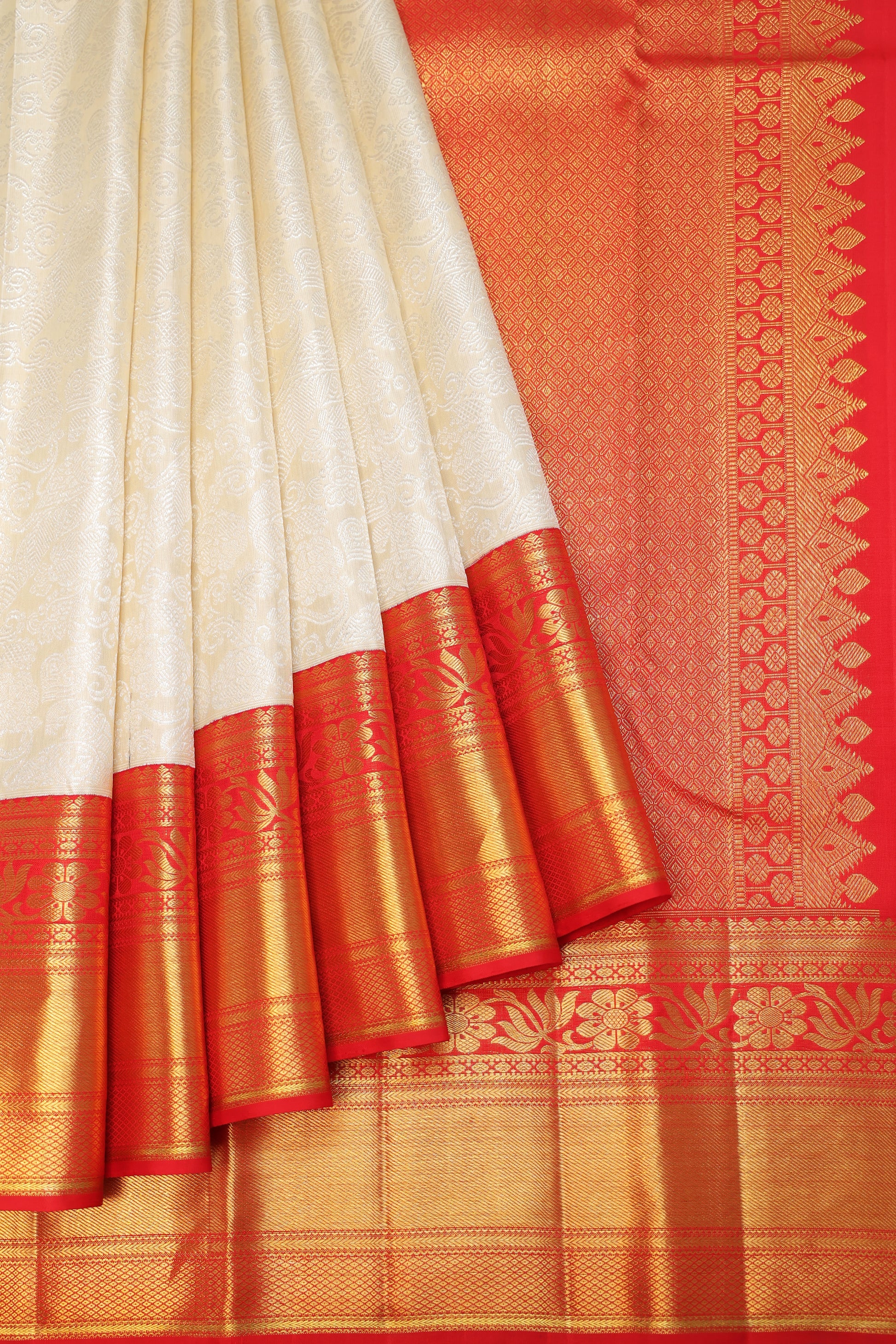Cream Kanchipuram Silk Saree with Brocade Jaal