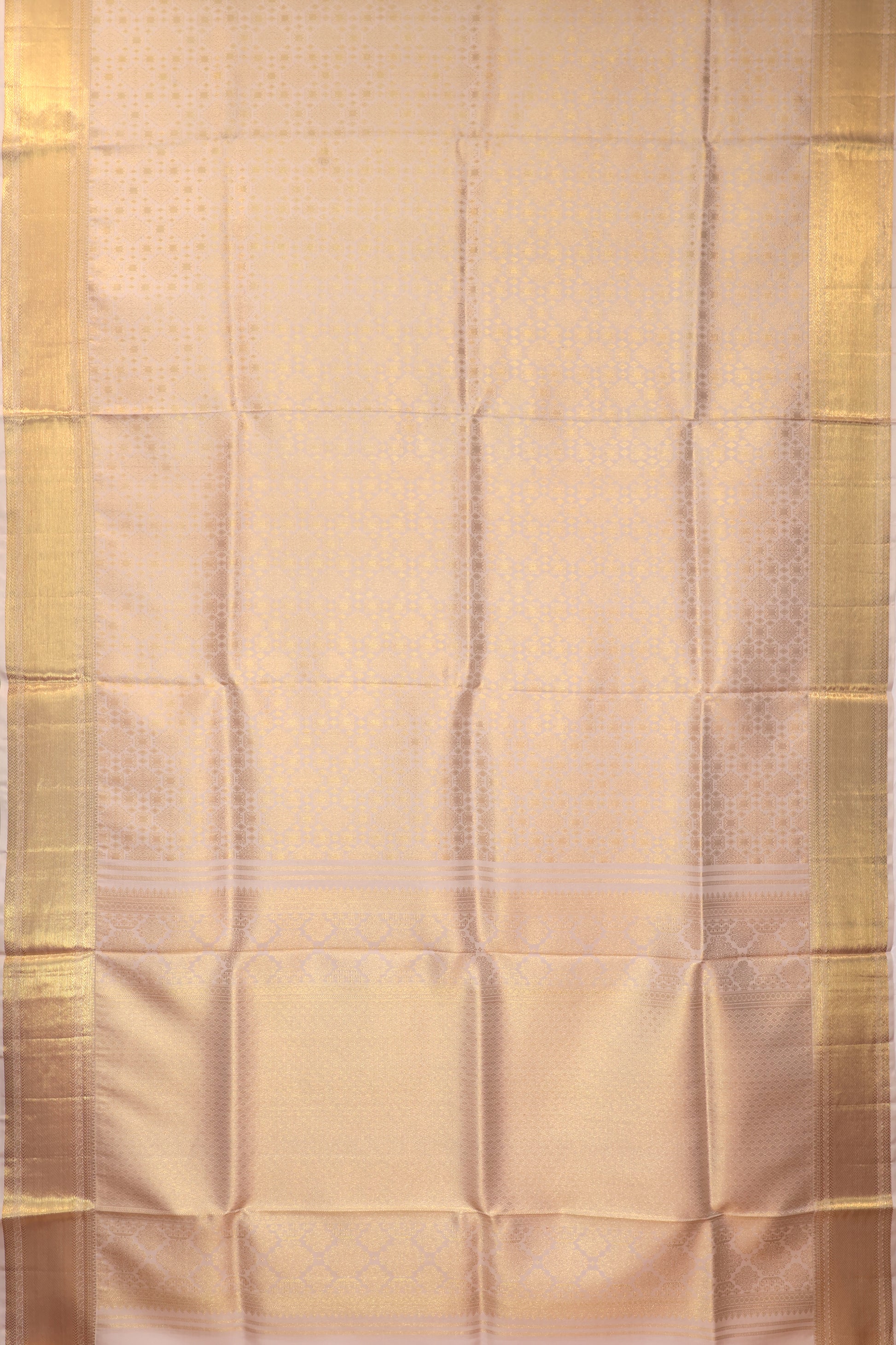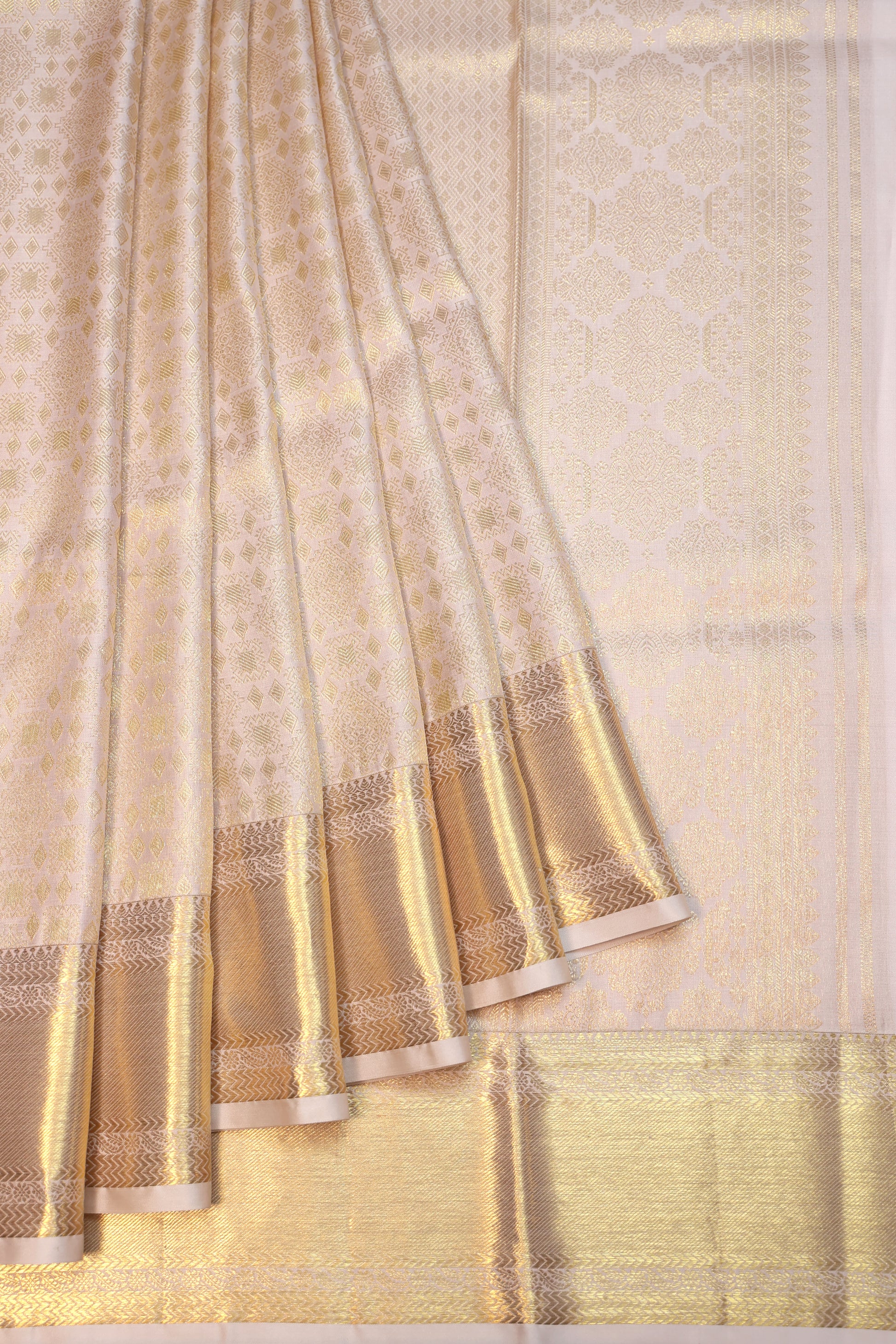 Cream Kanchipuram Silk Saree with Diamond Motifs &Twill Border