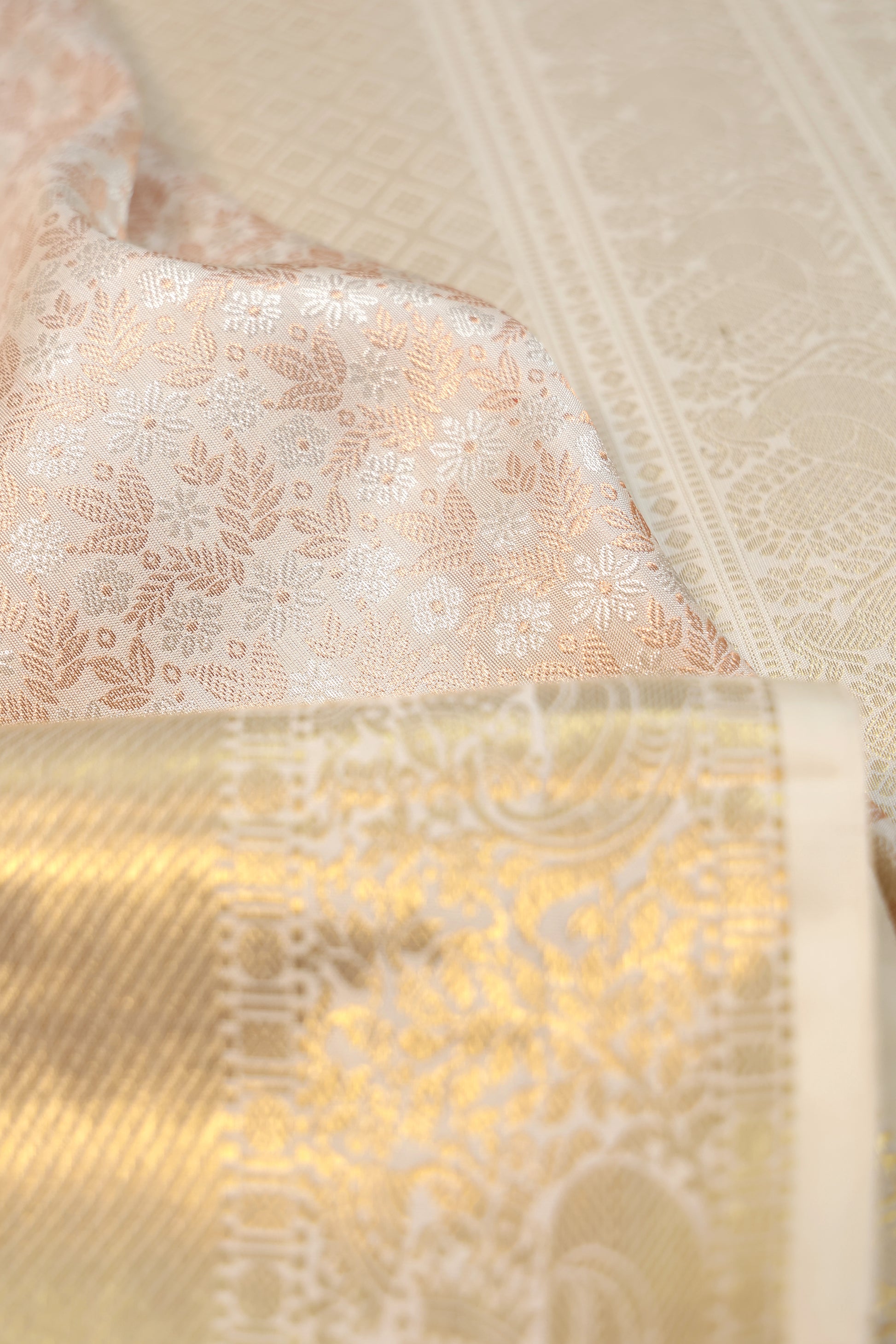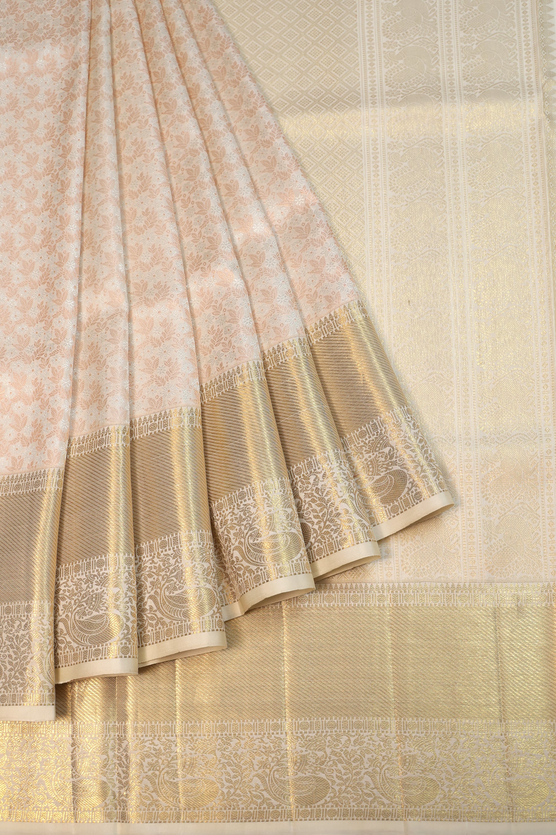 Cream Kanchipuram Silk Saree with Floral Jaal