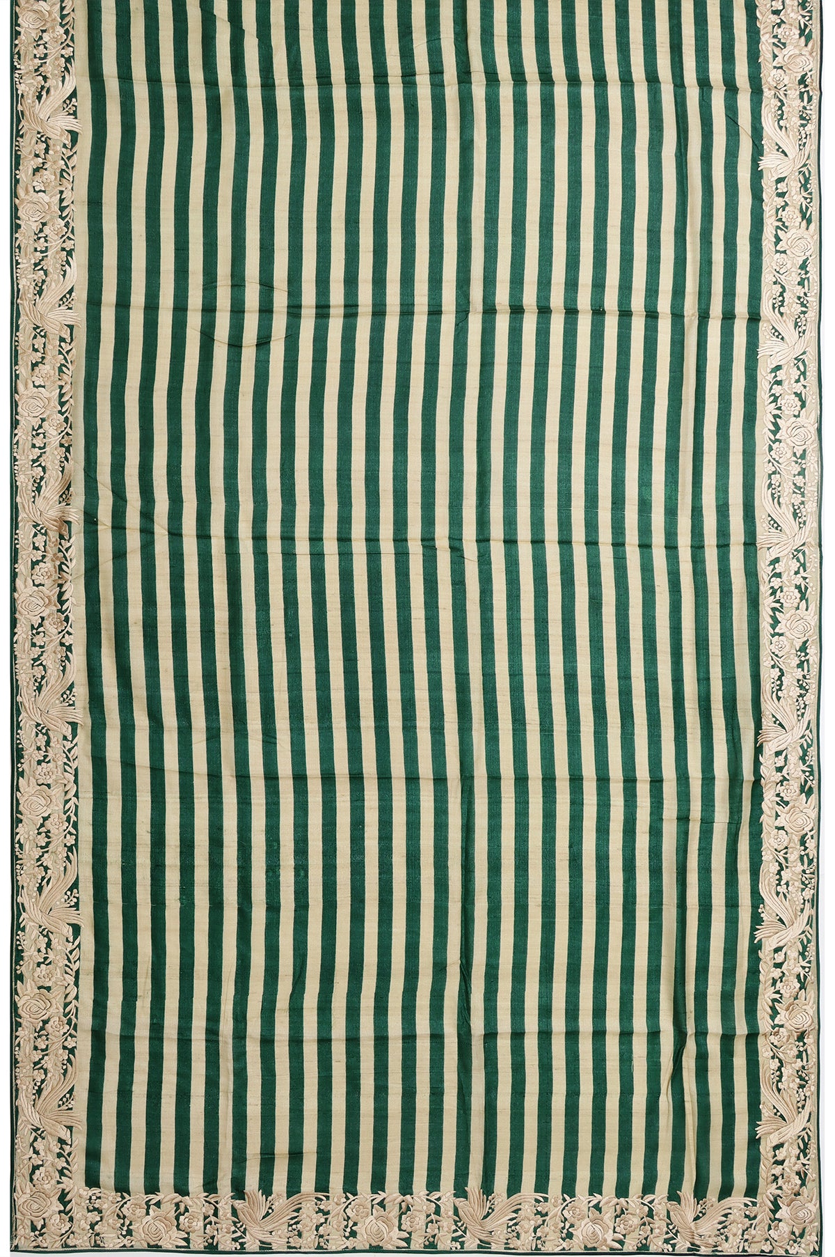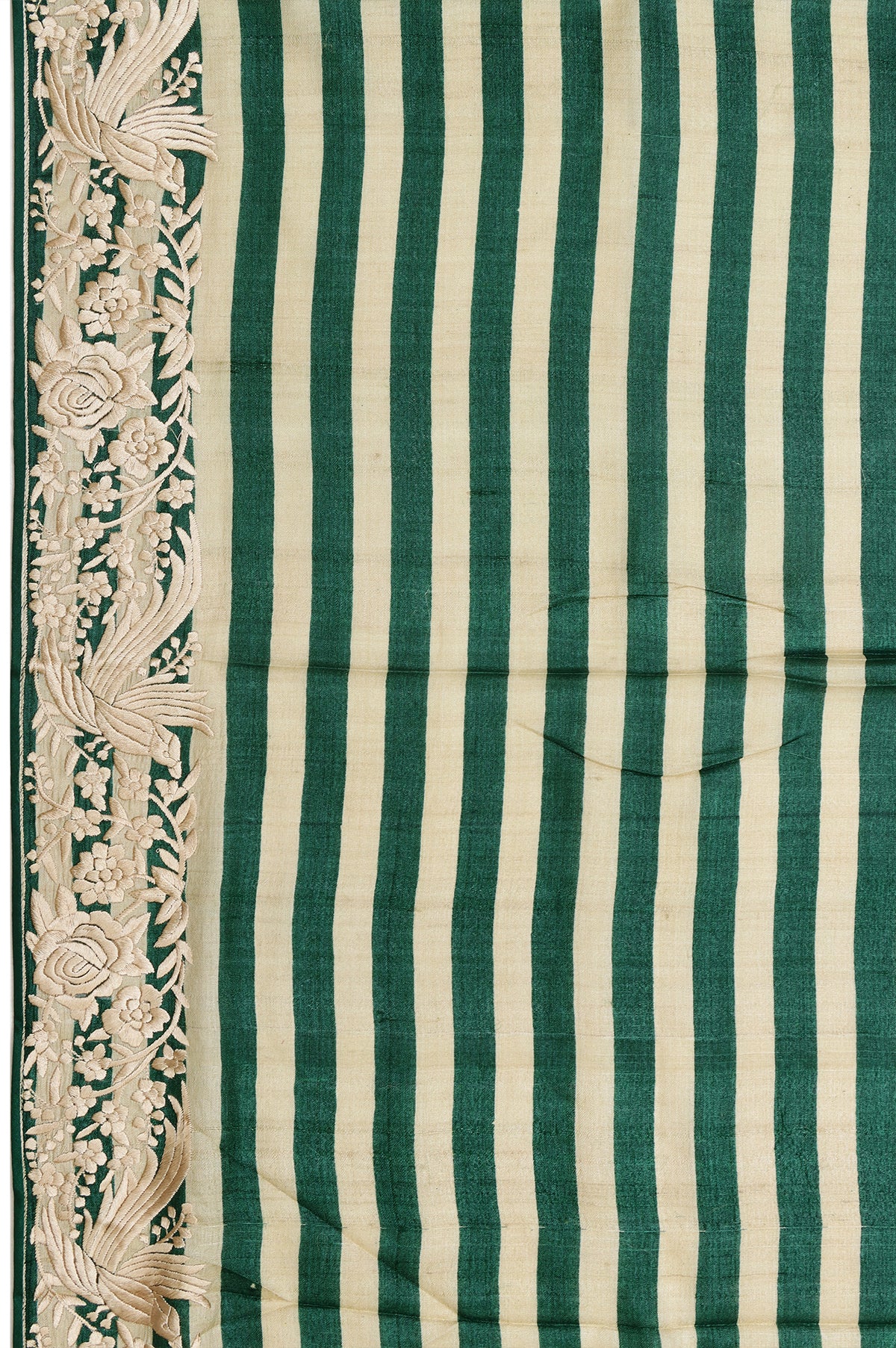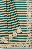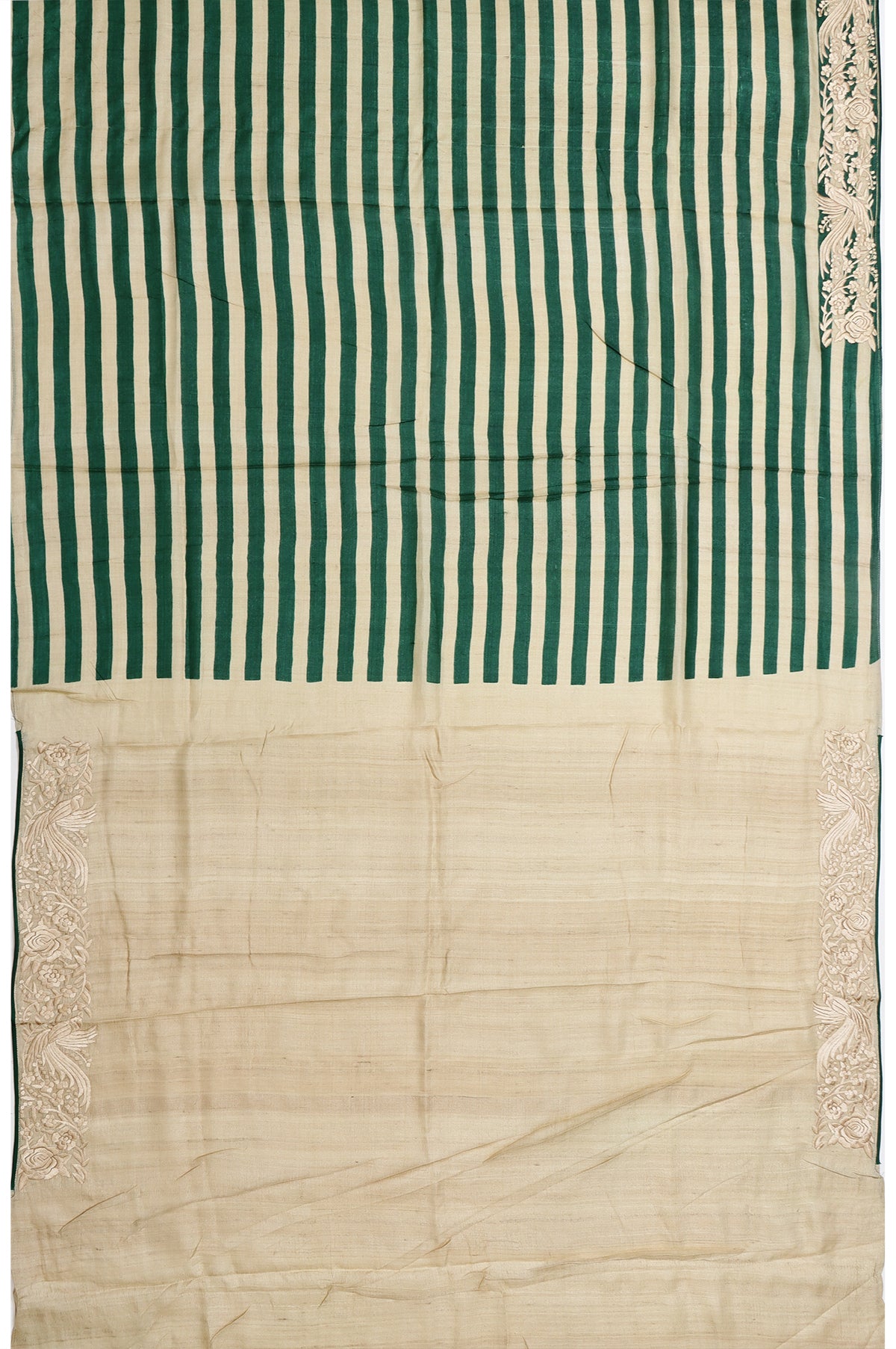 Cream Tussar Silk Saree with Stripe Design and Parsi Work