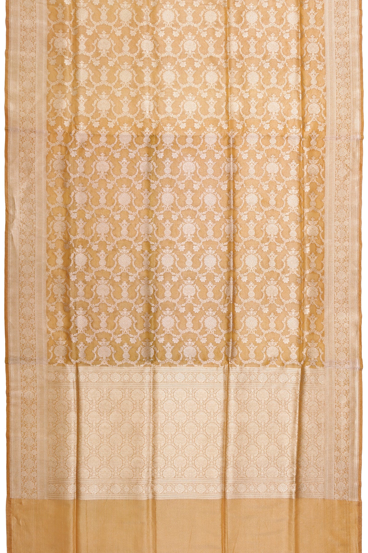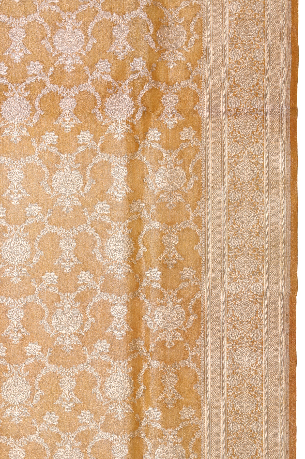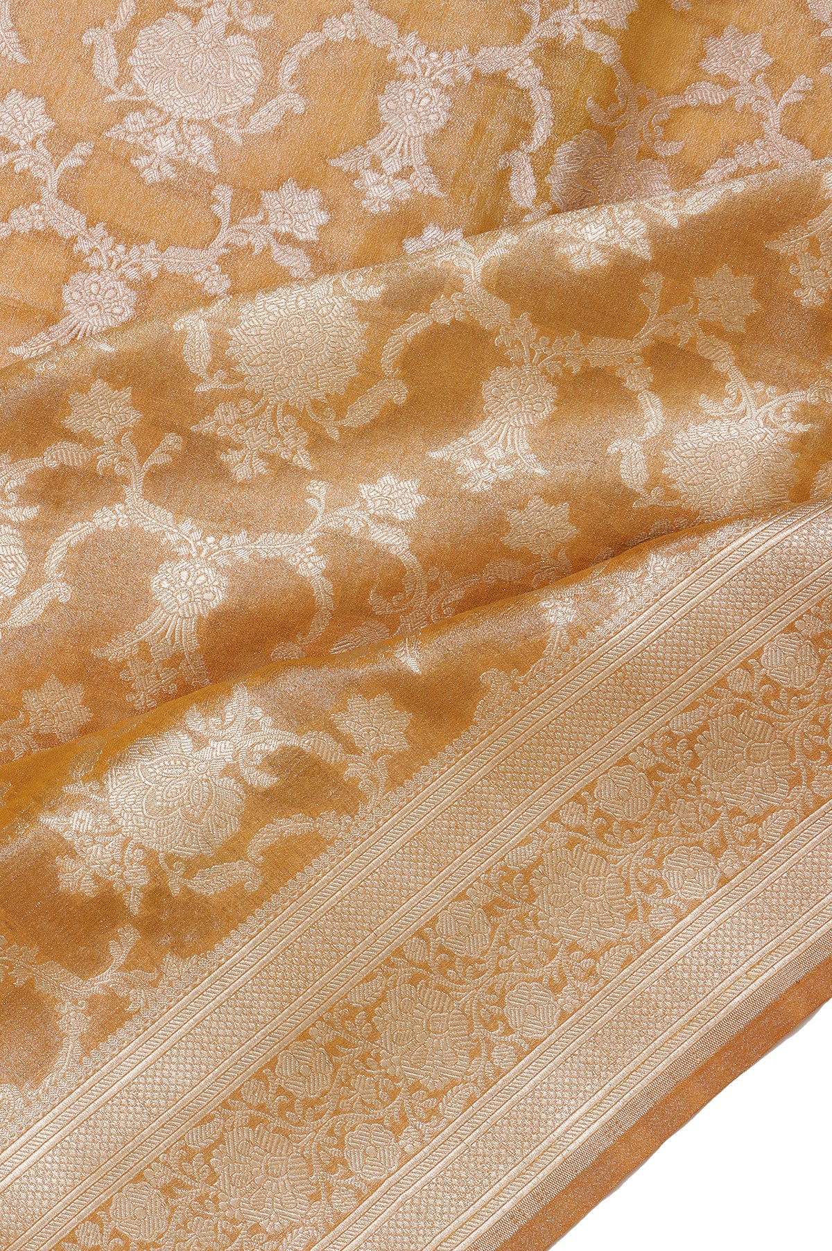 Gold Banaras Katan Saree with Floral Jaal and Gold Zari
