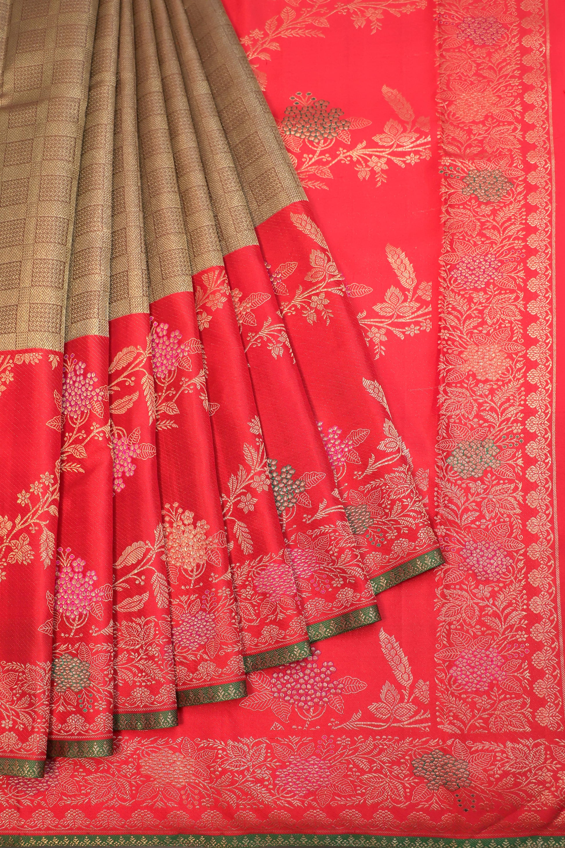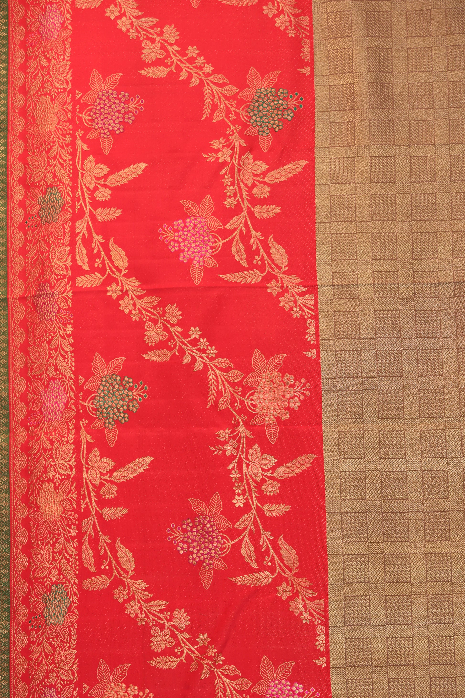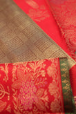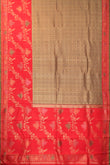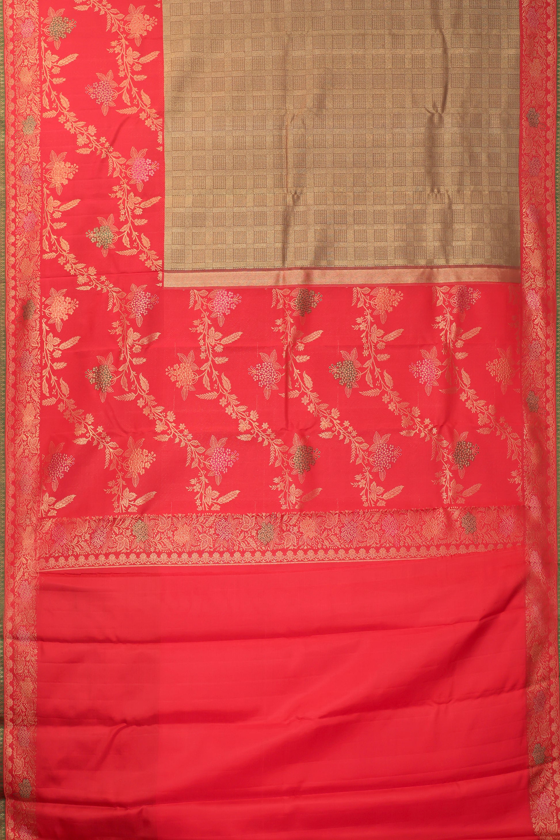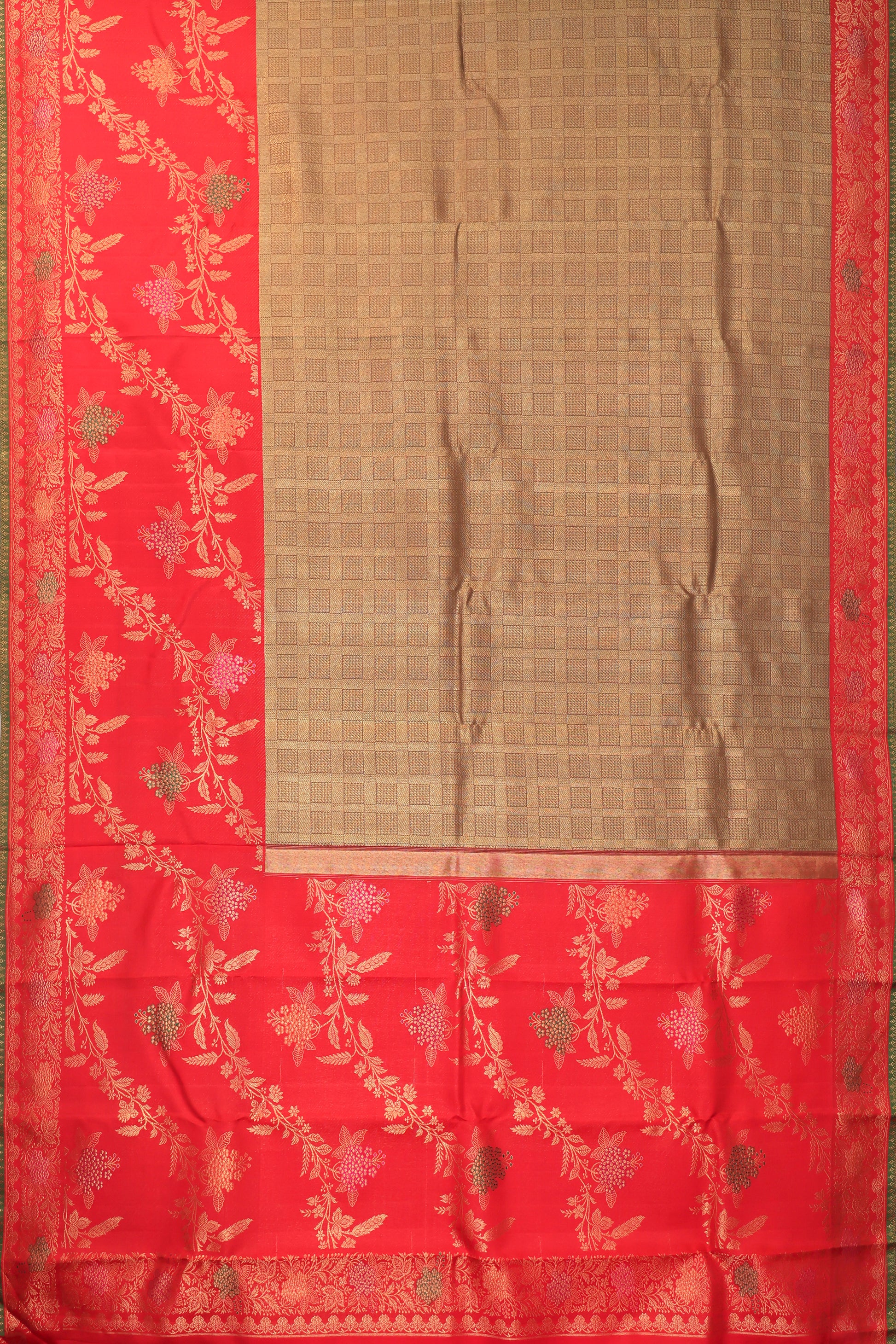 Gold Chequered Kanchipuram Silk Saree with Red Meenakari Border