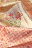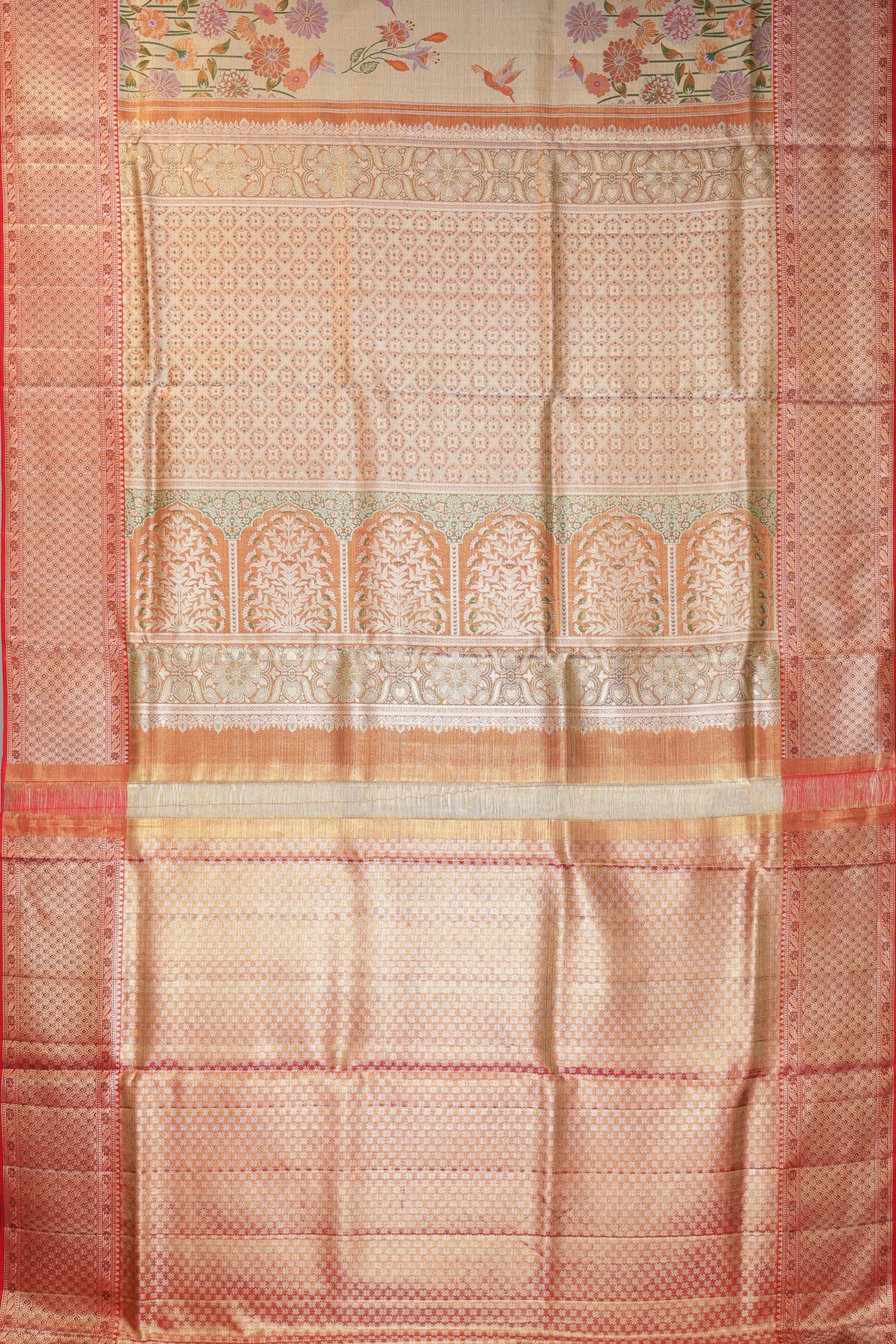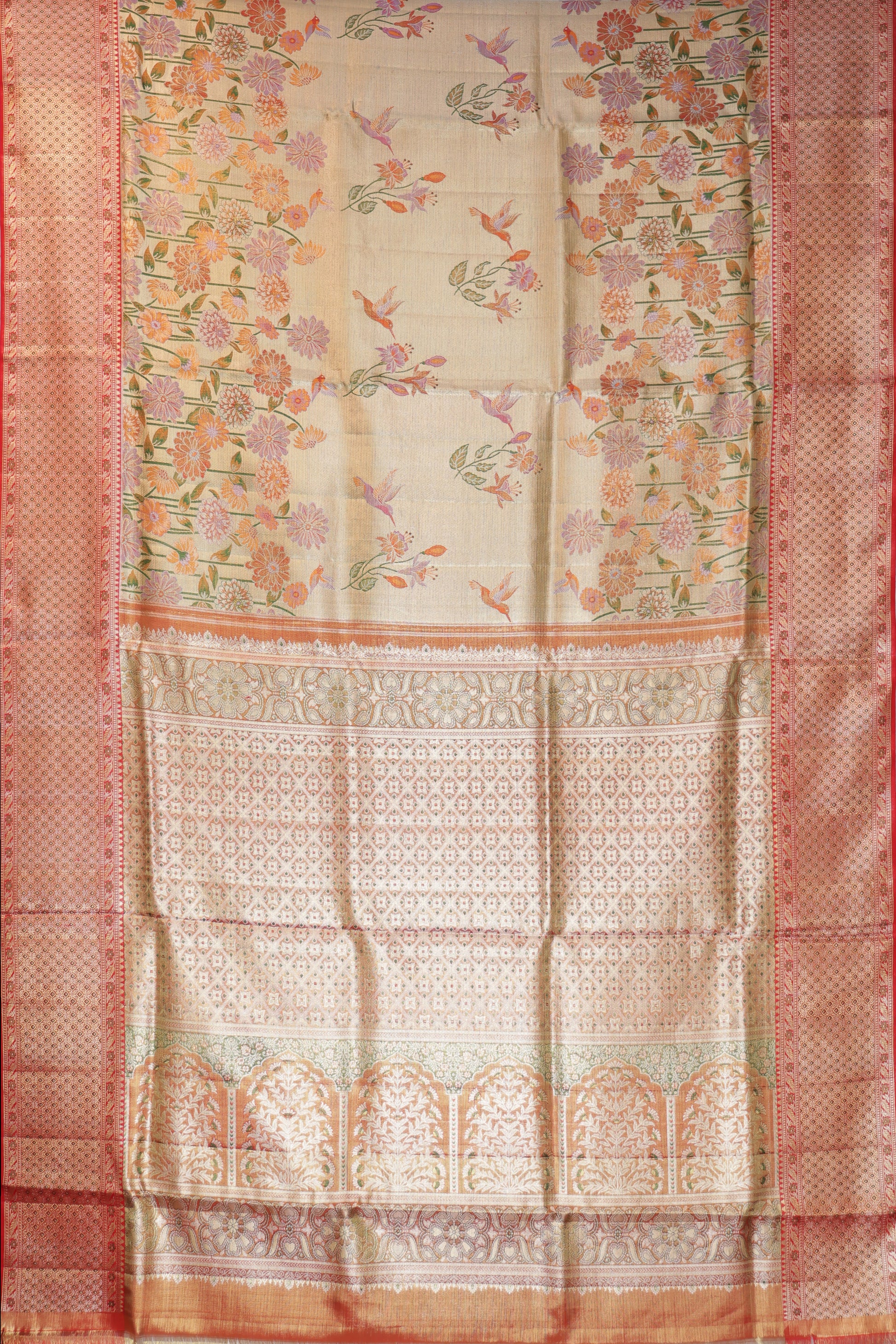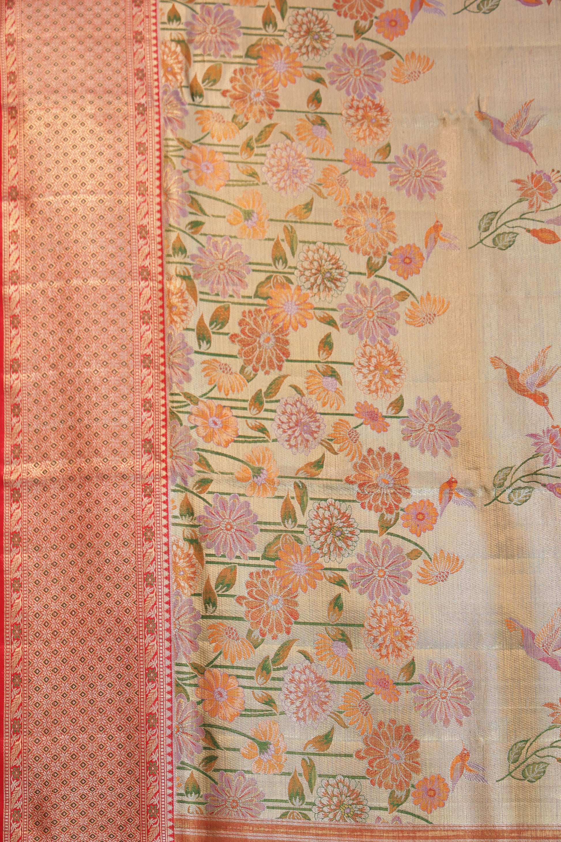 Gold Kanchipuram Silk Saree with Floral Meenakari Design