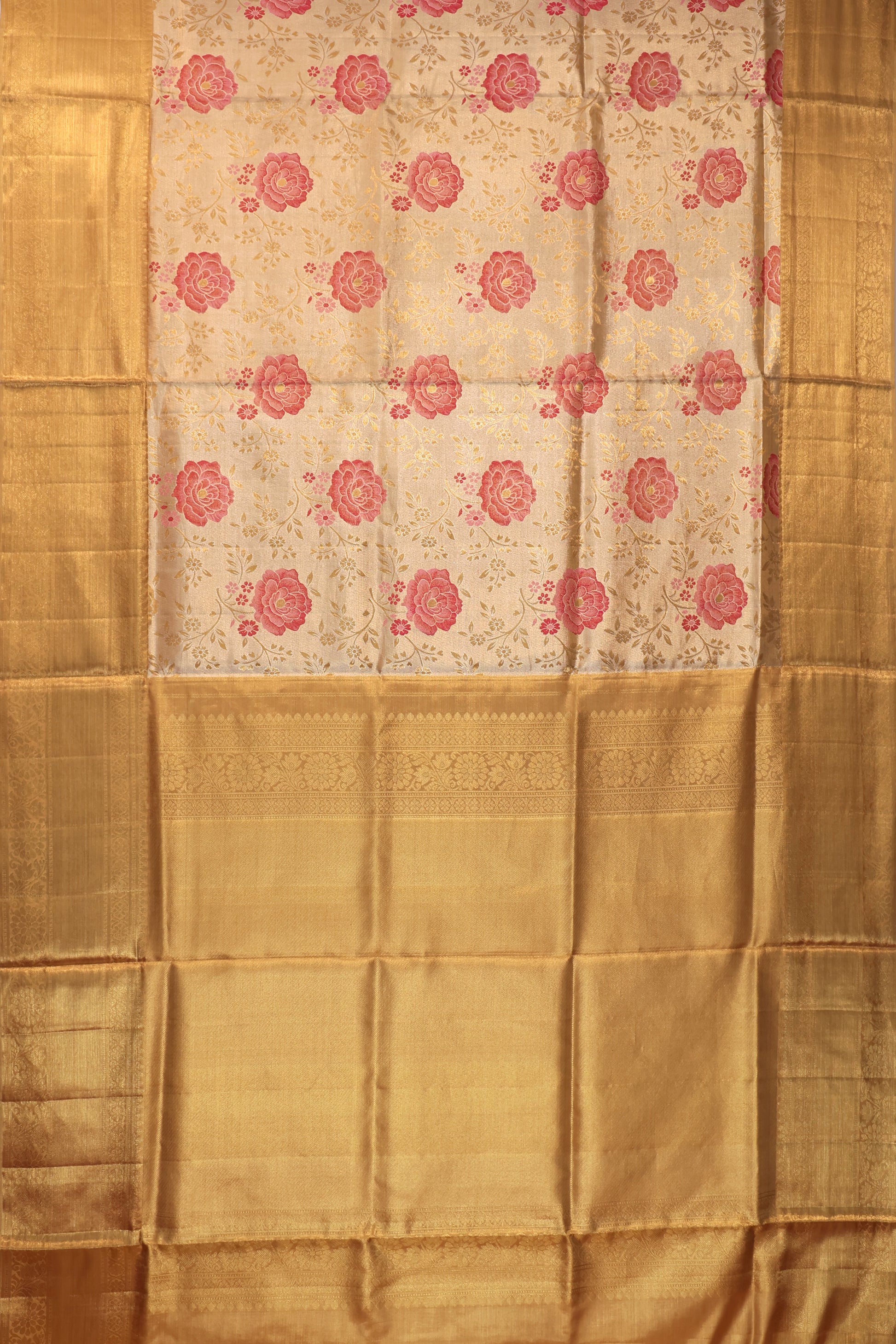 Gold Kanchipuram Silk Saree with Meenakari Motifs