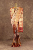 This stunning tissue silk saree features a beautiful maroon base, highlighted with a rich gold zari border and diamond buttas. The body is embellished with intricate gold and silver zari work, along with an all-over floral jaal pattern and detailed floral motifs for added grace.