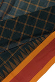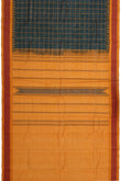 Green Chequered Kanchi Cotton Saree Mustard Pallu