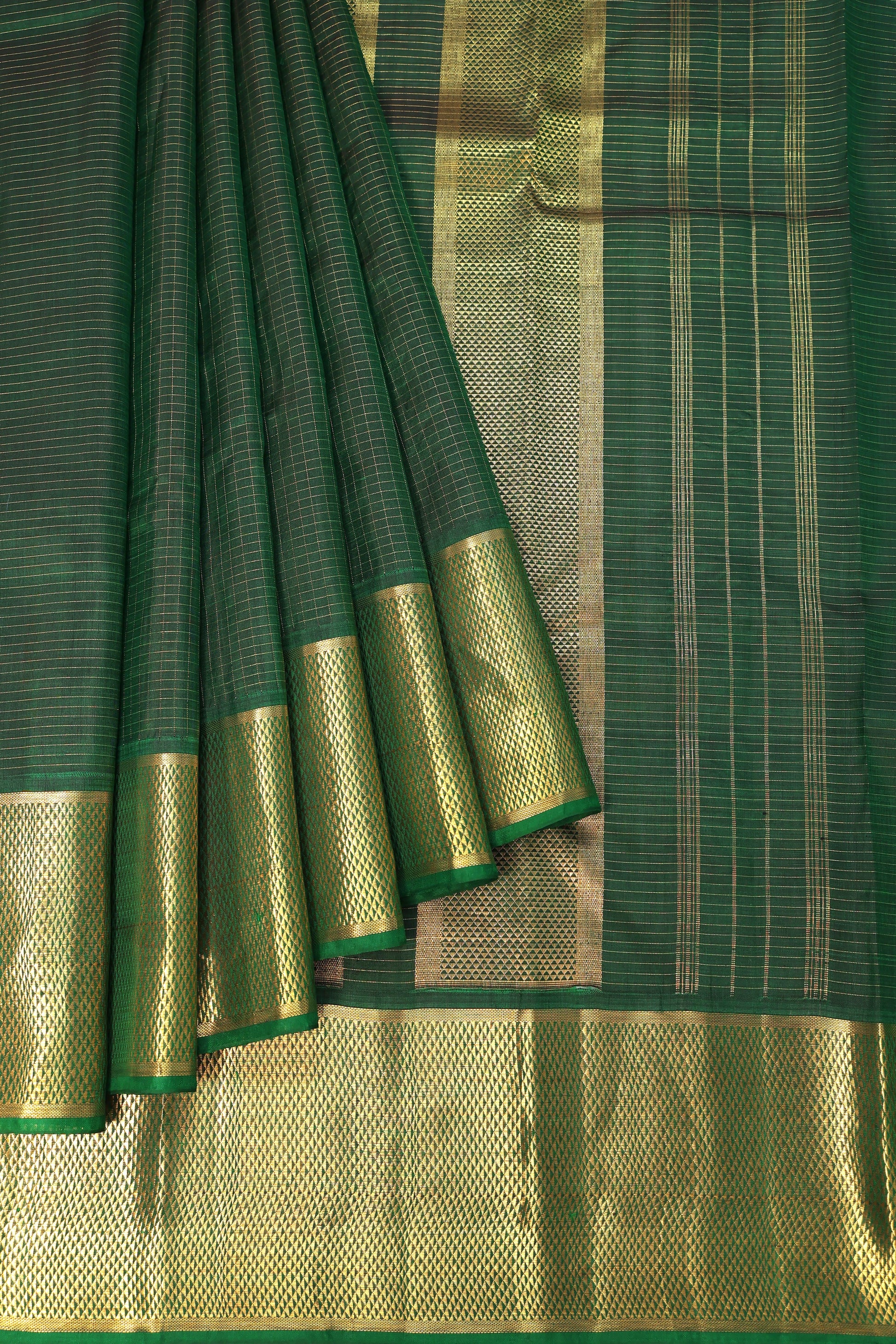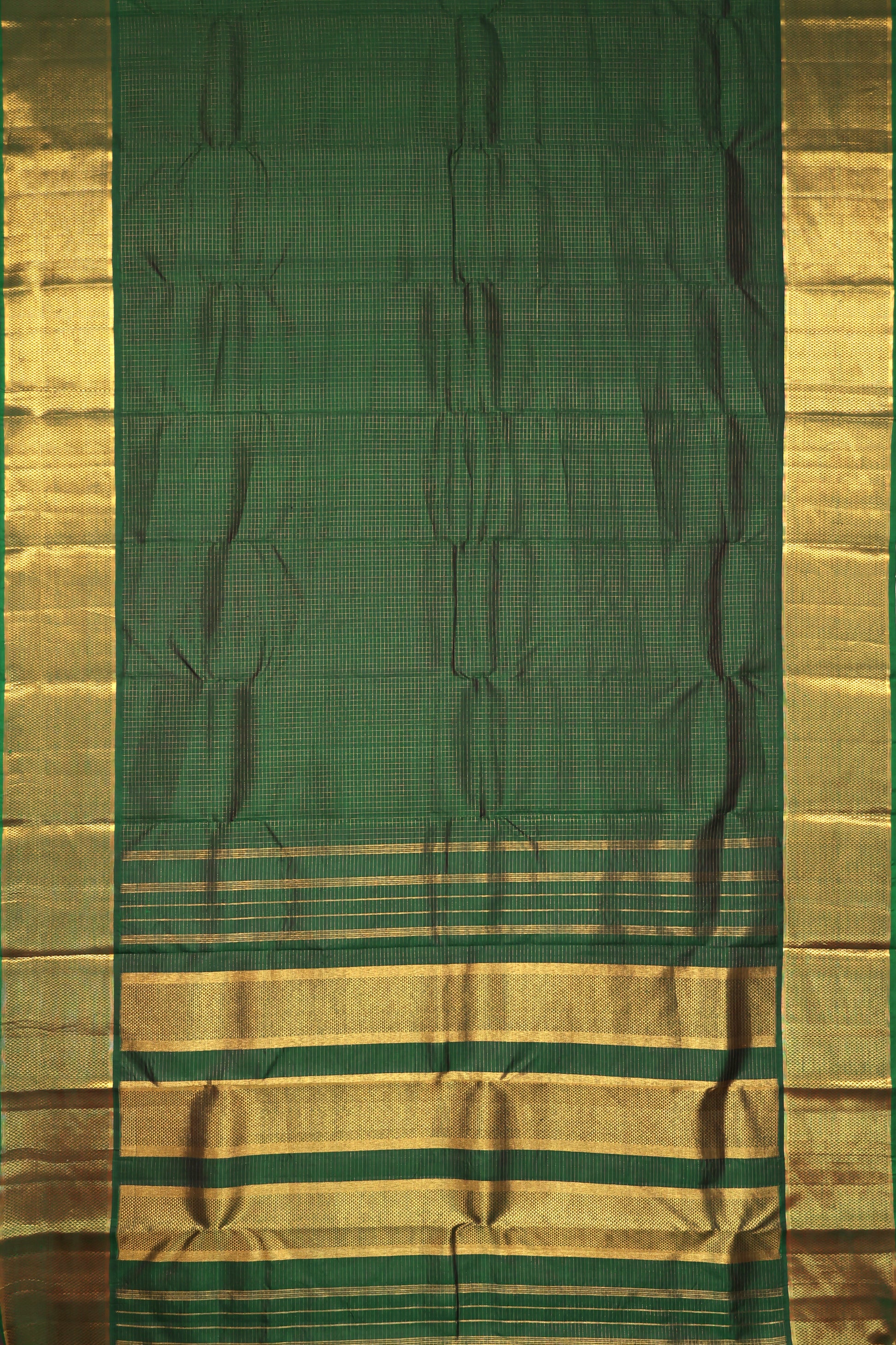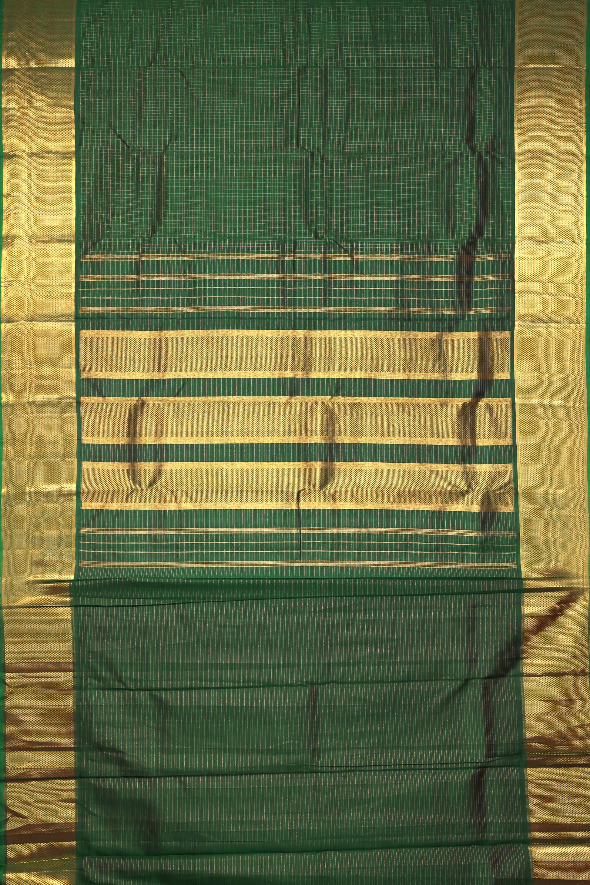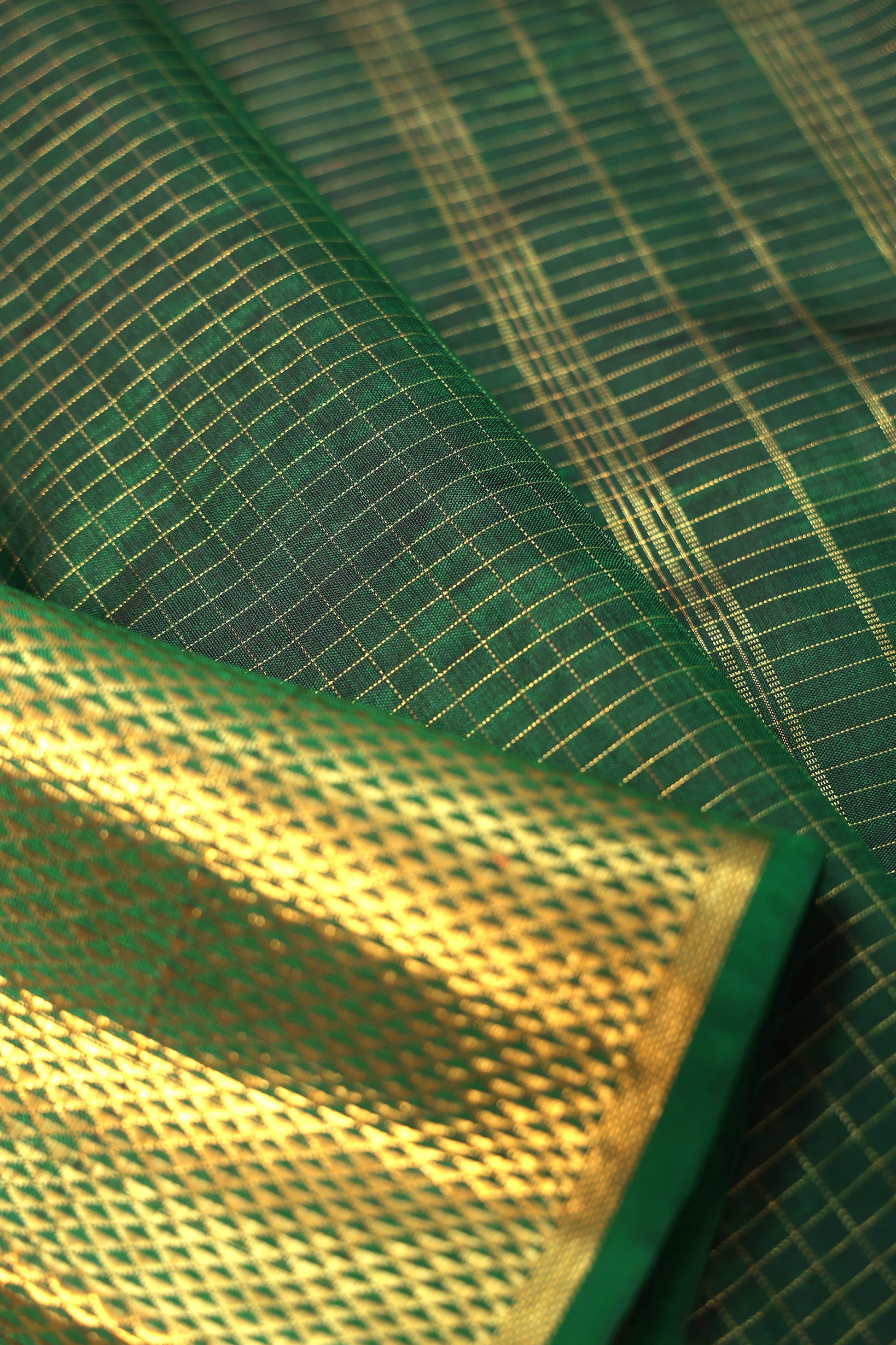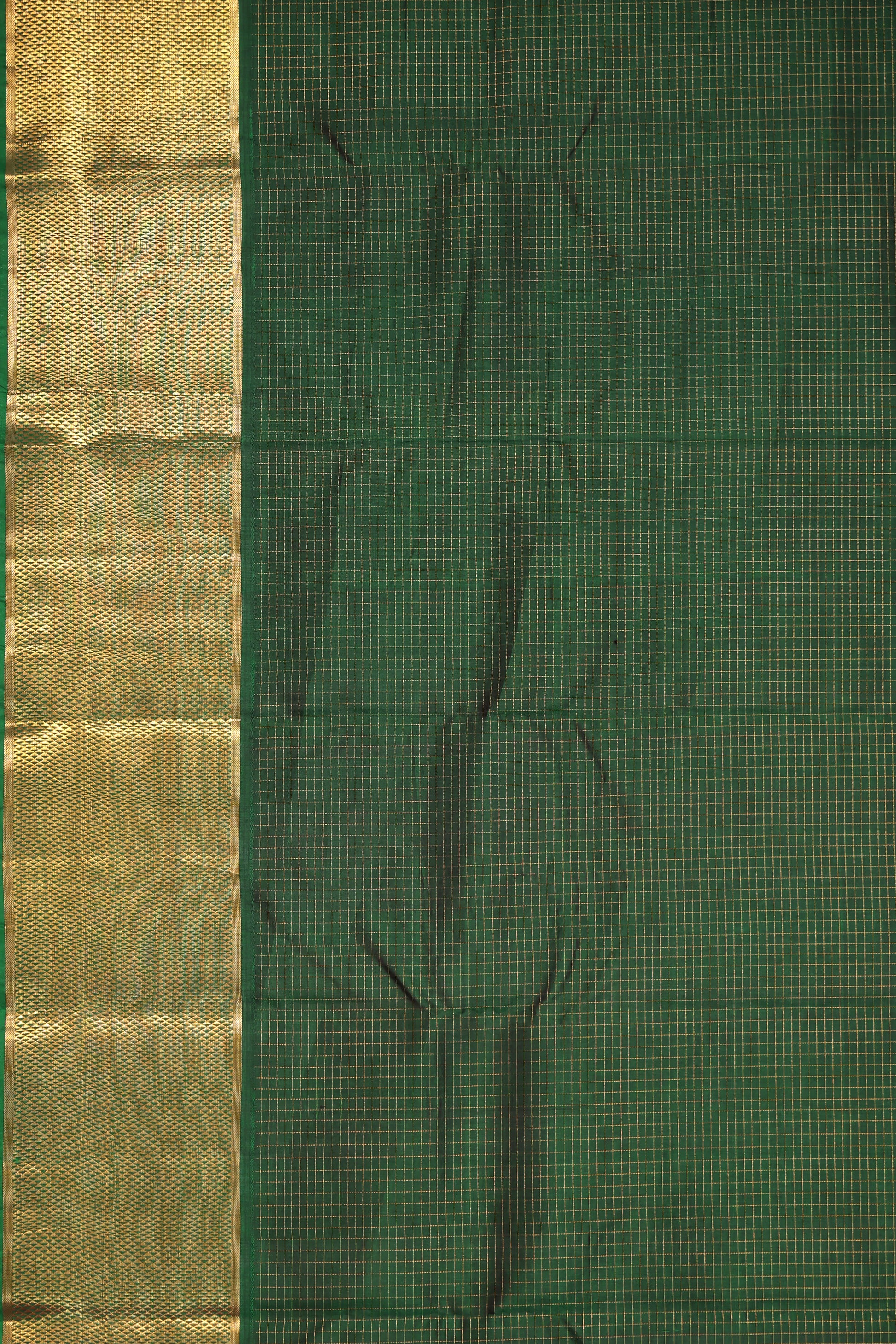 Green Kanchipuram Silk Saree with Gold Zari Chequered Border