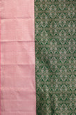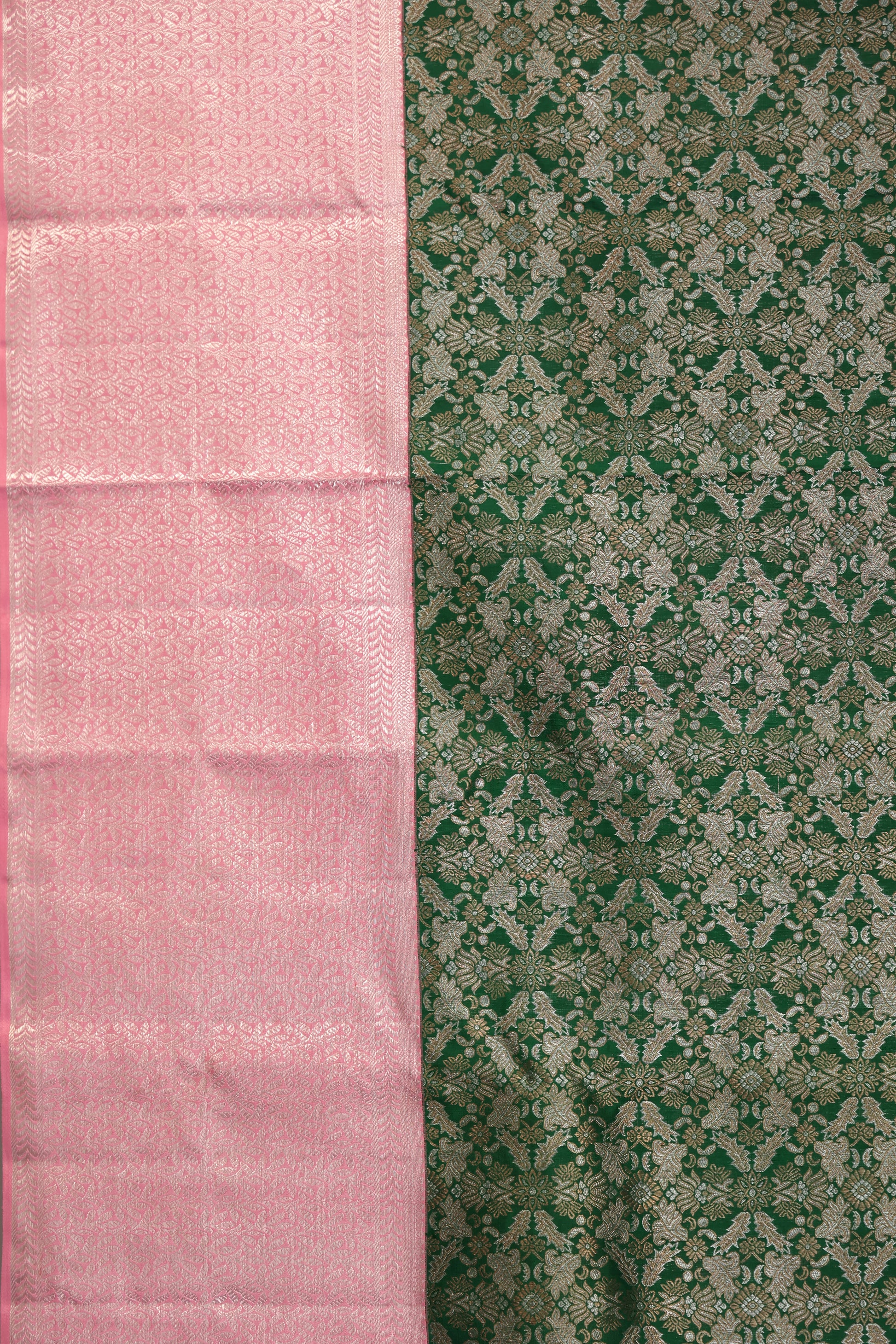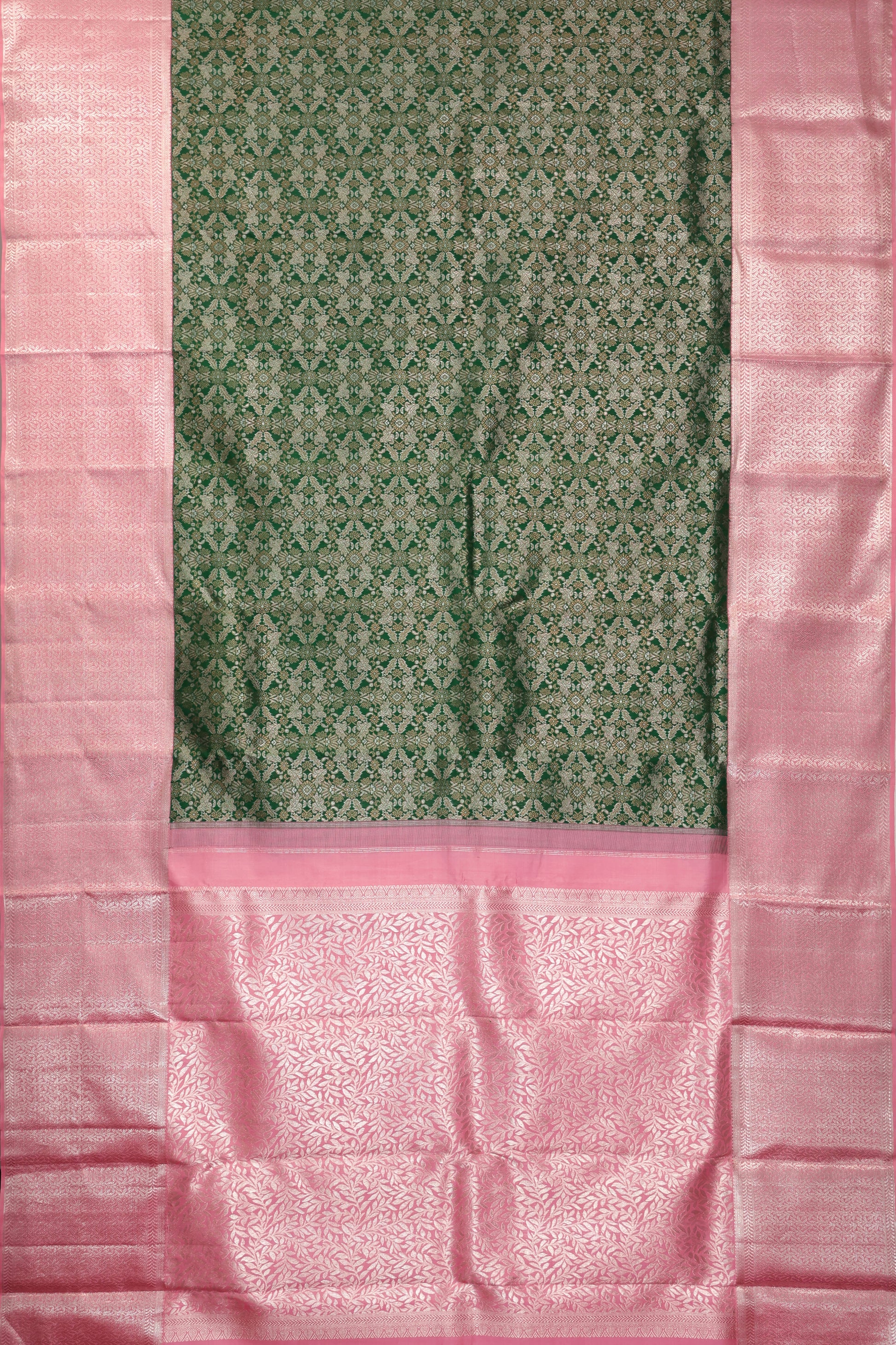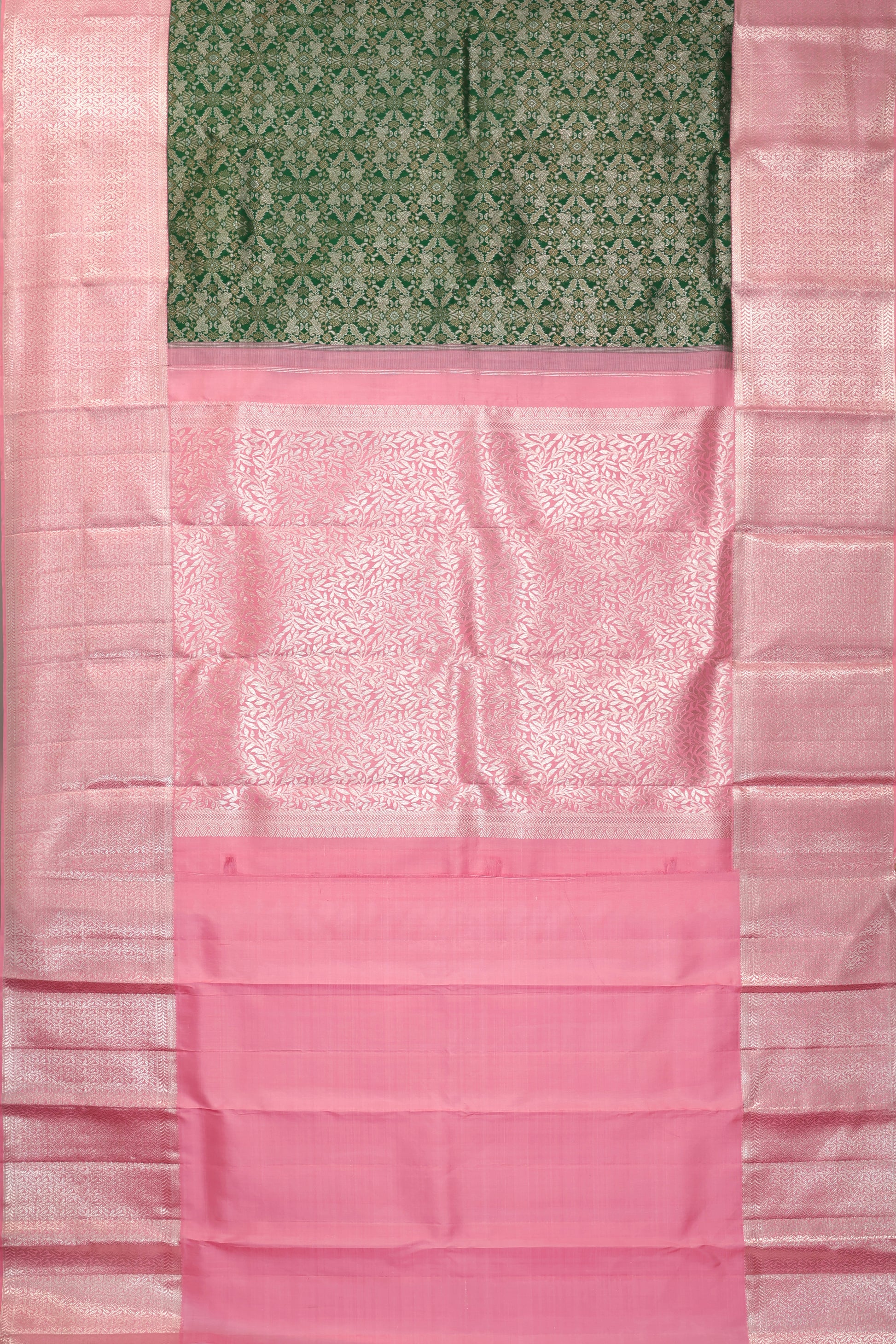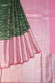 Green Kanchipuram Silk Saree with Pink Floral Jaal Border