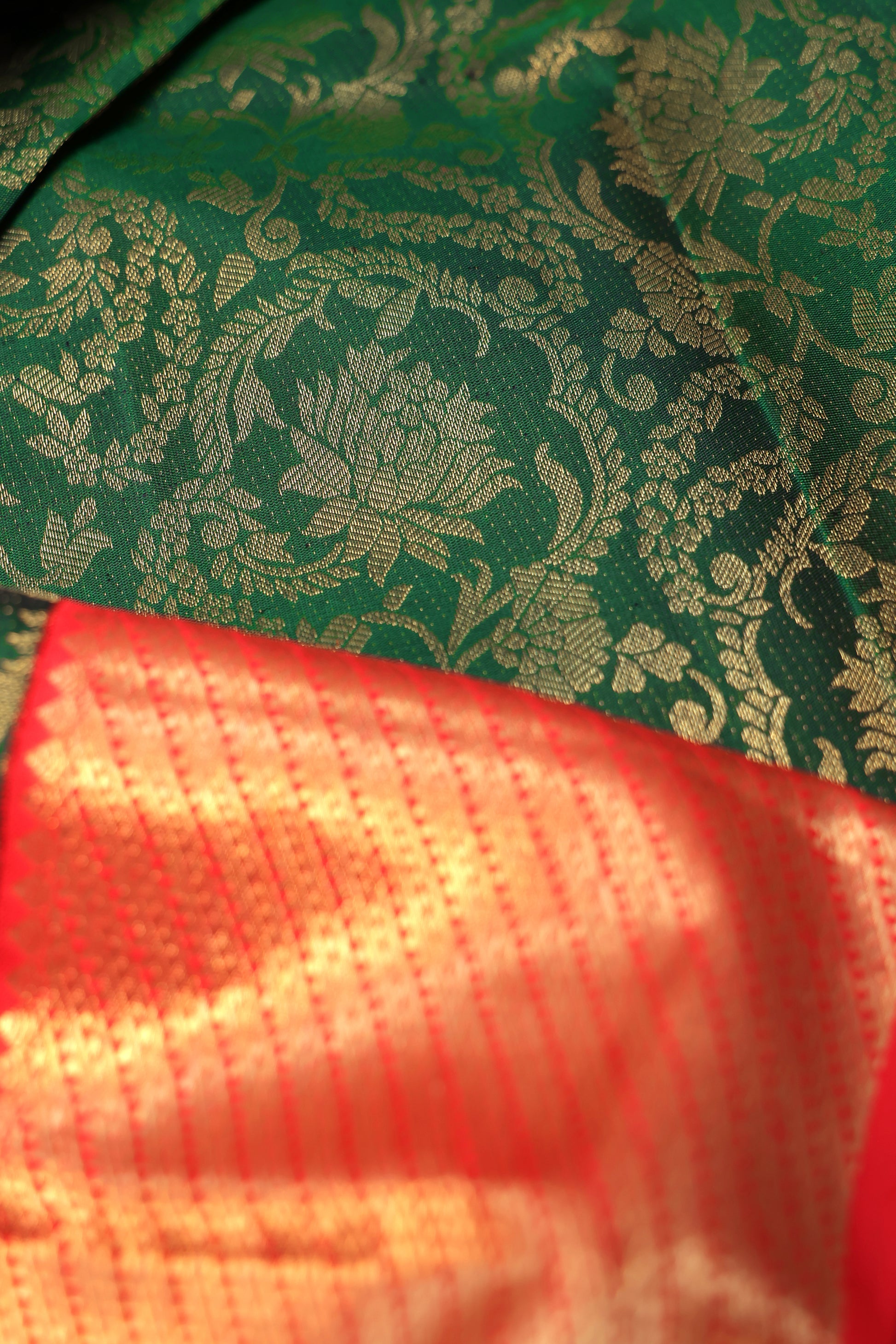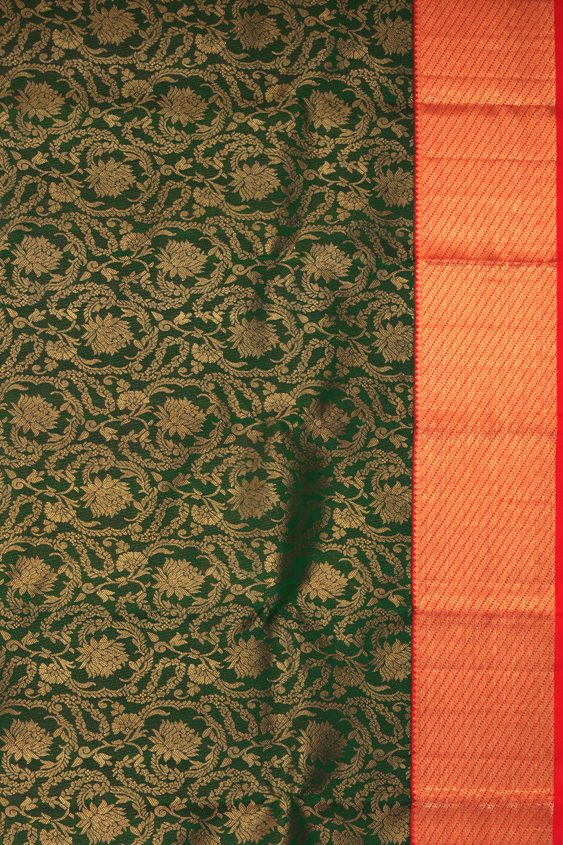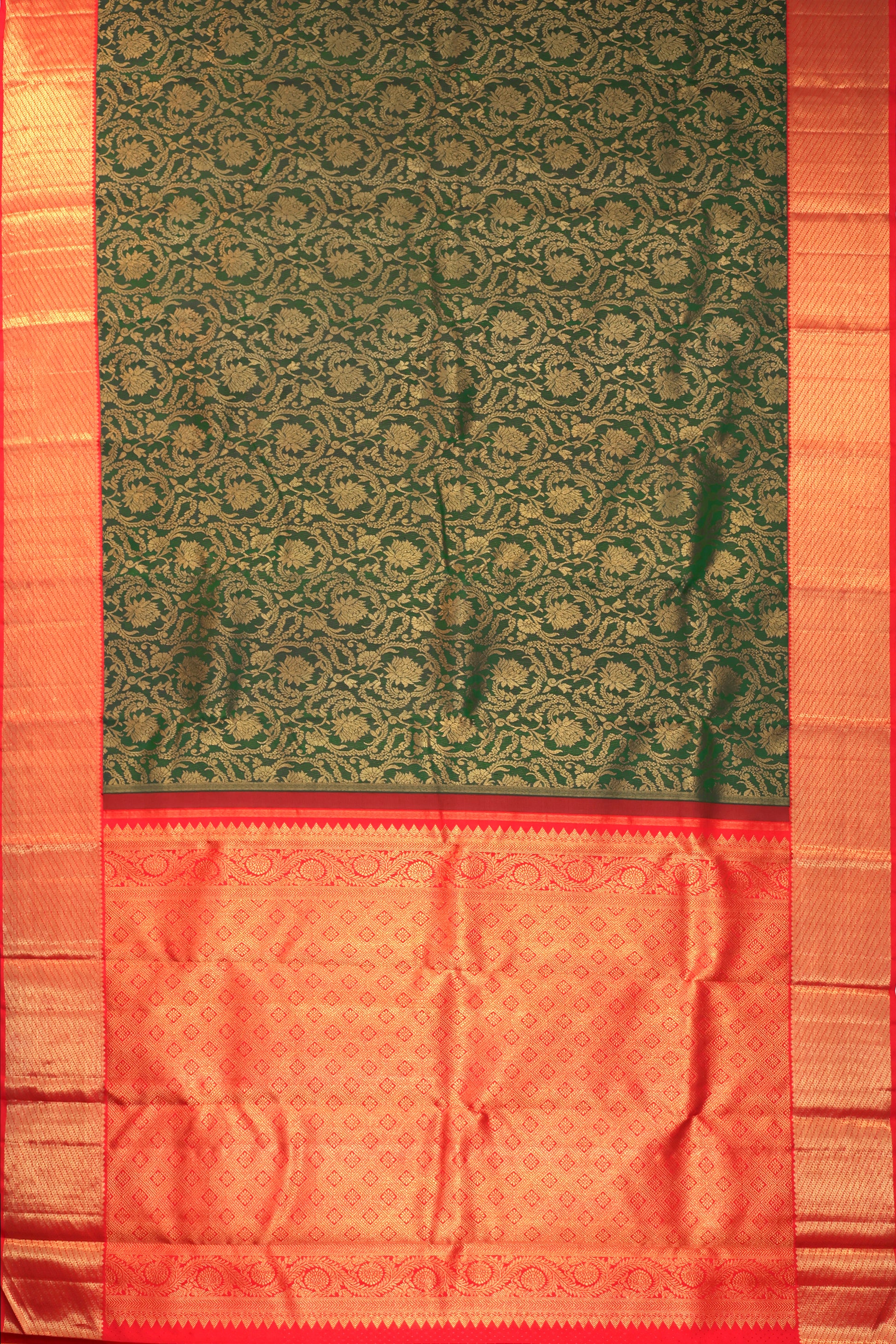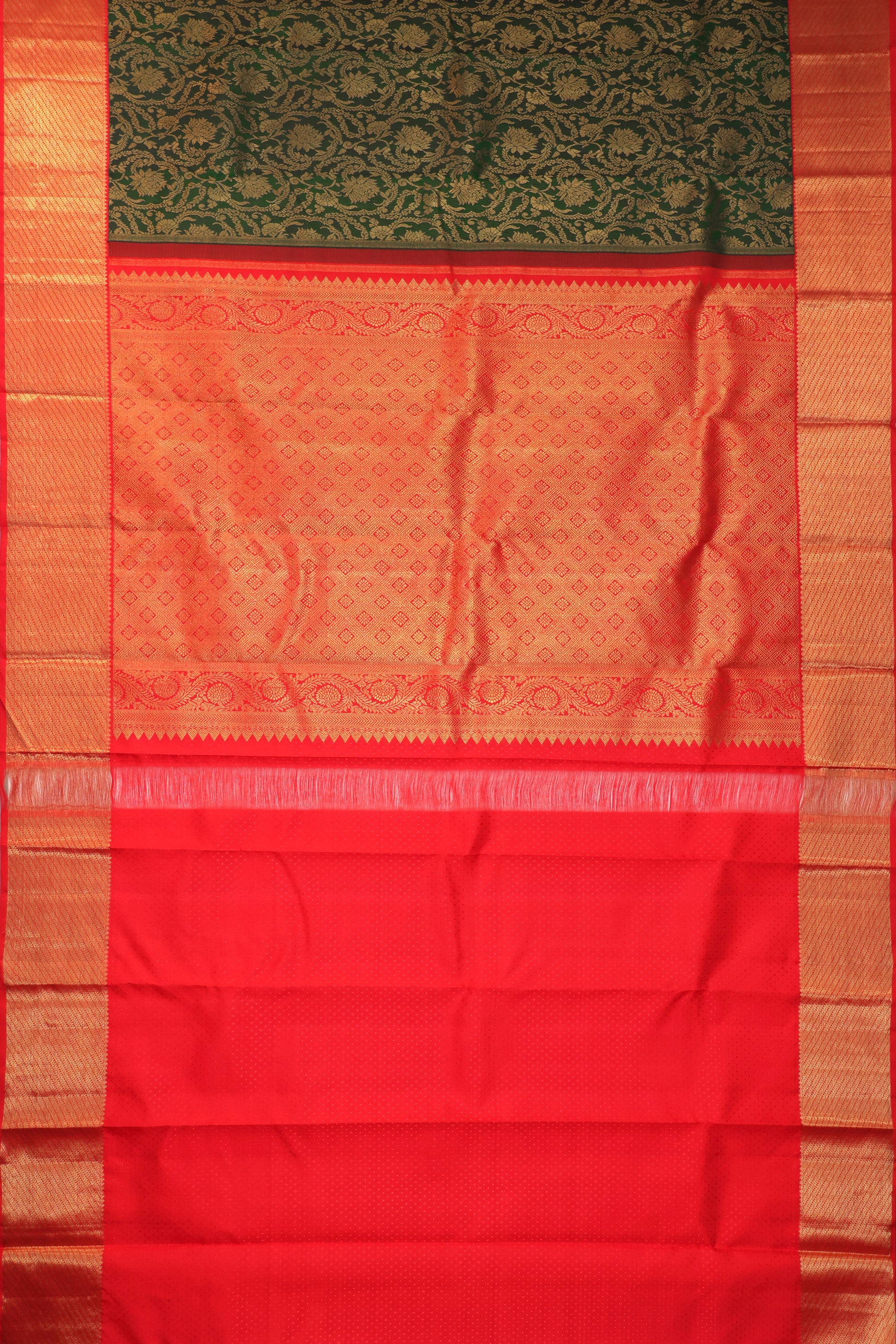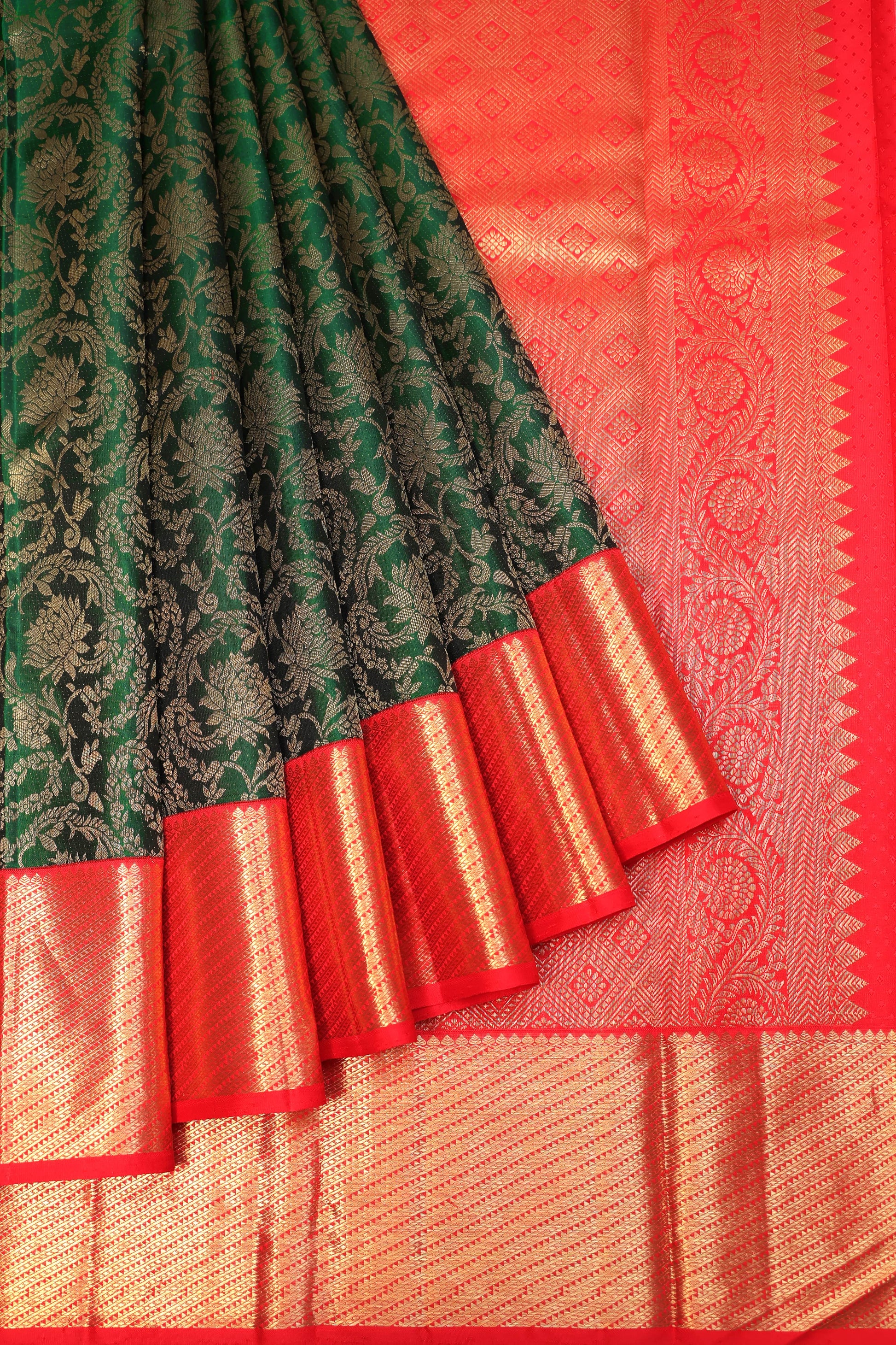 Green Kanchipuram Silk Saree with Red Kaddi Border