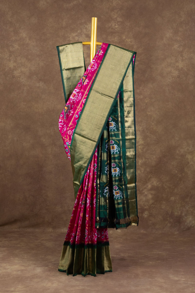Pink Ikat Silk Saree