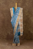 Description: The Indigo blue Tussar Silk Saree is a masterpiece of traditional elegance. Its cream border is adorned with intricate gold zari work in a kaddi pattern. The self-colored pallu showcases gold zari stripes and graceful peacock motifs with delicate tassels. The body of the saree features a captivating floral jaal and more peacock motifs, making it a timeless and enchanting choice for special occasions.