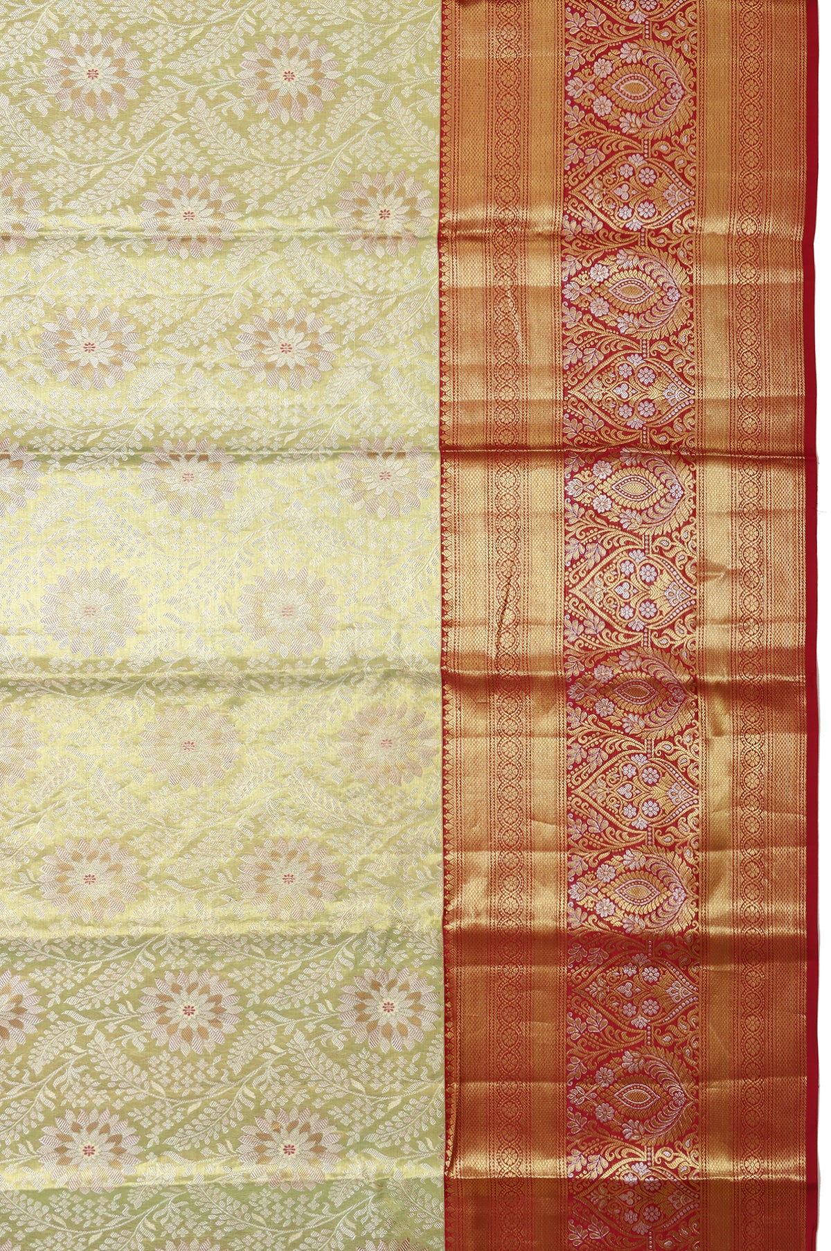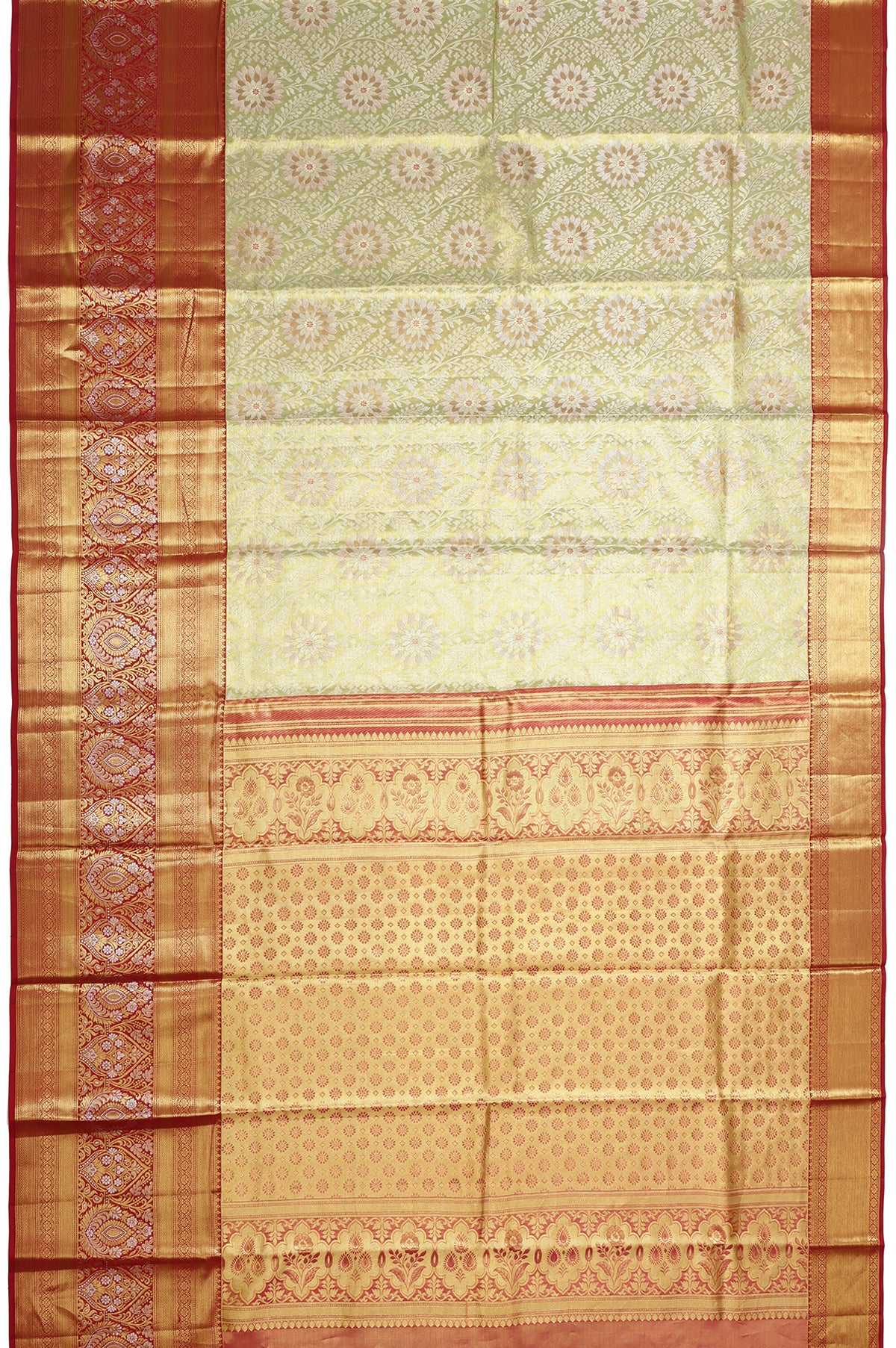 Pista Green Kanchipuram Tissue Silk Saree with Floral Jaal and Brocade Design Border