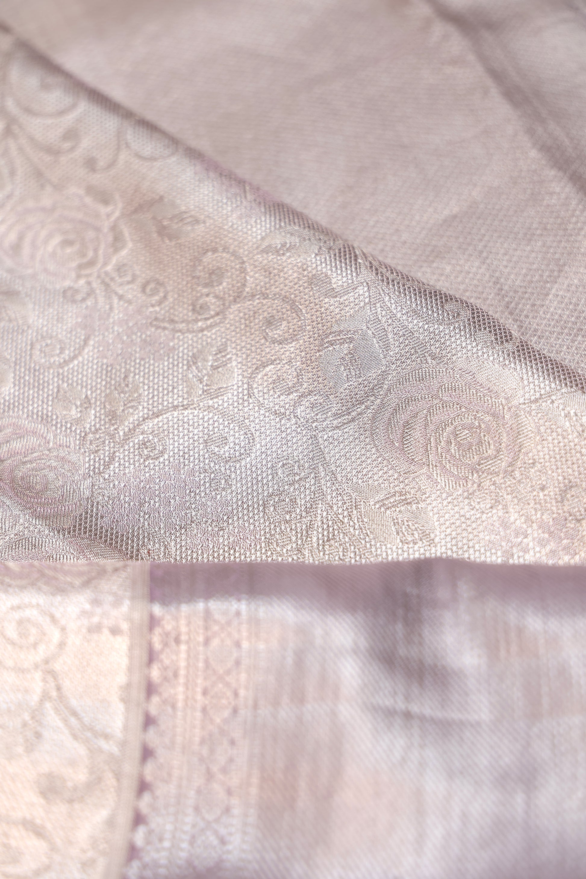 Gracefully drape yourself in this Lavender Kanchipuram Silk Saree, featuring a delicate light purple twill zari border that enhances its elegance. The body is adorned with exquisite rose flower motifs, adding a touch of romantic charm. Perfectly paired with a matching blouse, this saree combines traditional craftsmanship and contemporary sophistication for timeless appeal.