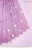 Embrace your feminine side with this pink organza saree. Outlined with a silver zari kaddi border, its pallu is a harmony of self-color, silver zari, and dollar butta, topped off with tassels. The accompanying blouse boasts a vibrant multi-colored thread work design. The saree's body, detailed with silver zari stripes and dollar butta, makes it a must-have for your wardrobe.