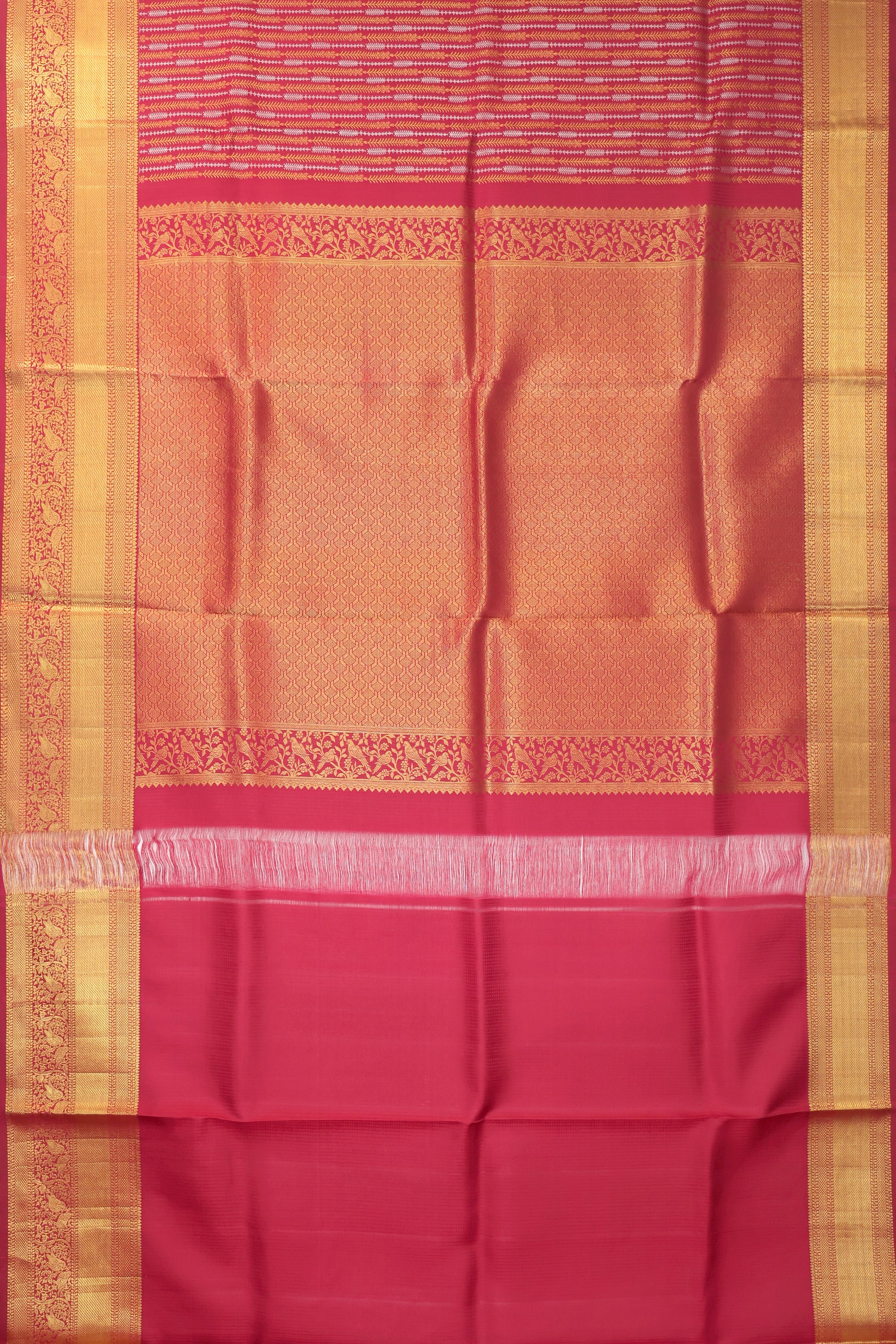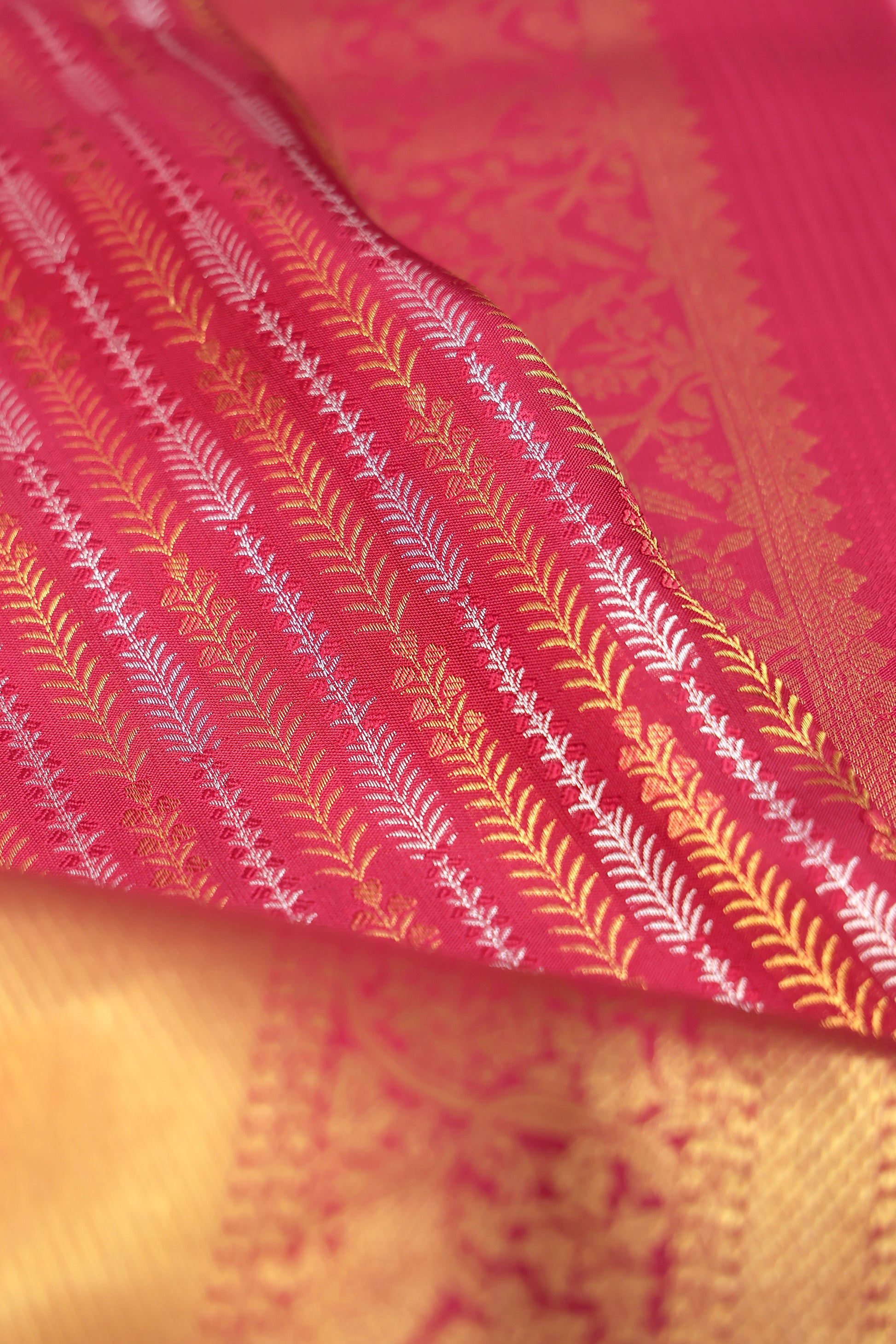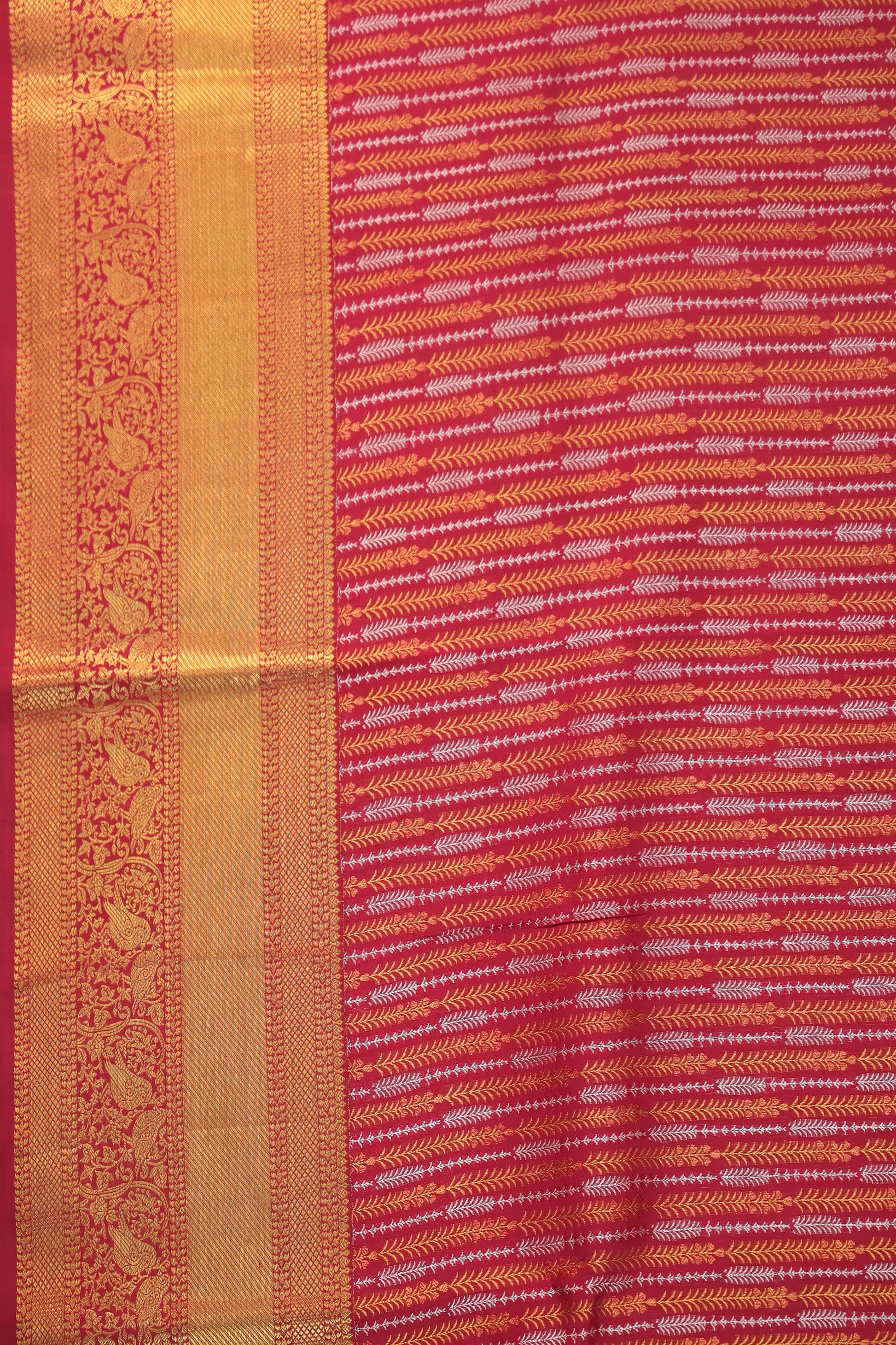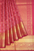 Magenta Kanchipuram Silk Saree with Gold & Silver Zari Leaf Stripes