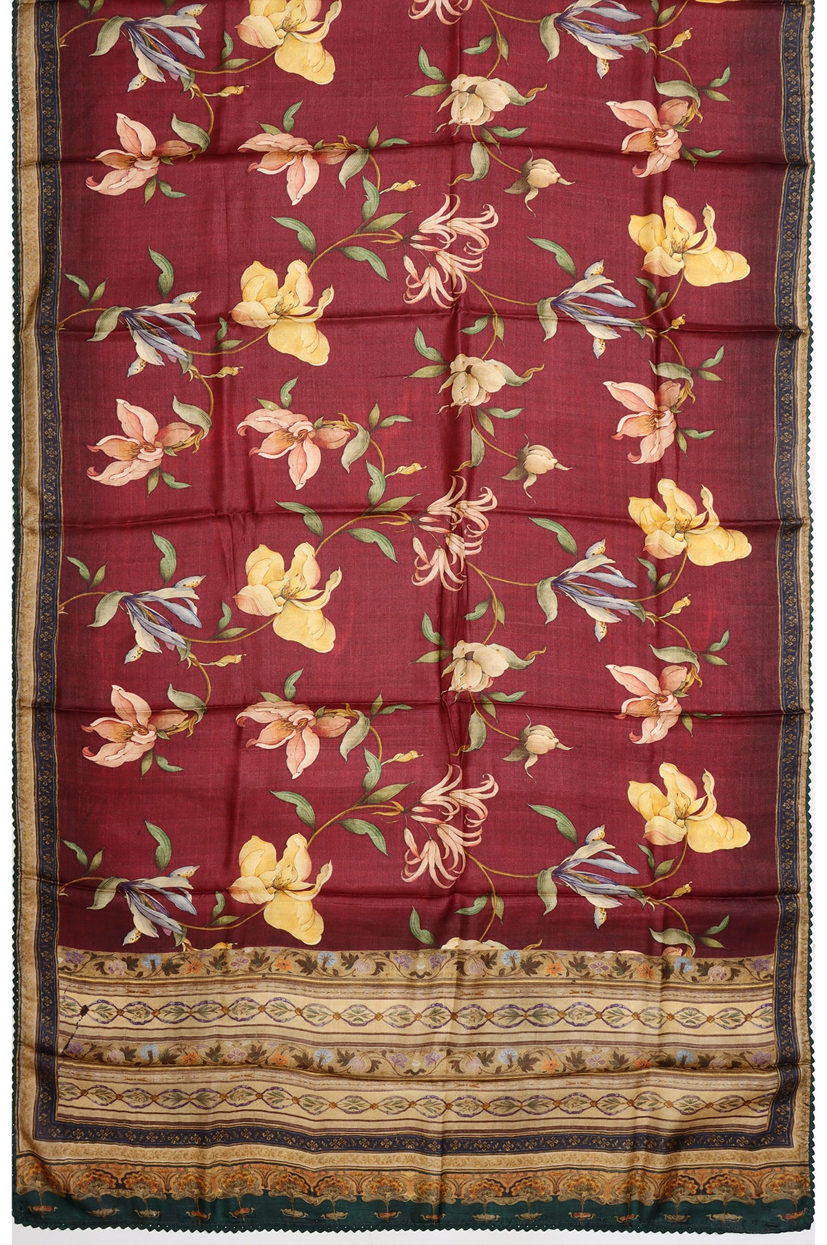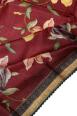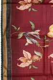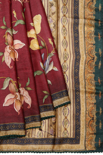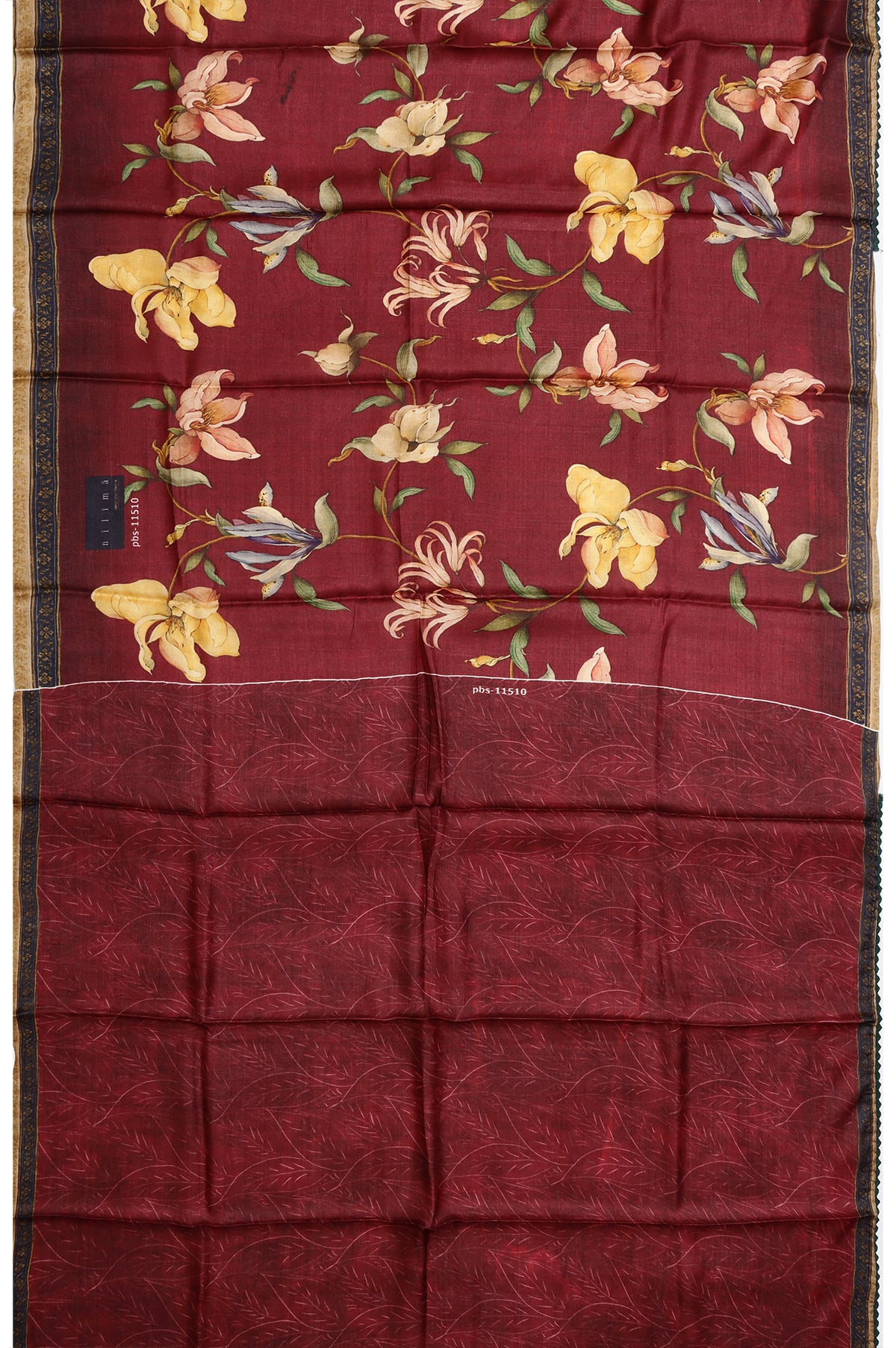 Maroon Tussar Silk Saree with Floral Design and Lace Border