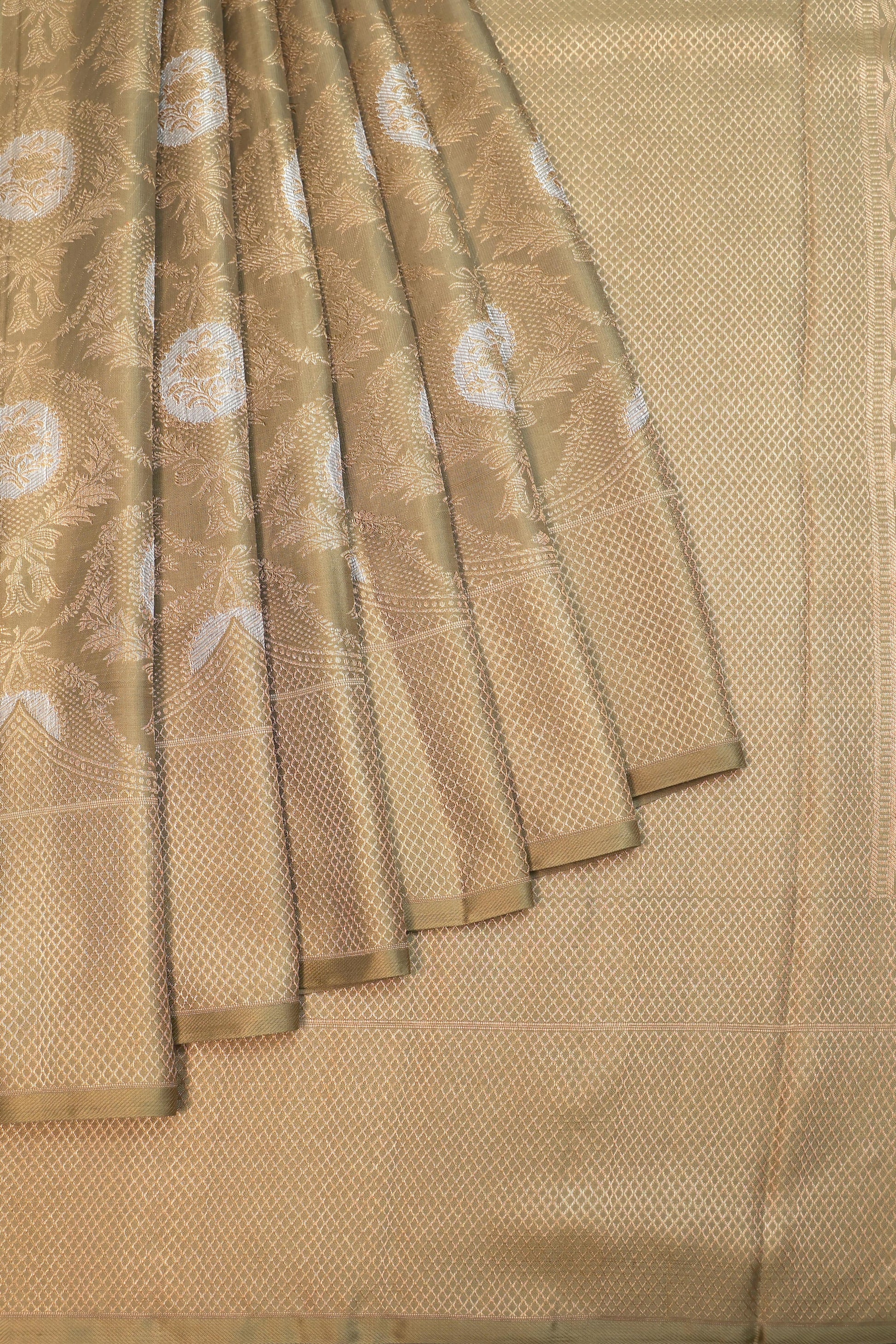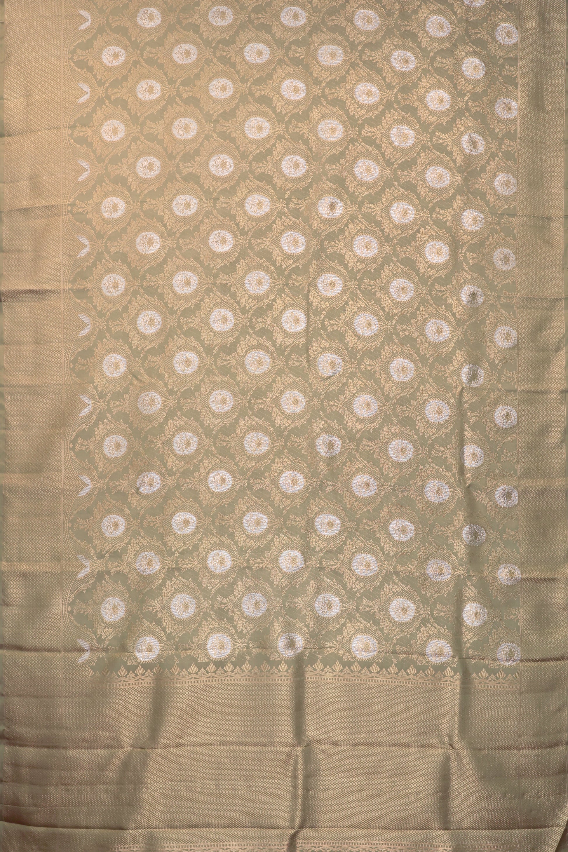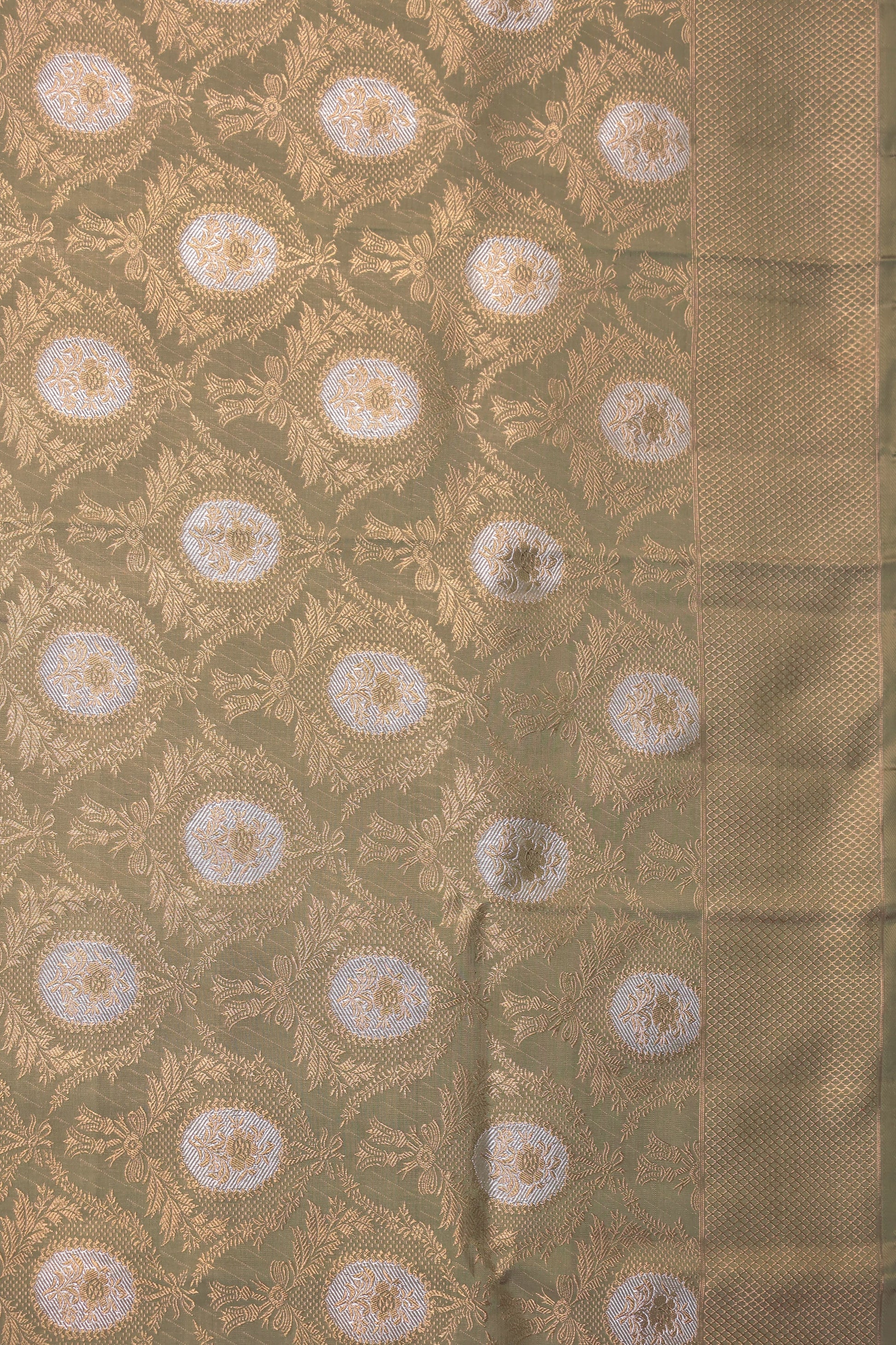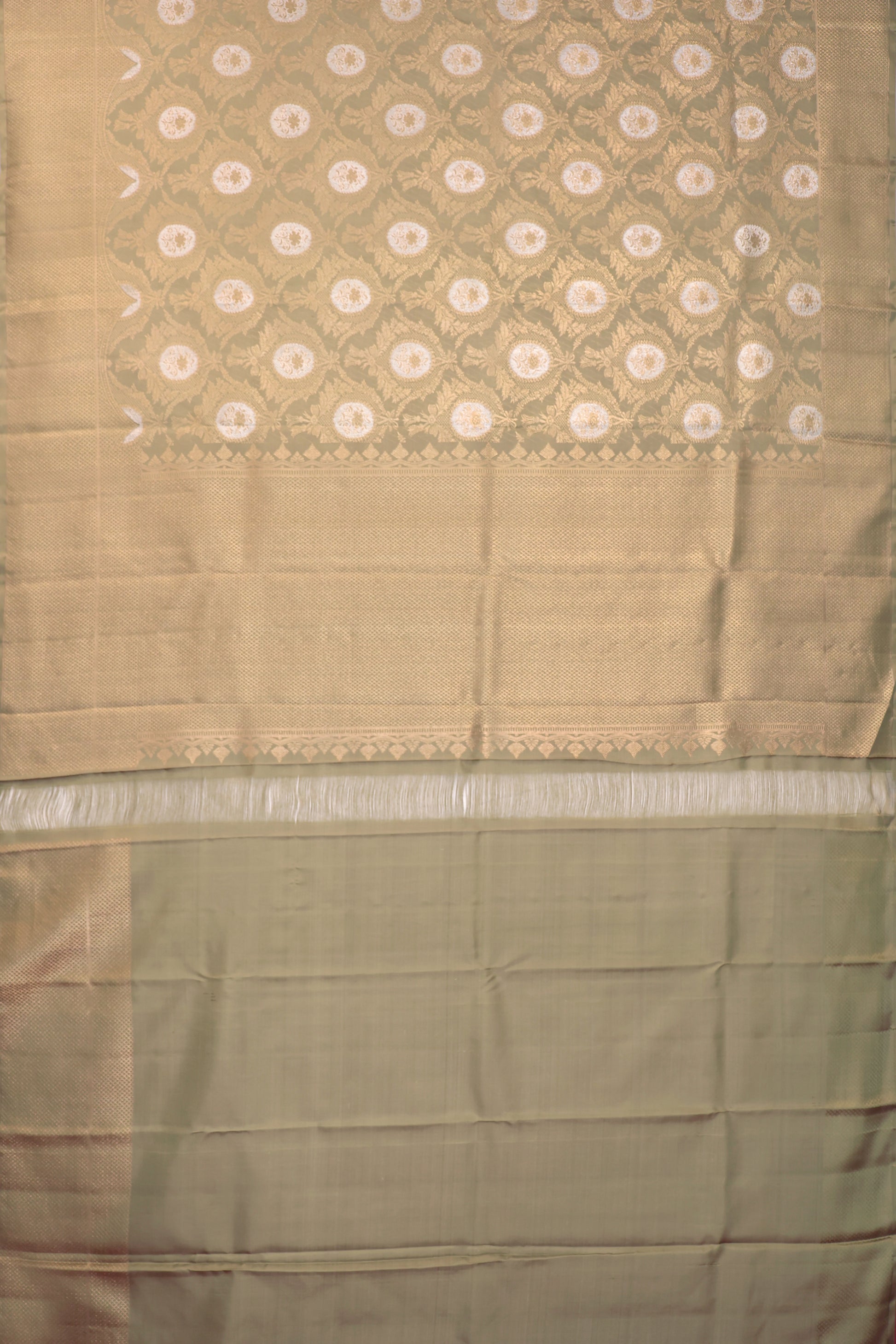 Mehendi Green Kanchipuram Silk Saree with Flower Motifs