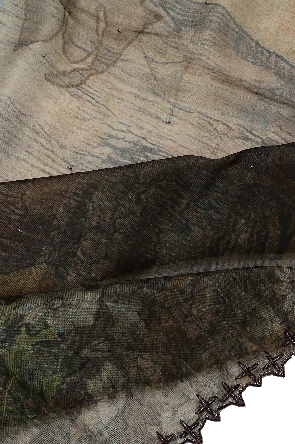Ironing: Iron the saree on a low to medium setting while it's slightly damp. Use a cotton or muslin cloth on top of the saree to protect delicate embroidery or zari work.