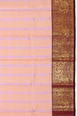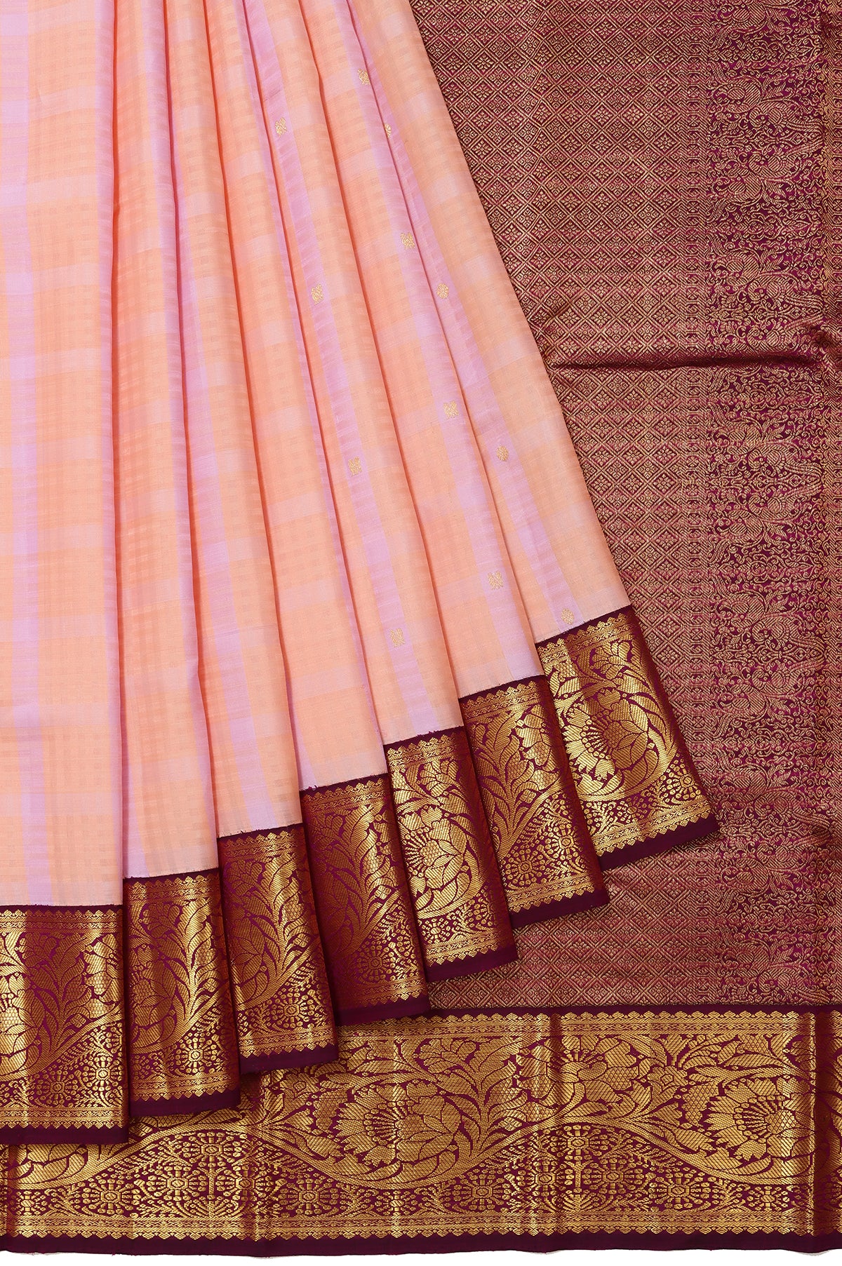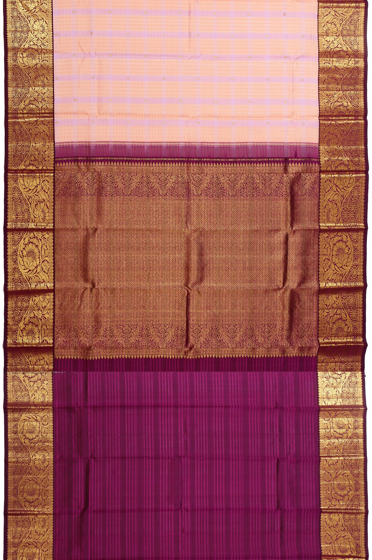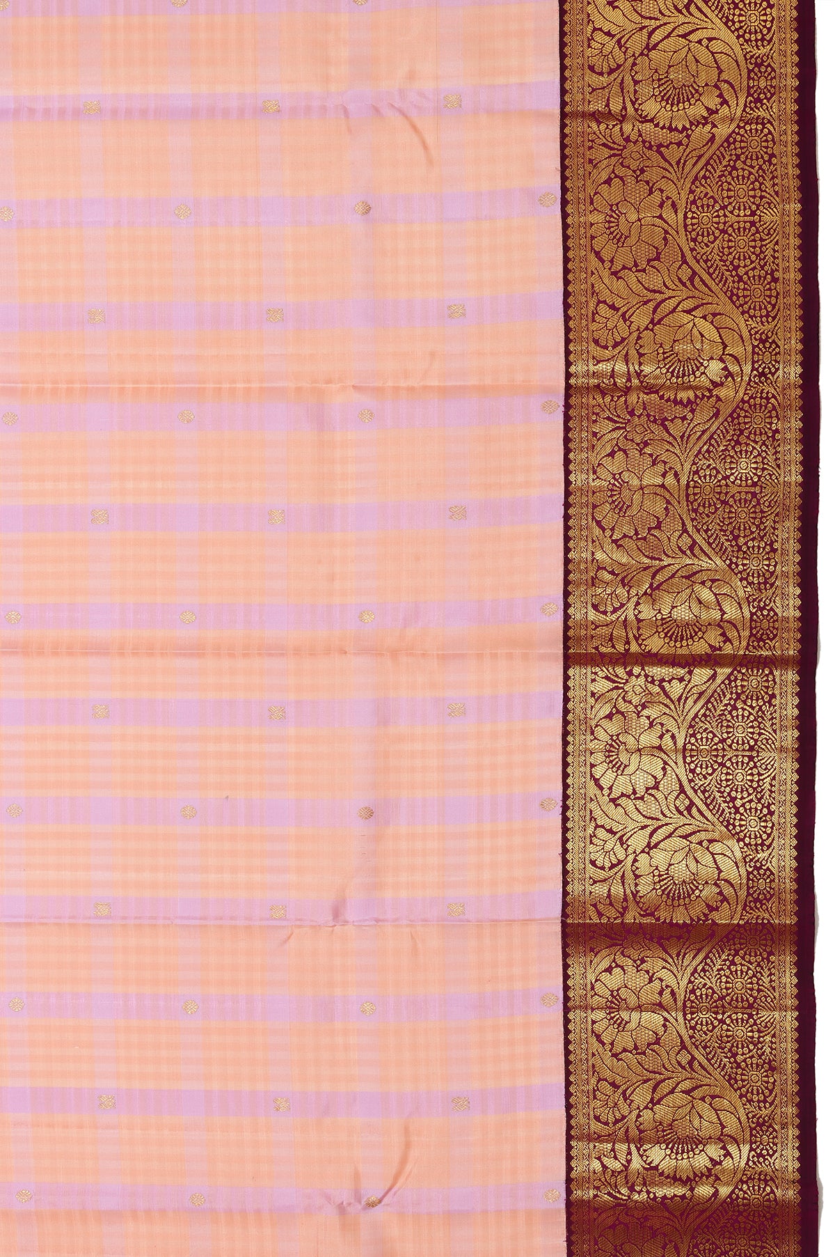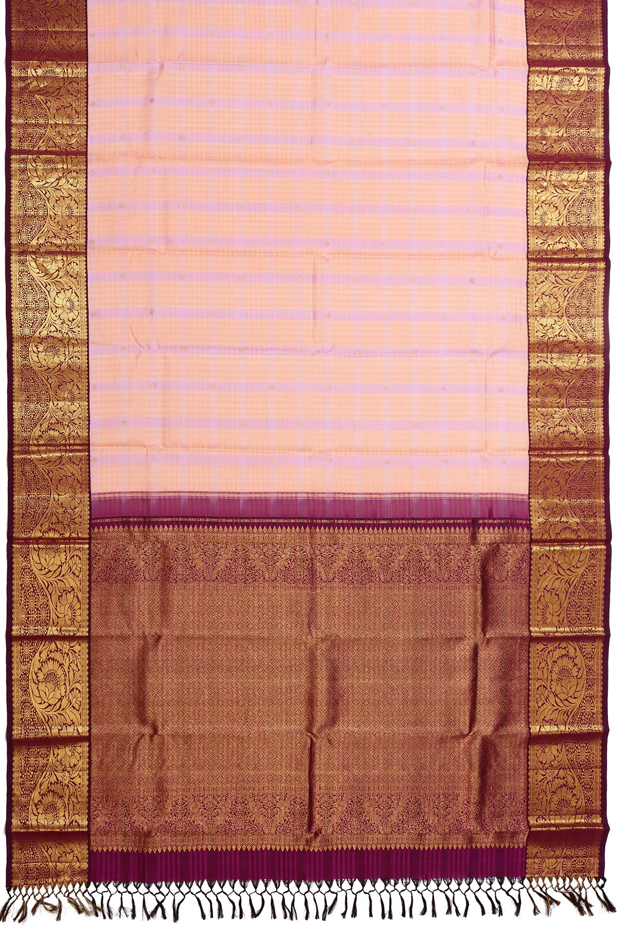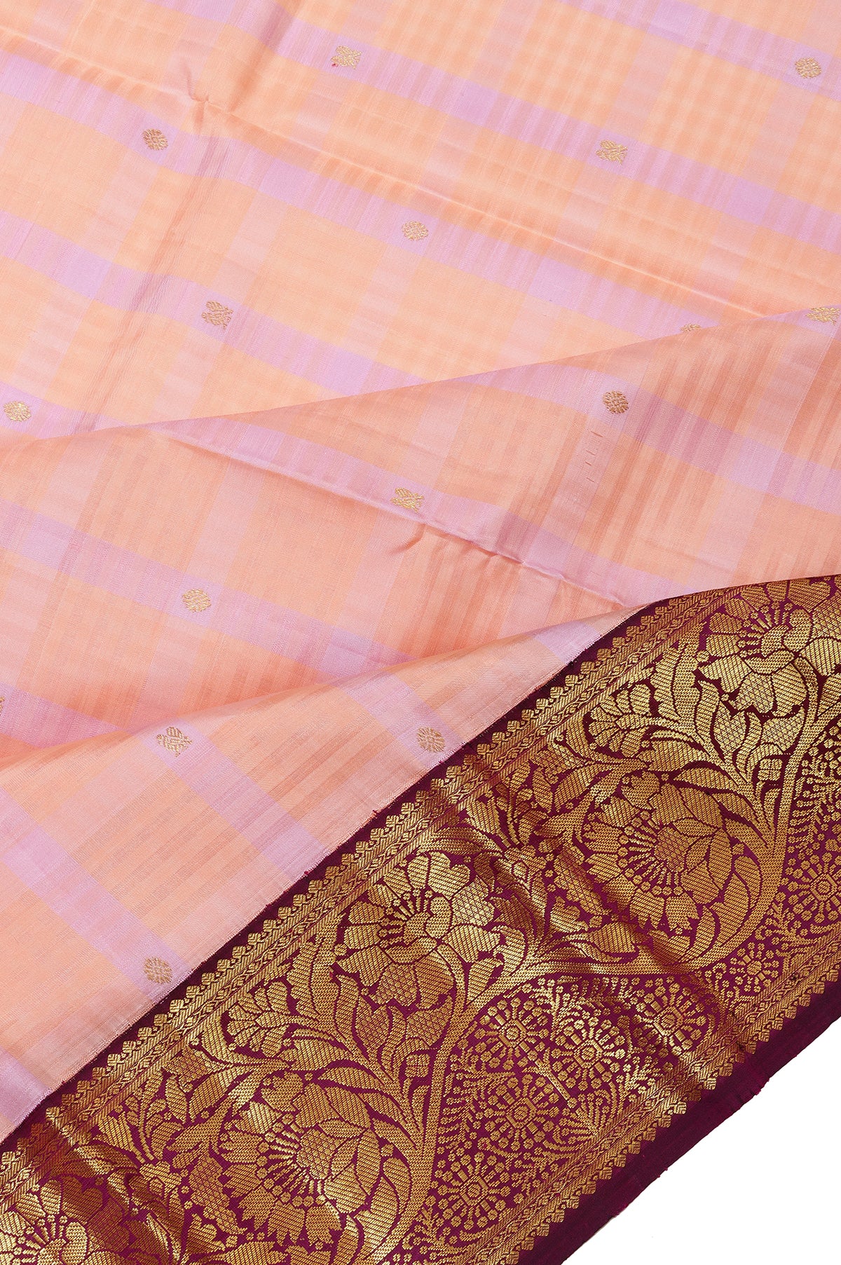 Orange and Pink Chequered Kanchipuram Silk Saree with Gold Zari Border