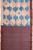 A vibrant blend of tradition and artistry, this Multicolour Bomkai Silk Saree features exquisite hand-painted Kalamkari designs across the body. The maroon border is adorned with threadwork star buttas and classic Thazhampoo reku detailing. Its cream pallu boasts multicolour stripes finished with elegant tassels. Paired with a plain maroon blouse with border, this saree beautifully celebrates handcrafted elegance and heritage.