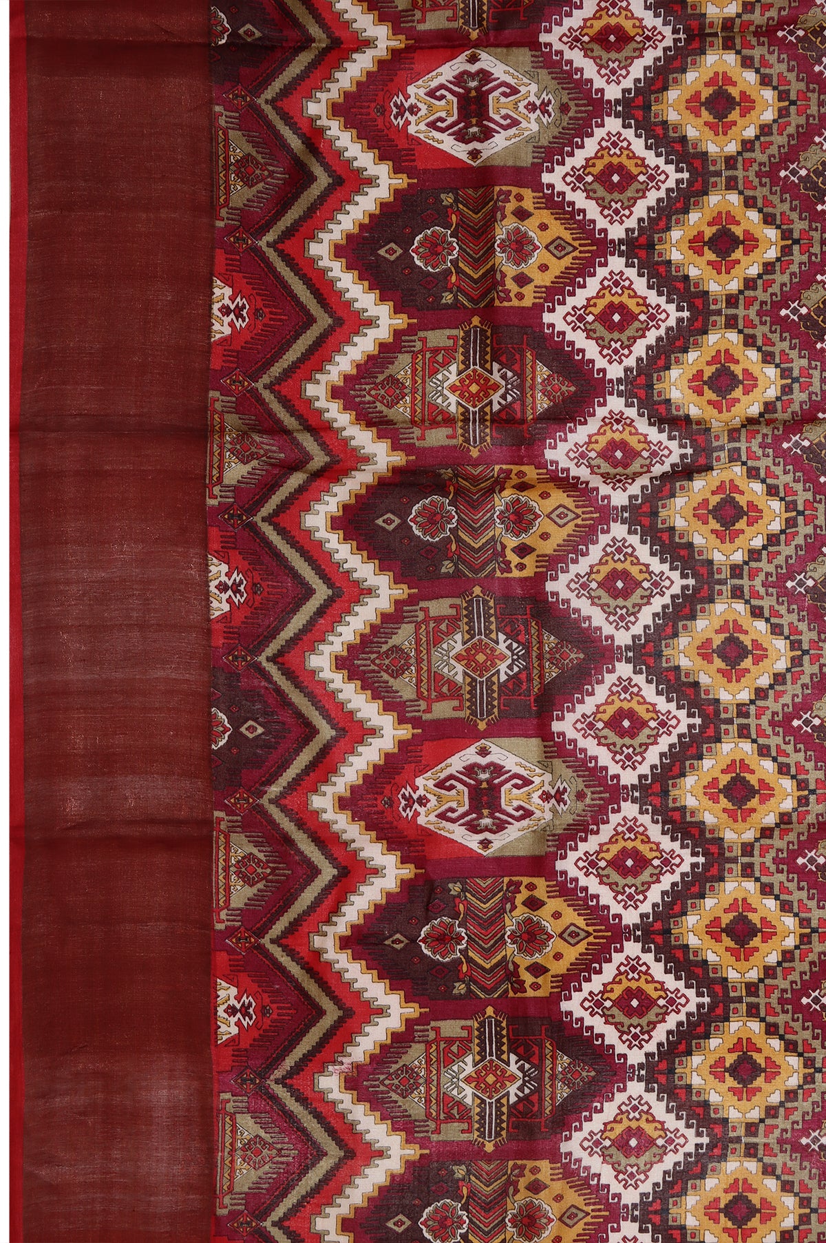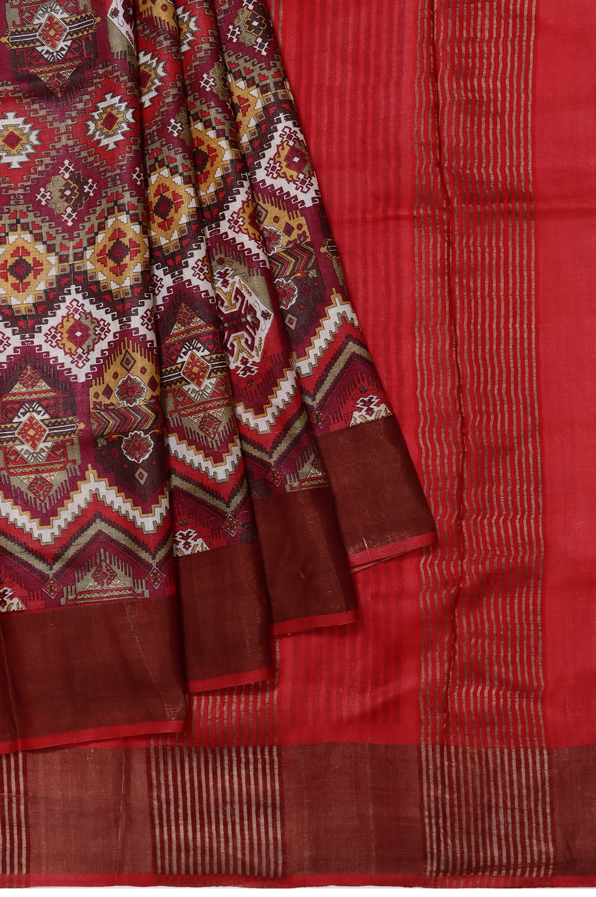 Multicoloured Tussar Silk Saree with Ikat Prints and Copper Zari