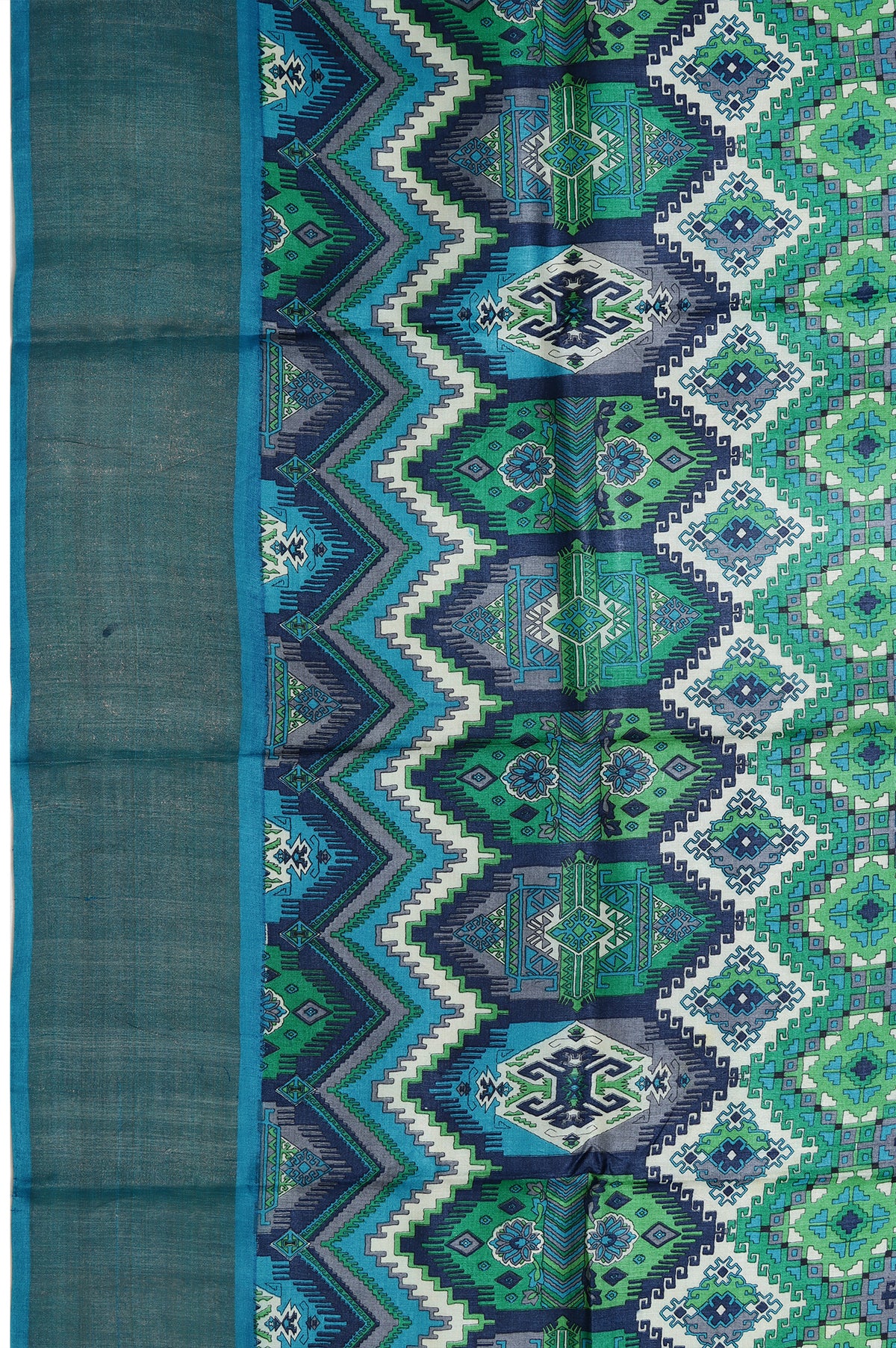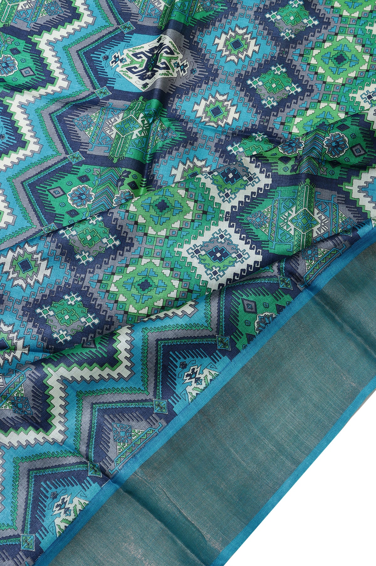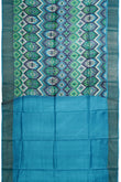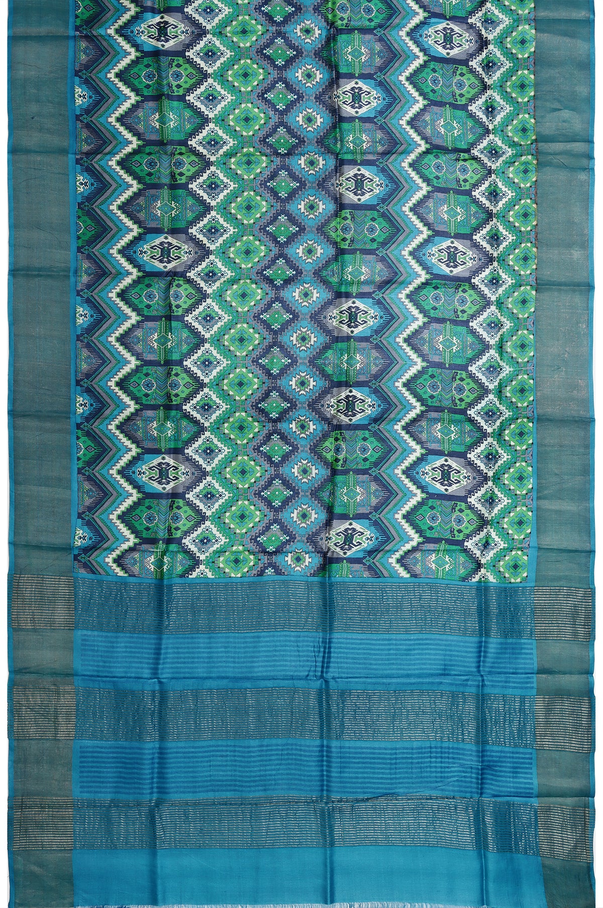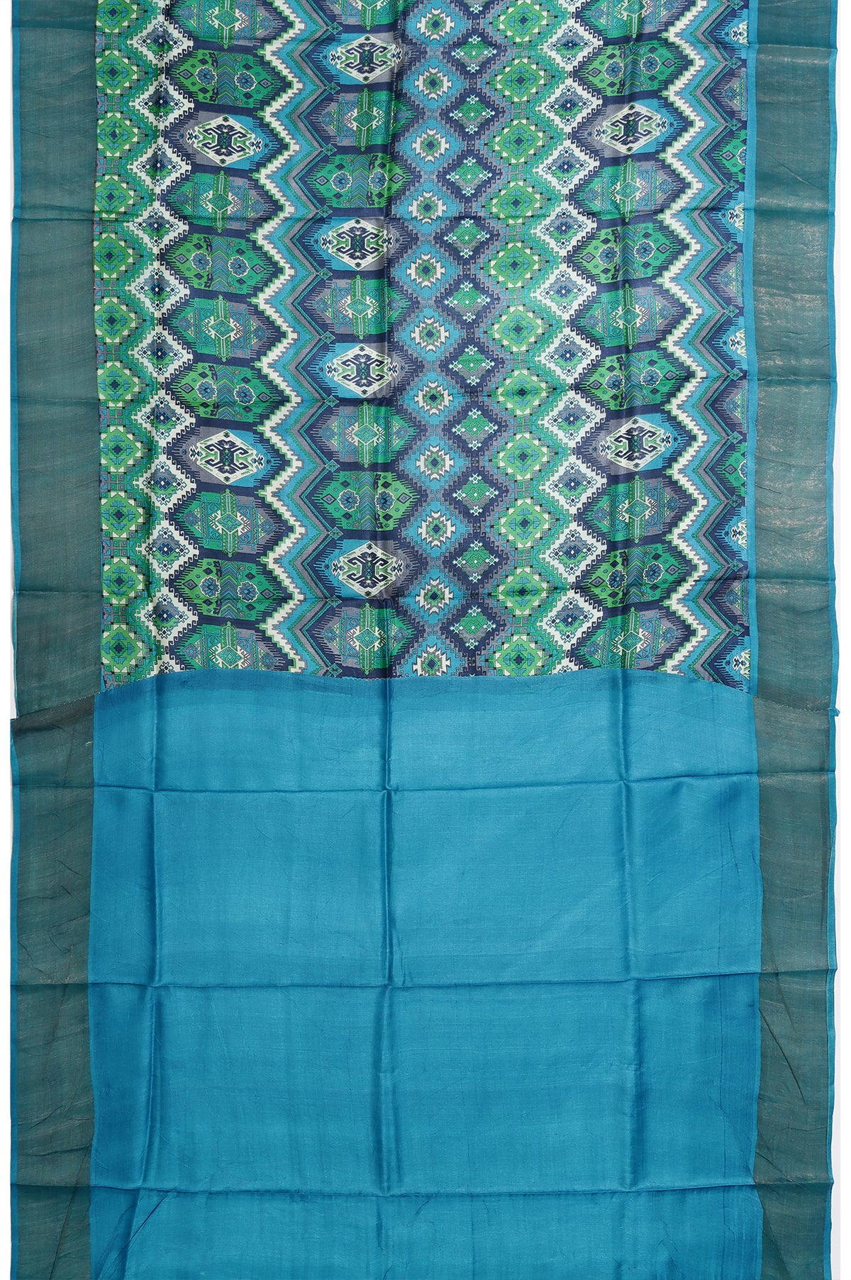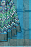 Multicoloured Tussar Silk Saree with Ikat Prints and Sky Blue Border