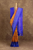 Elevate your style with our Mustard and Royal Blue Ikat Saree, adorned by a Gold Zari Kaddi border and intricate Ikat motifs. The Pallu continues the opulence with Royal Blue hues, Gold Zari accents, captivating Ikat designs, and subtle stripes. A matching Royal Blue blouse completes this ensemble, radiating timeless sophistication.