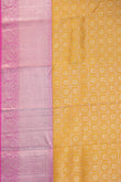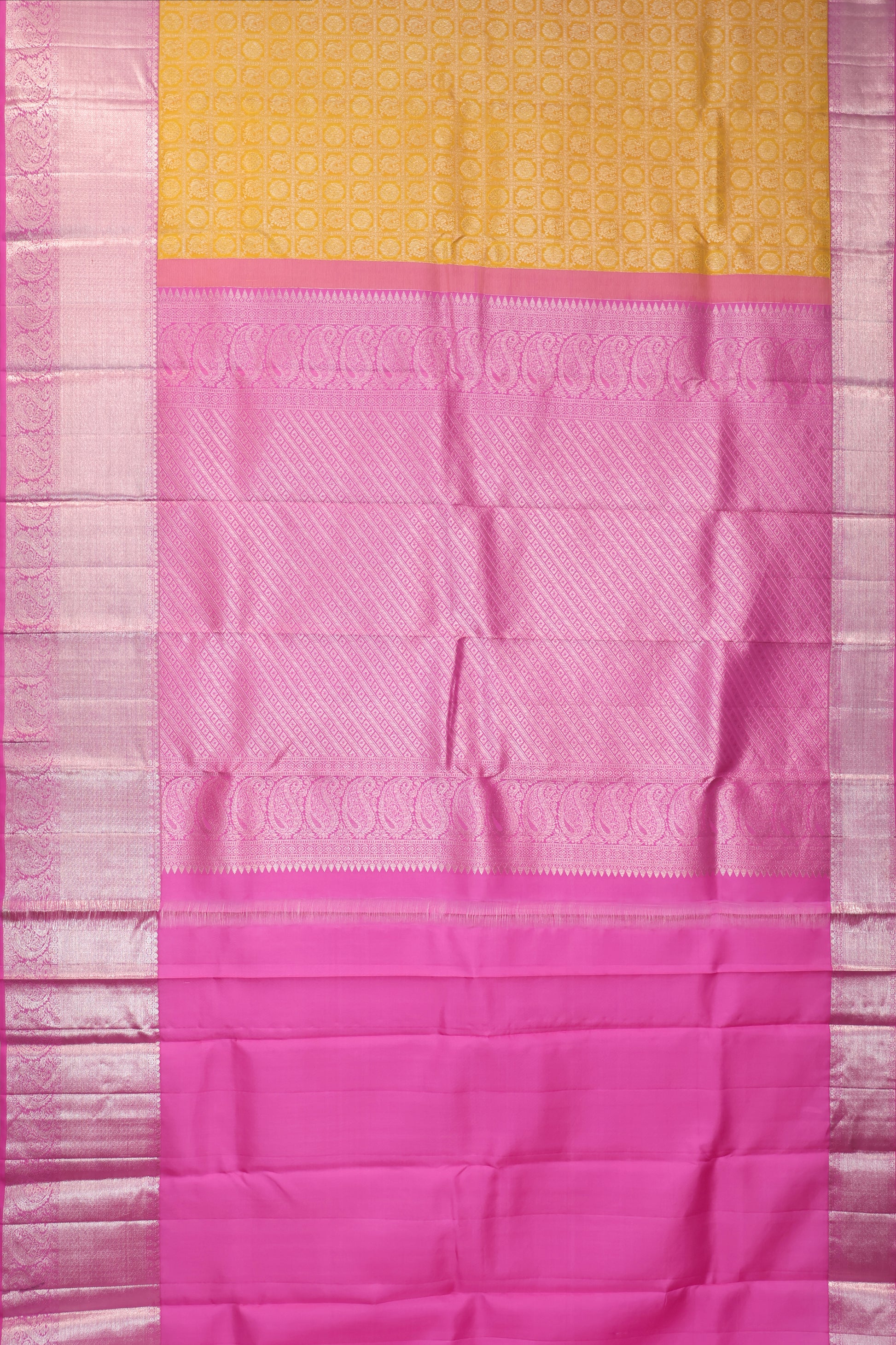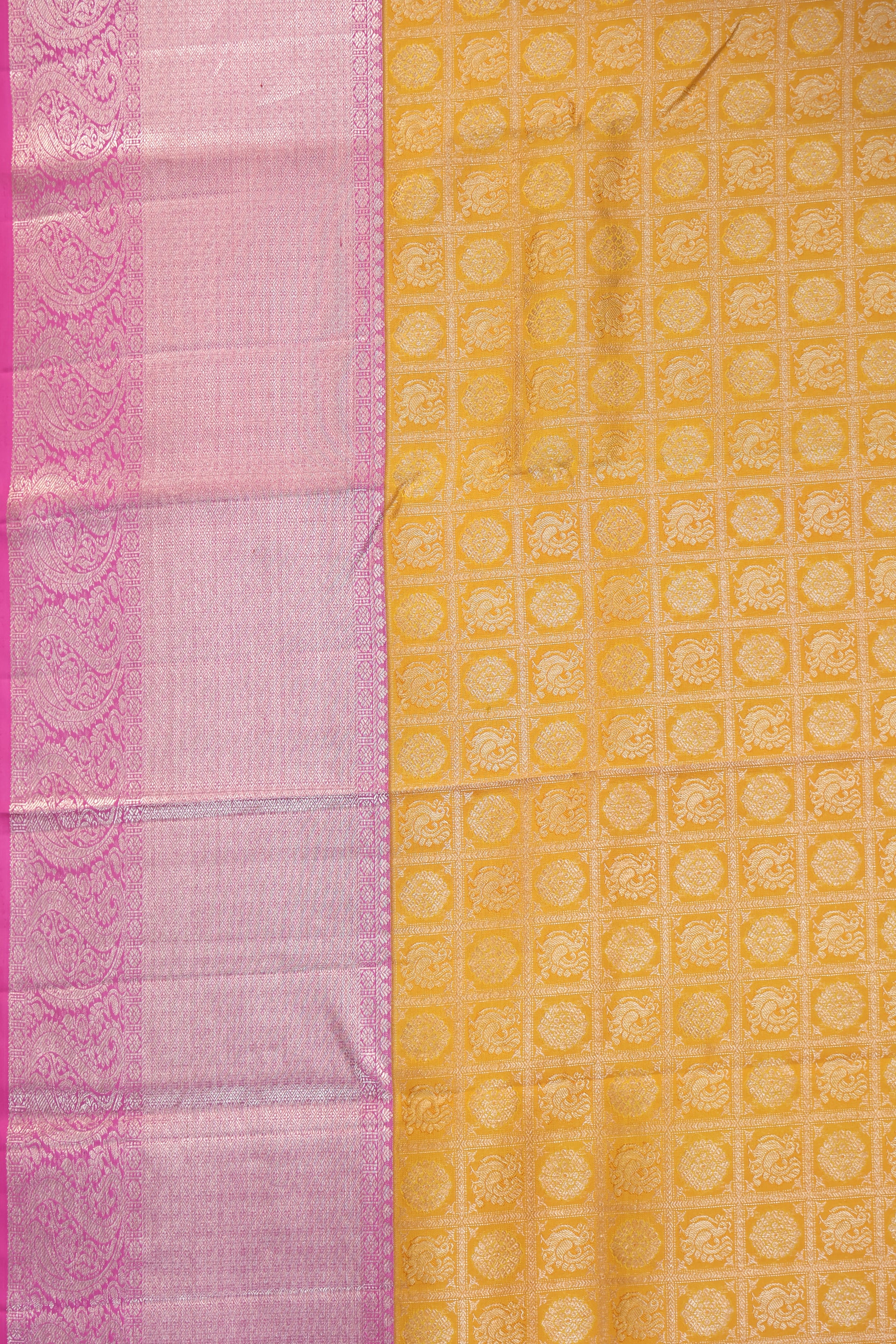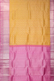 Mustard Kanchipuram Silk Saree with Pink Border in Silver Zari