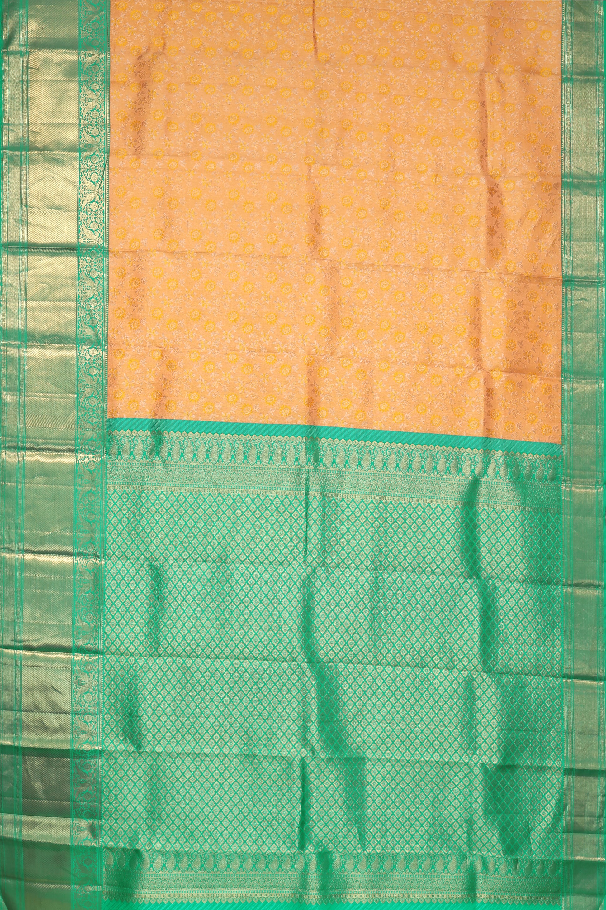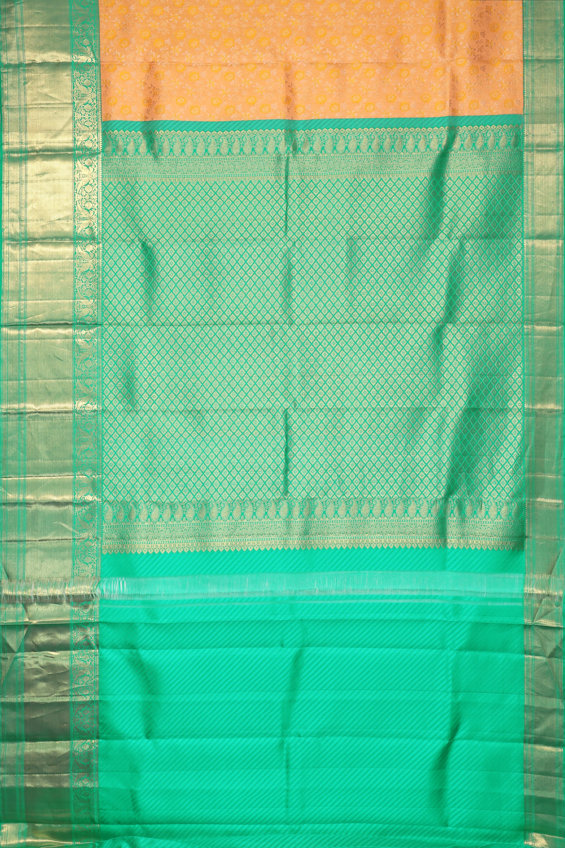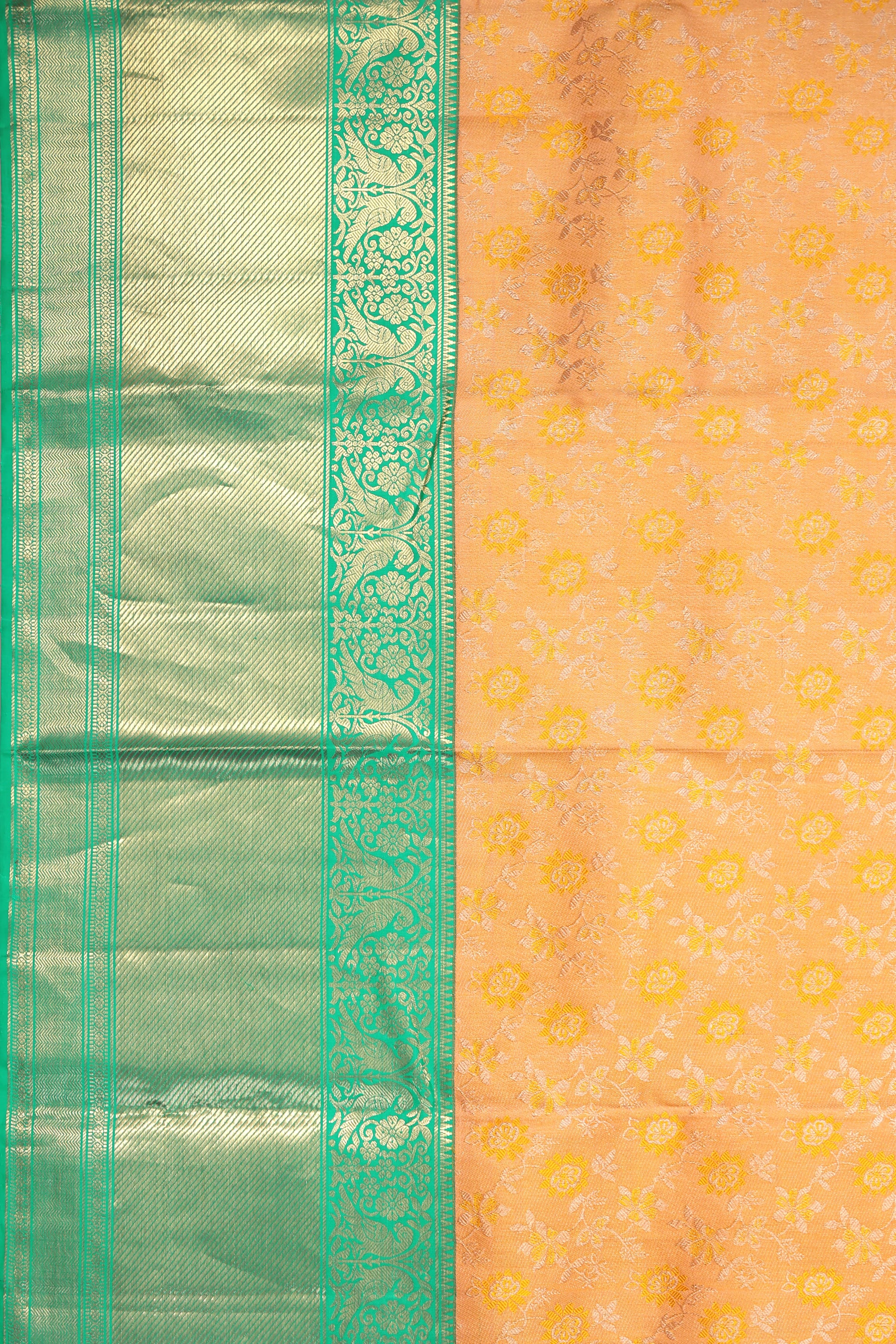 Mustard Kanchipuram Silk Saree with Sea Green Twill Border