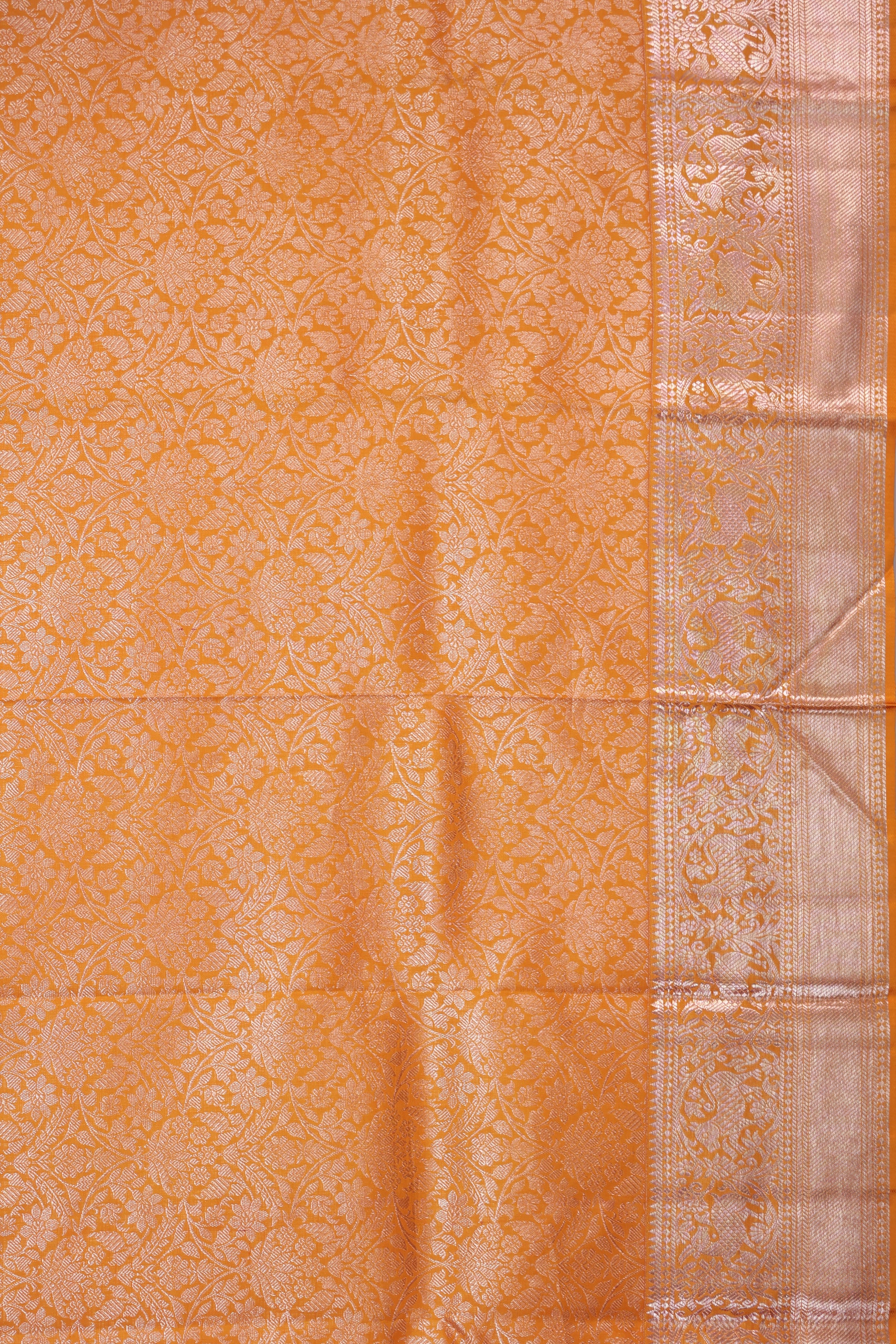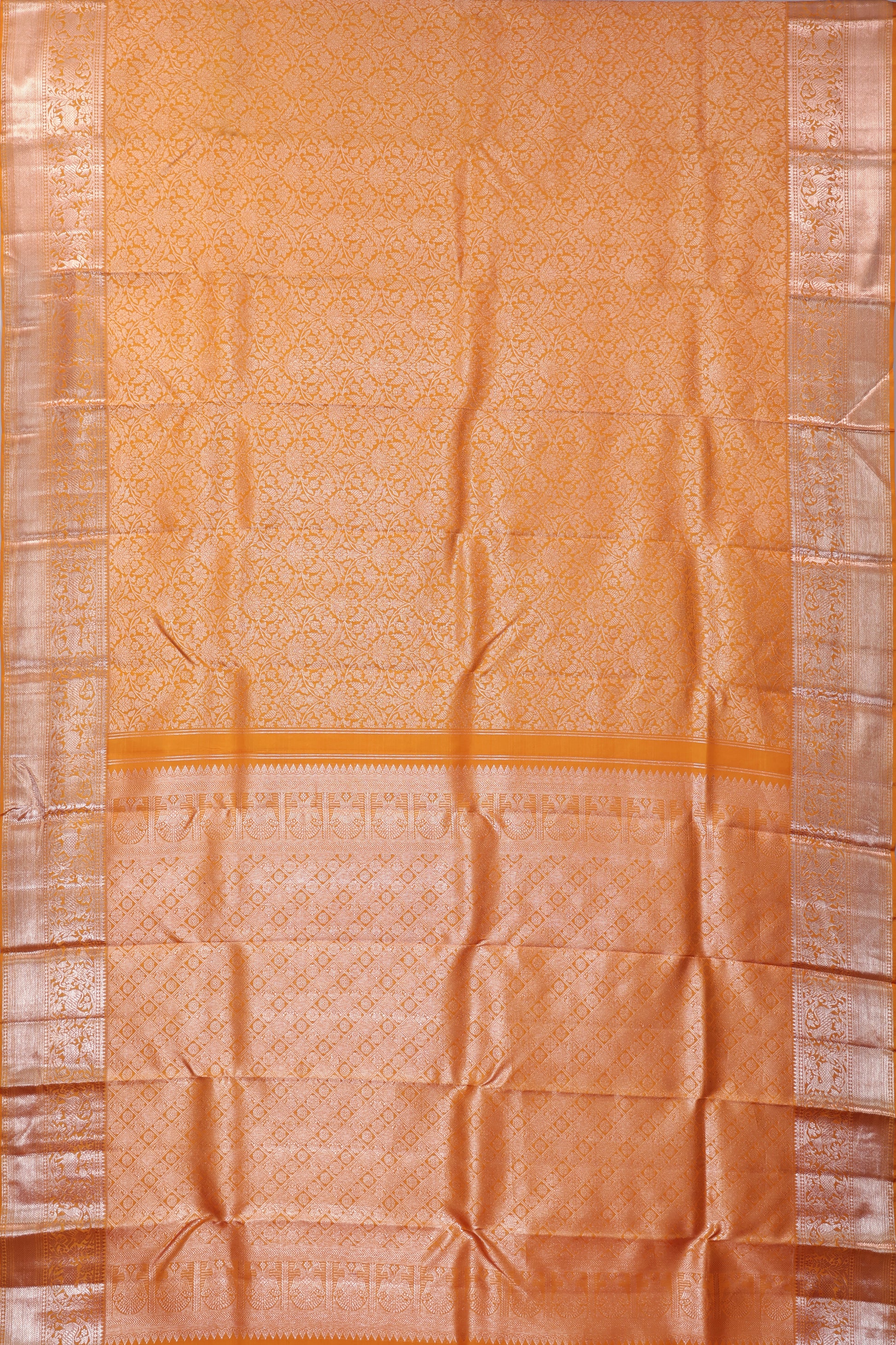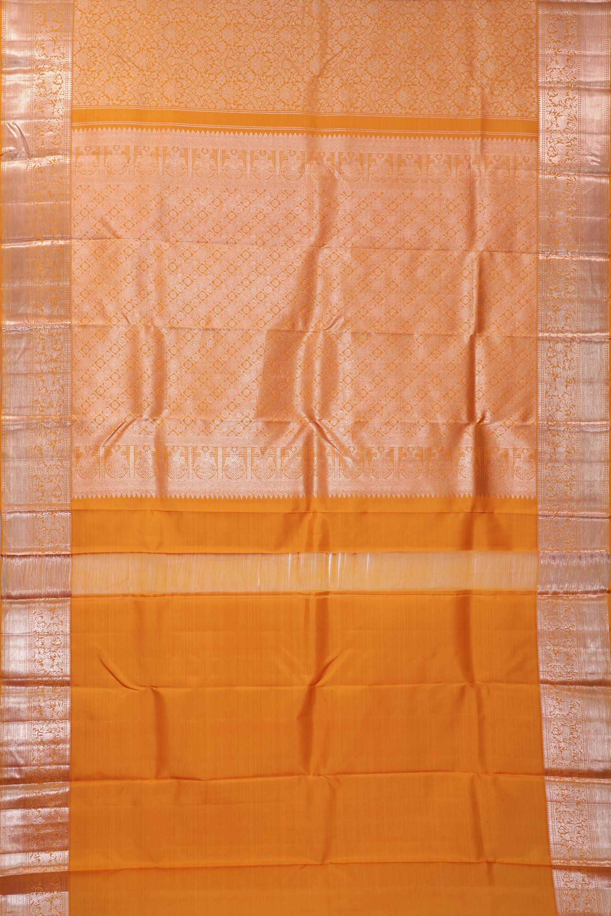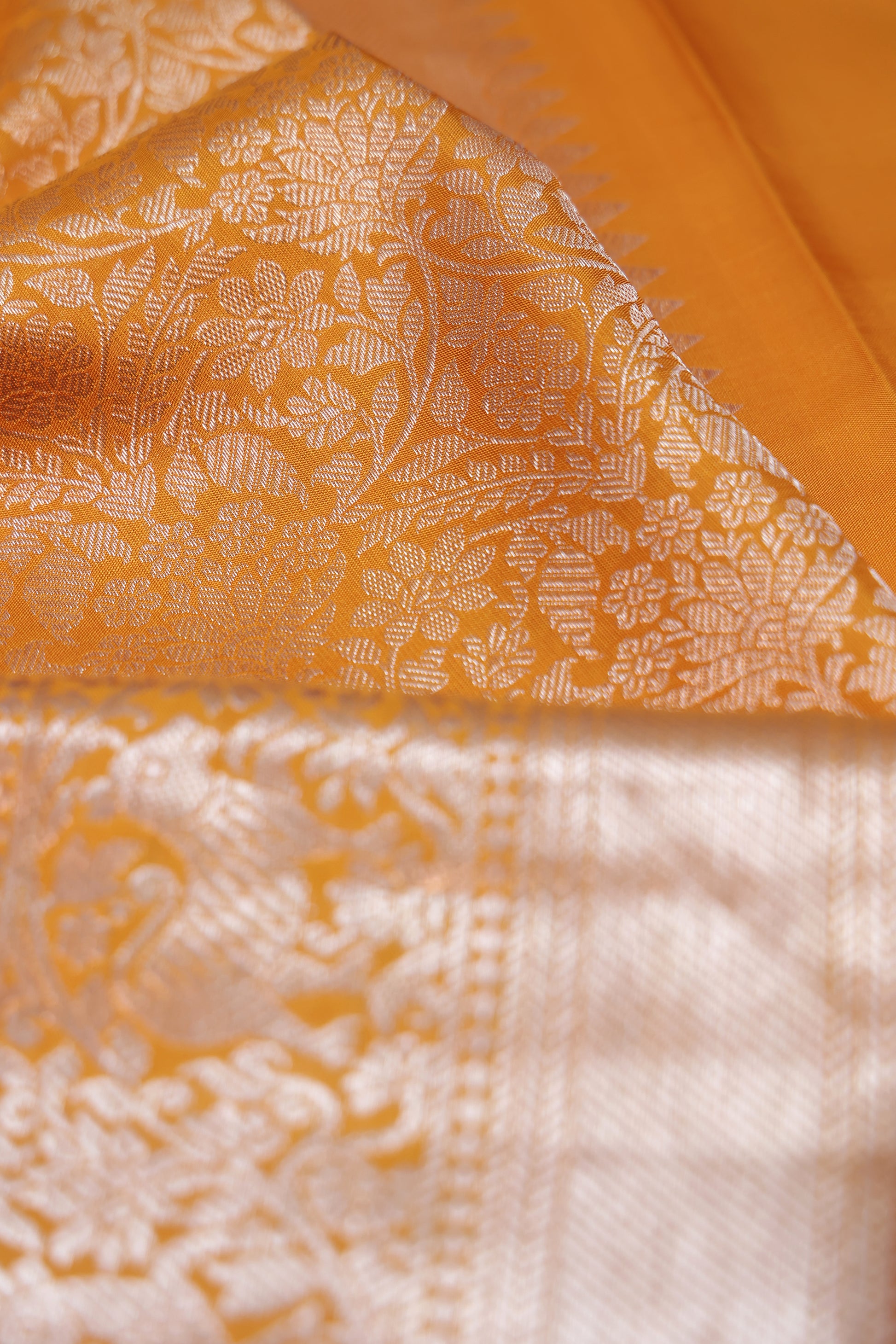 Mustard Kanchipuram Silk Saree with Silver Zari Floral Jaal