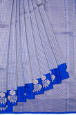 Experience the epitome of elegance with our Royal Blue Muslin Silk Saree. The deep navy blue color radiates sophistication, enhanced by a self-colored border adorned with intricate gold and silver zari, accompanied by delicate flower motifs. The pallu exudes opulence with diamond butta, dot butta, and flower butta accents, adding a touch of glamour. The self-patterned blouse is adorned with gold zari and floral butta designs, while the saree's body features the timeless charm of gold zari checks and exquisite rudraksha butta. Choose this saree to make a lasting impression at any special event, blending tradition with contemporary style seamlessly.