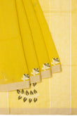 Shine bright with our Neon Yellow Bengal Jamdani Saree. The sandal border is plain and simple, while the pallu in self-color boasts white thread stripes, white and black thread leaf design, and intricate Jamdani work with tassels. The matching blouse is plain with a border, and the body design is plain for a vibrant and versatile look.